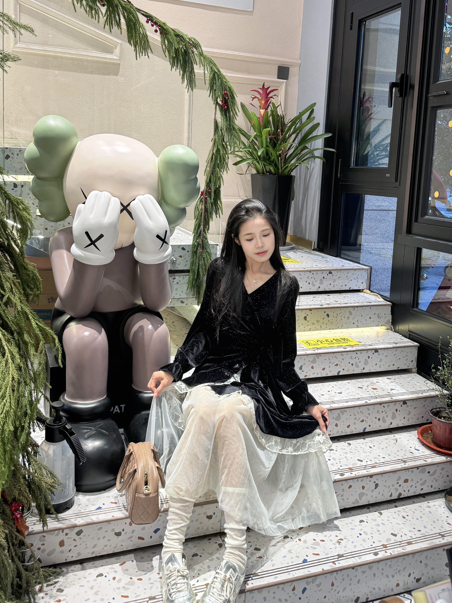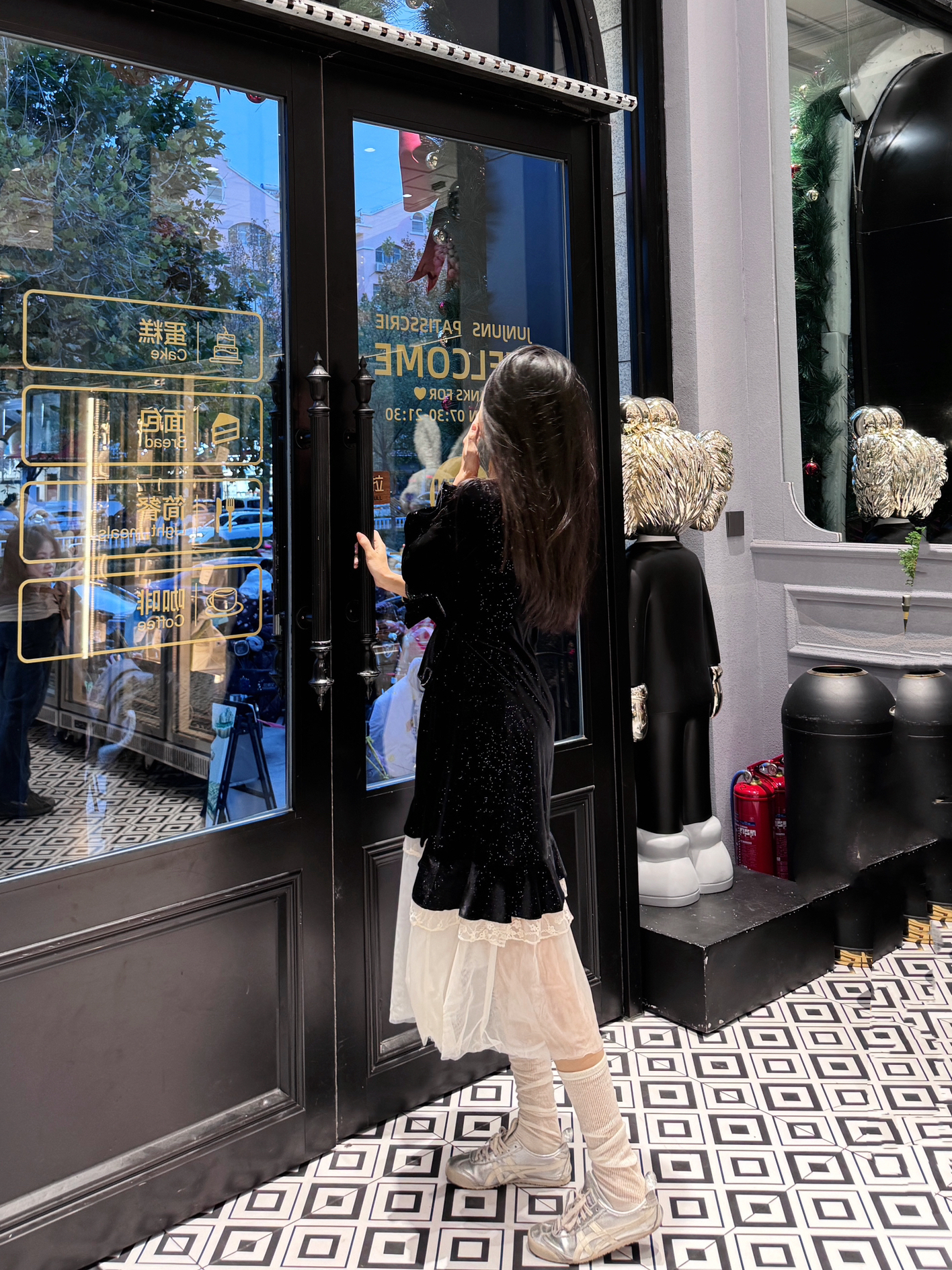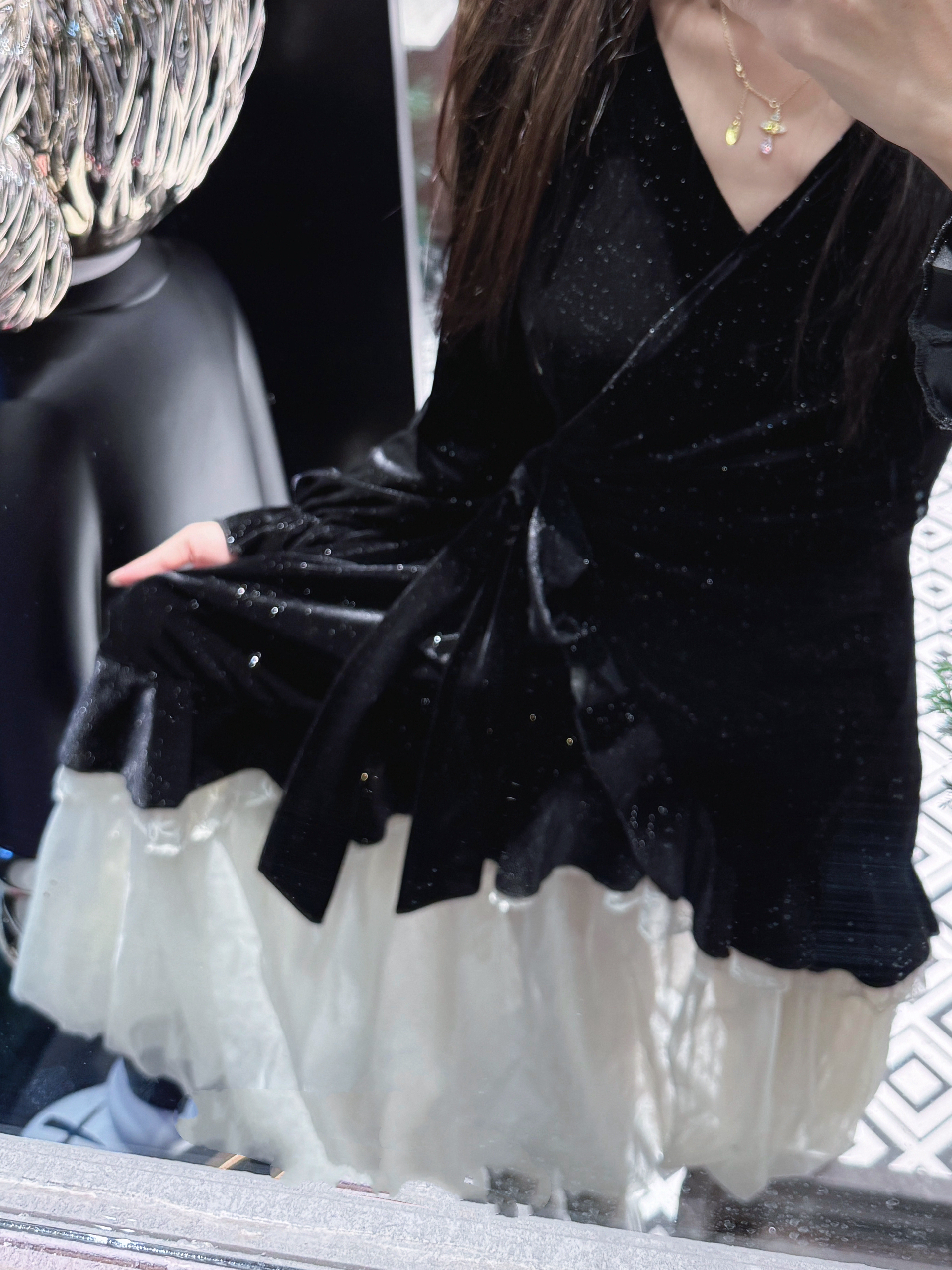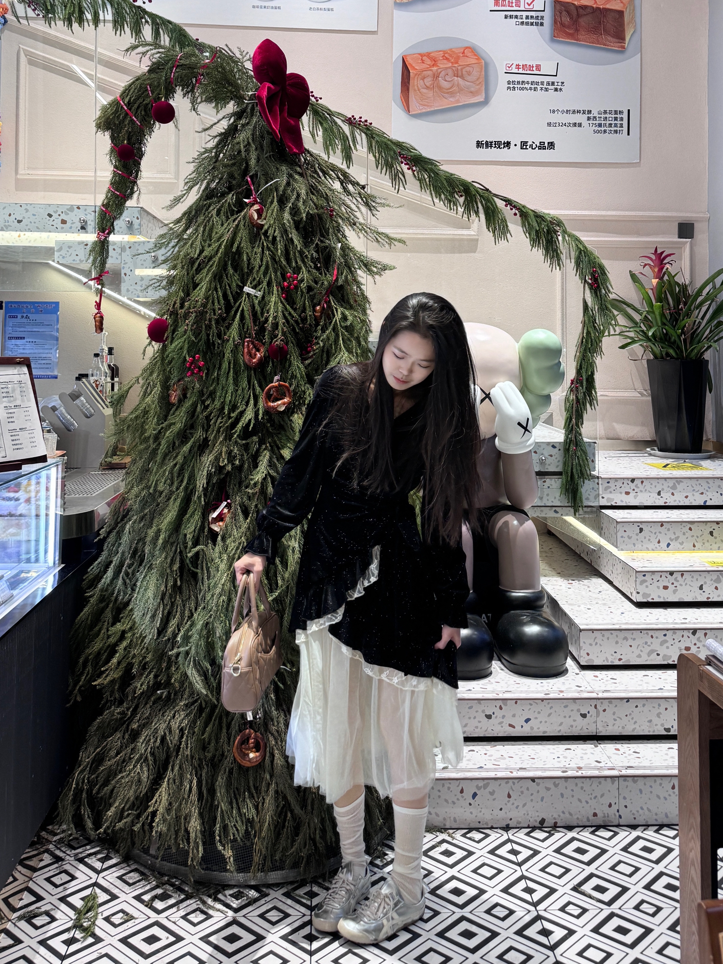 黑丝绒裙裙真的自带贵气👑 表面微微细闪不灵不灵的✨对镜拍都给我闪到失焦 - 裙摆心机遮腿🦵有点肉肉的美眉也毫无负担~ 不管约会还是生日🎂都是狠狠低调又夺目👀 ❄️天气冷了 小外套一穿也惊艳!
