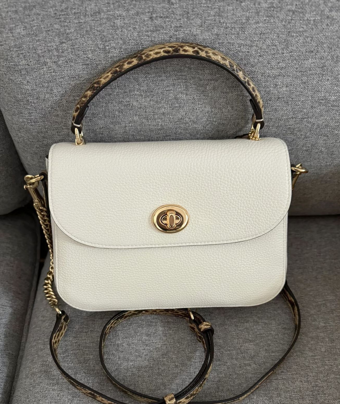 本篇笔记关联了【杨紫同款】Coach Marlie 24 中号 旋钮翻盖小方包配蛇纹肩带皮质链条单肩斜挎手提包 白色 等商品,为用户提供真实的使用体验和购买参考。