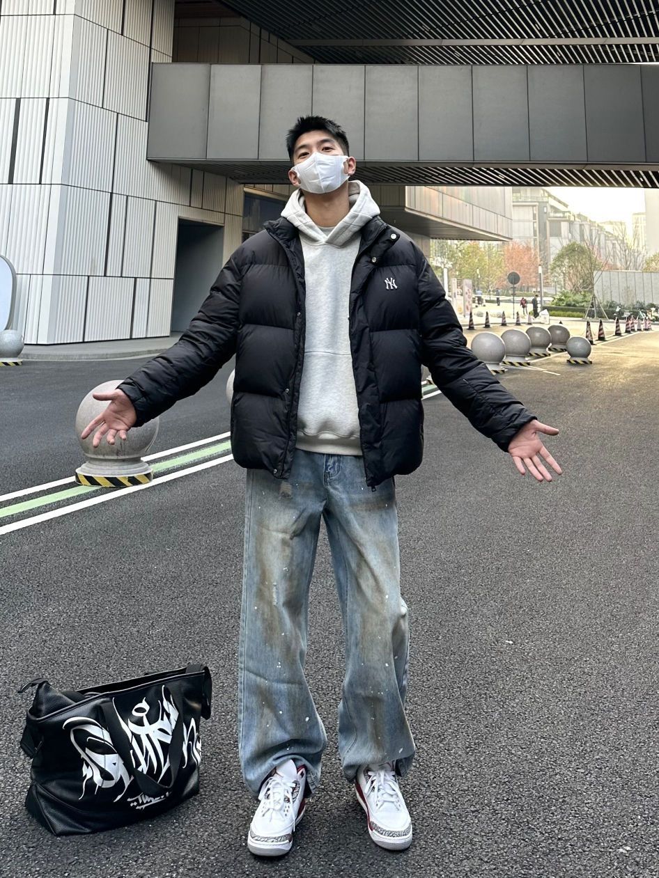 冬季干干净净也太帅啦~ 羽绒服叠穿卫衣!保暖nice🔥 搭配一条水洗牛仔裤~ 好喜欢这个蓝色 泼墨设计🎨 直筒版型 好好搭配💯 今日也是阳光大男孩☀️