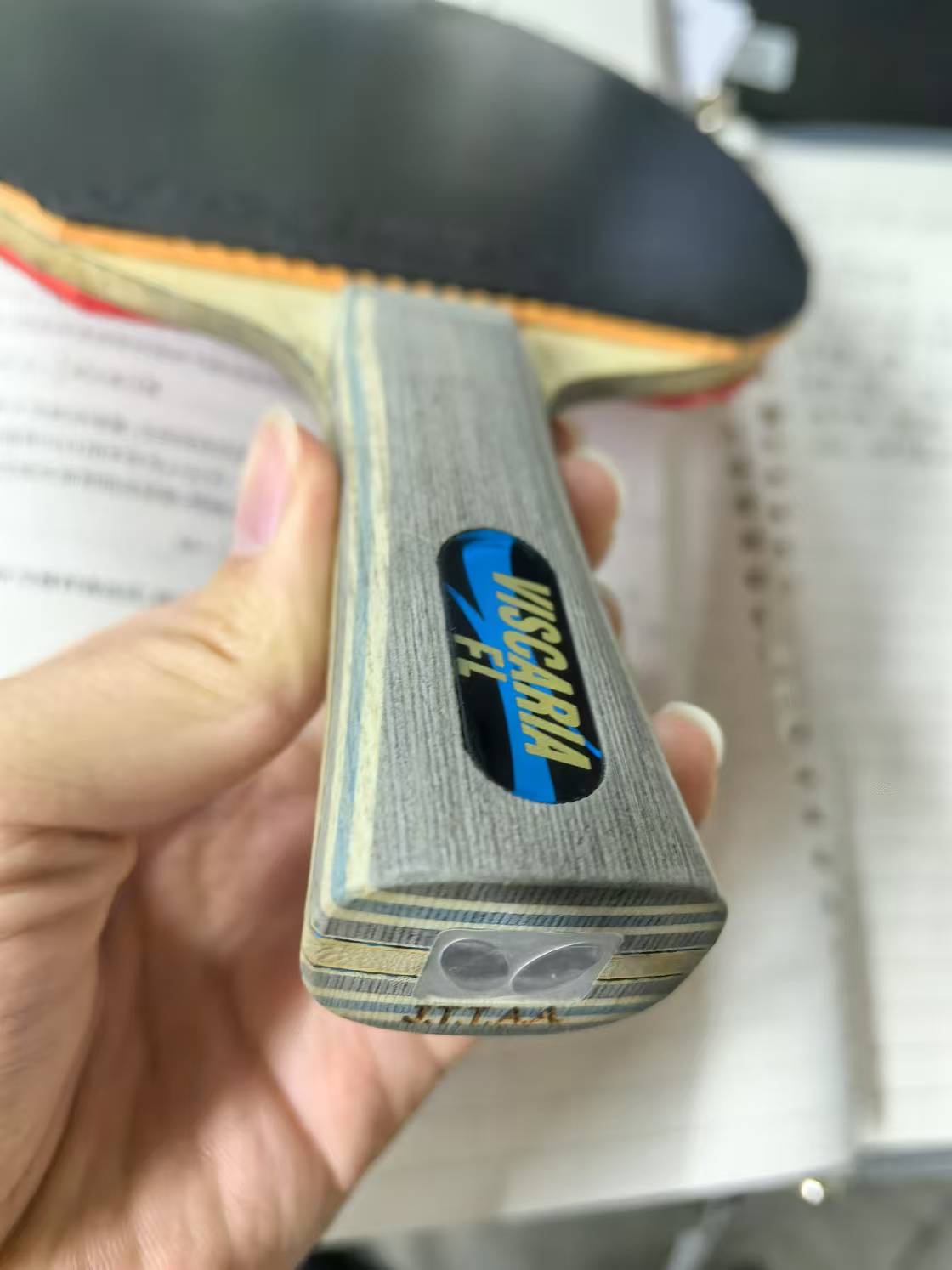 #晒出你的乒球装备 正手:斯蒂卡咒语m橙海绵 反手:省狂狂飙三橙海绵 底板:Viscaria 这套搭配简直是乒球人的梦中情拍啊 光这块vis的底板就已经劝退好多球友了 好多奥运会运动员都用此底板创造过佳绩 内容转自博主@魏什么0O 侵删