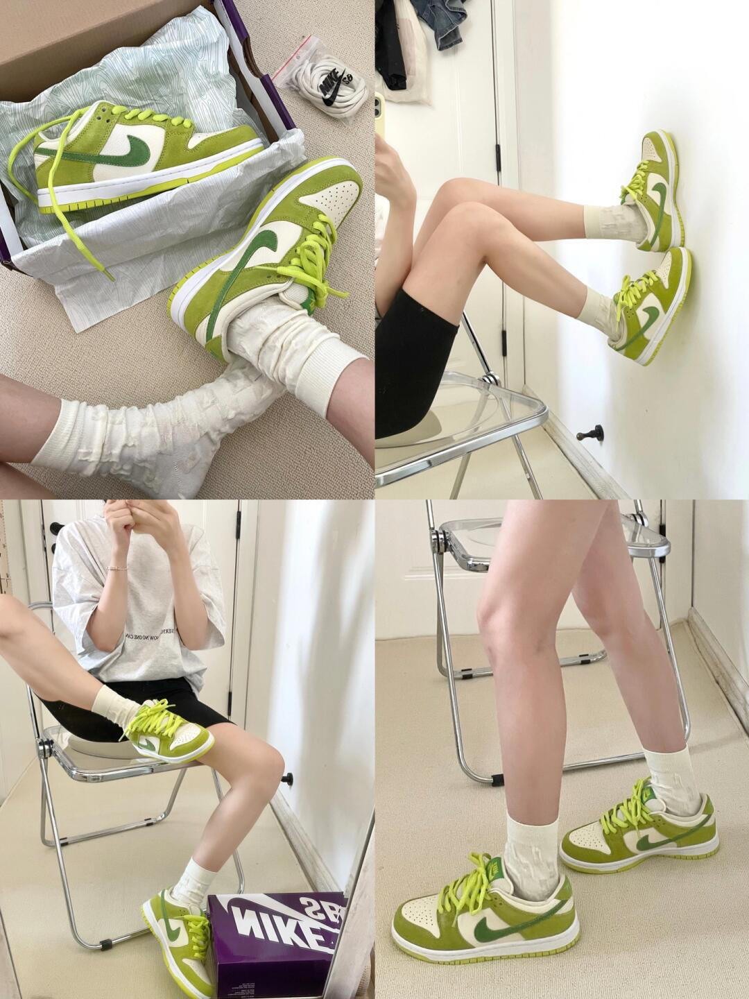 本篇笔记关联了【定制球鞋】 Nike Dunk 板鞋 平跟系带防滑耐磨做旧高街简约百搭潮流复古美式 女款/青苹果/白色等商品,为用户提供真实的使用体验和购买参考。