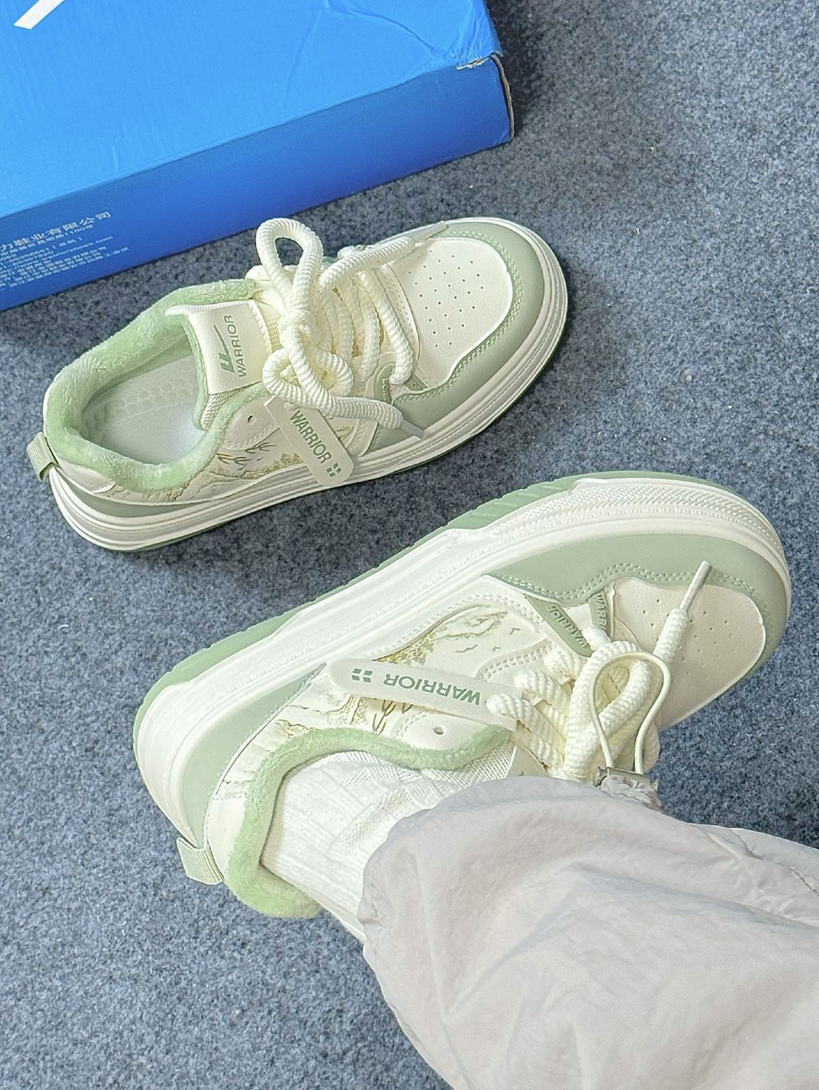 谁懂啊!板鞋上竟然有山水画! 好清爽的配色!对绿色没有抵抗力 内里毛茸茸的冬天也不怕冻啦竟然才两位数!性价比! #新年本命新鞋 #新年新鞋穿搭法则