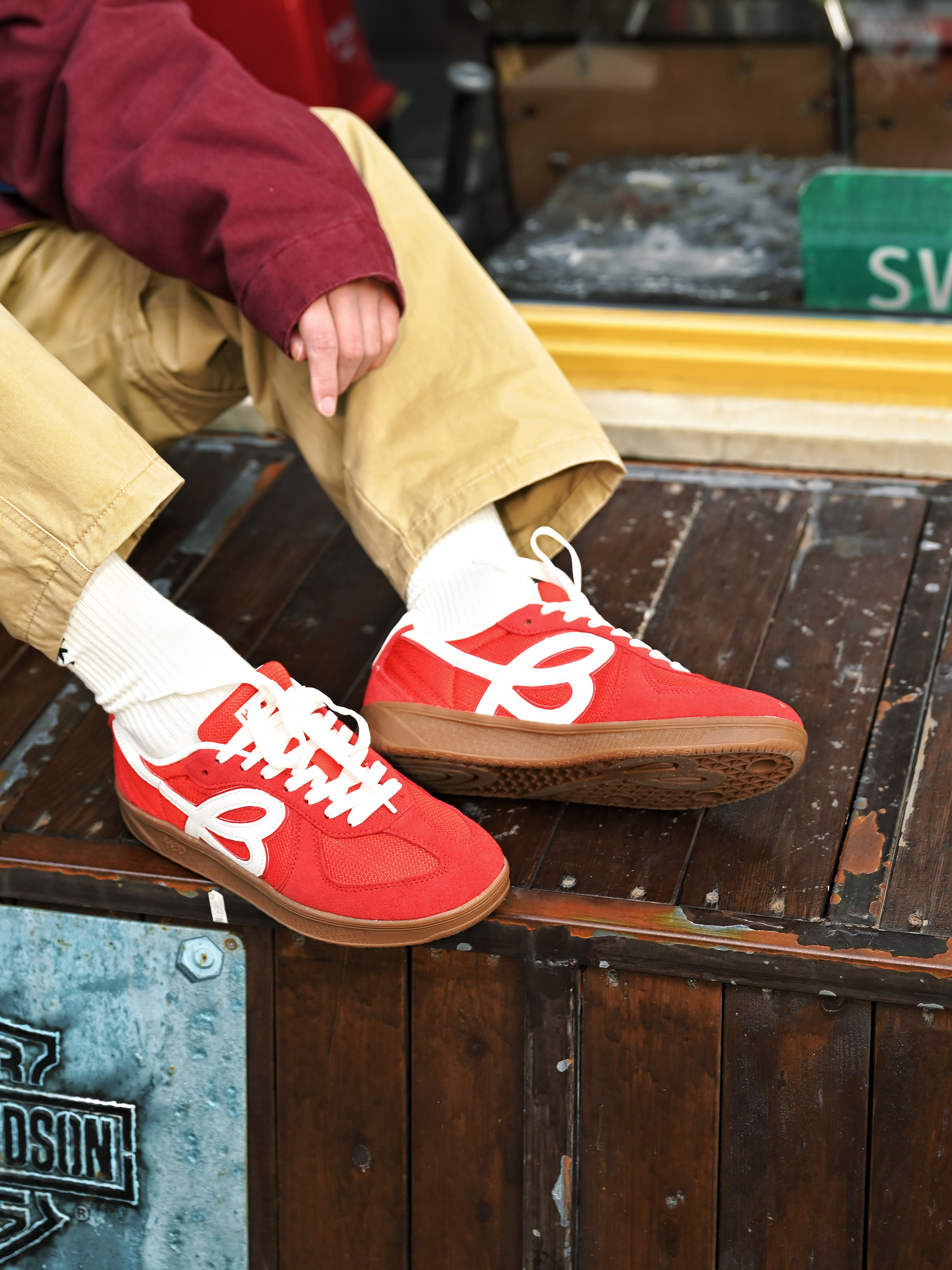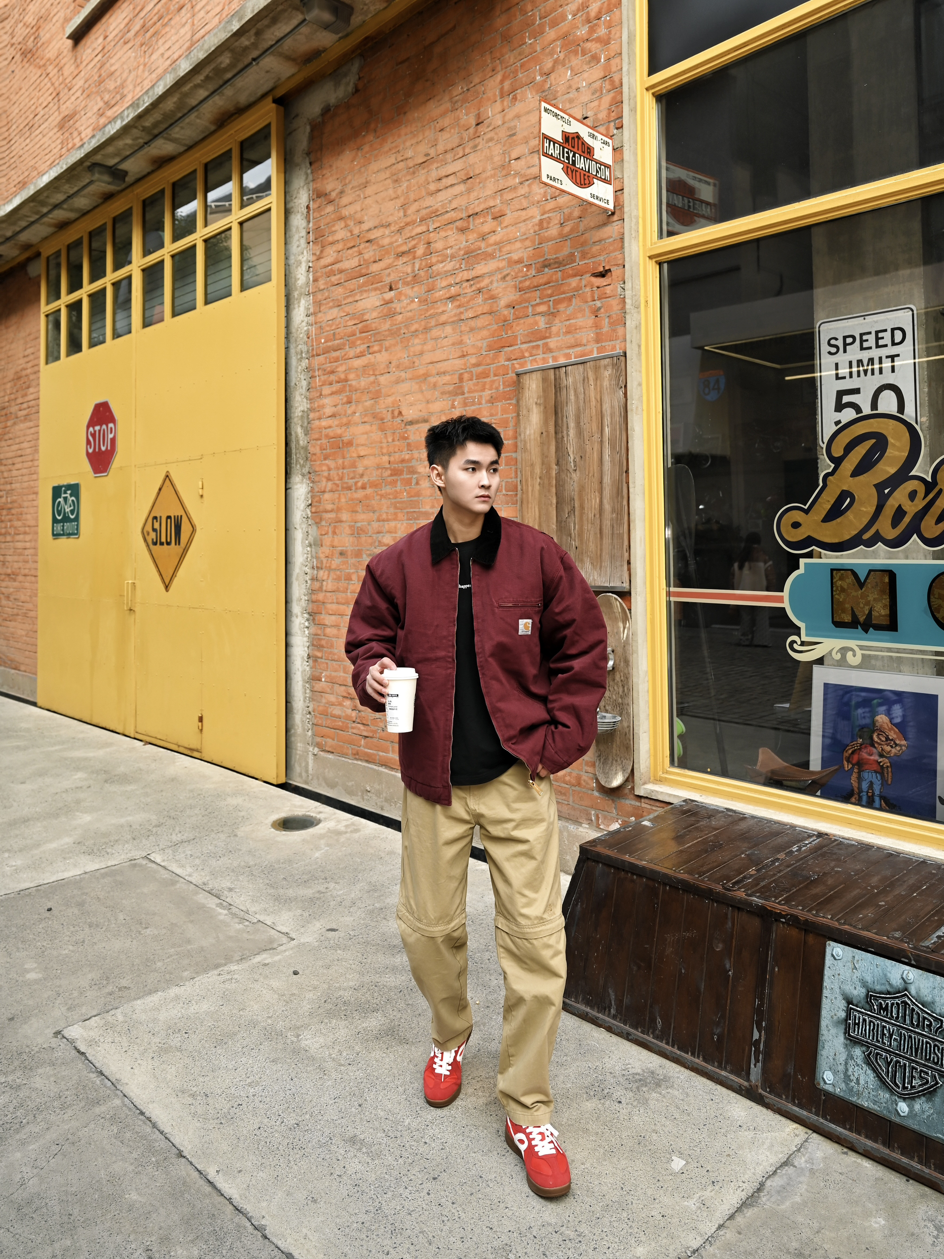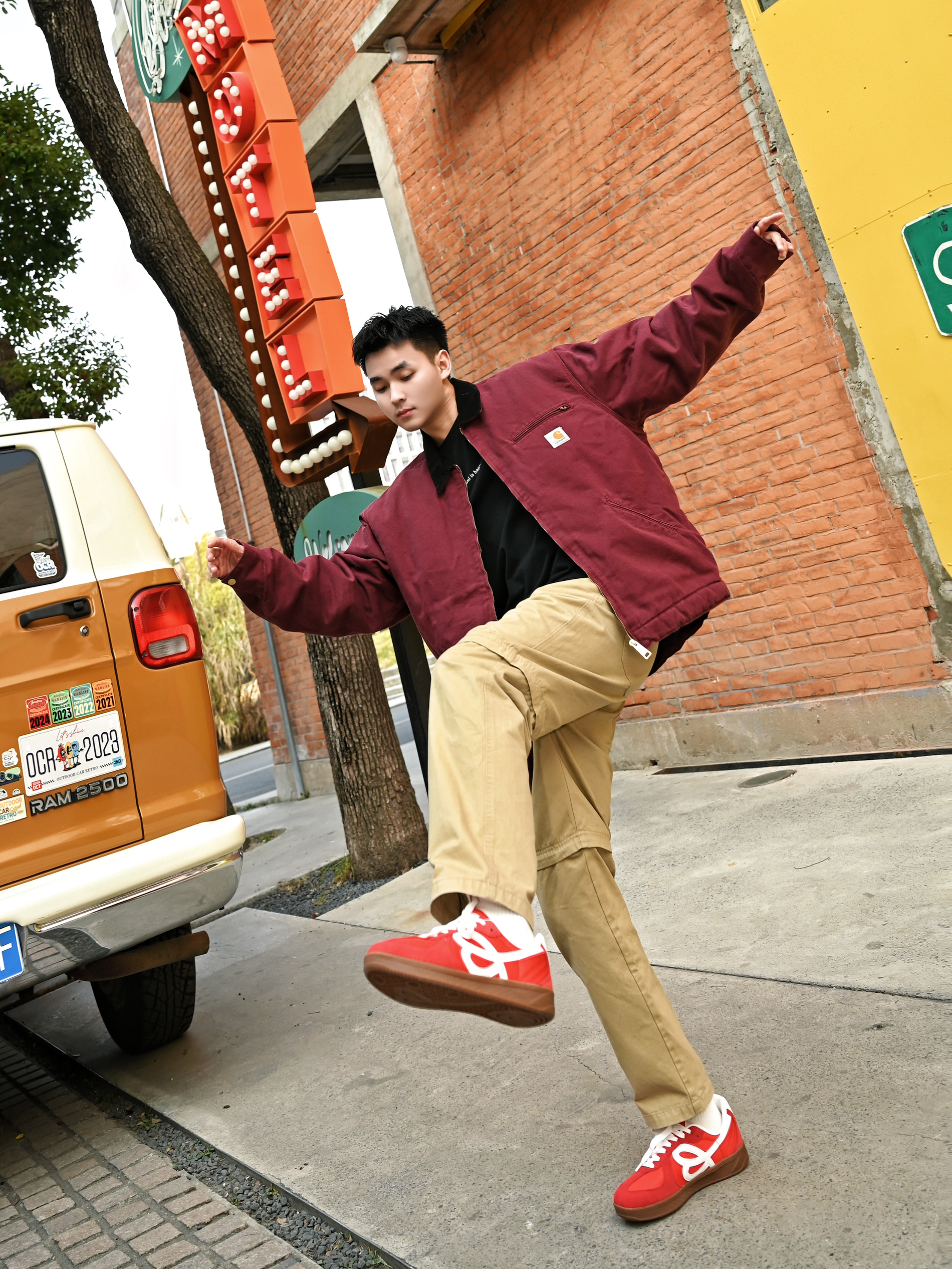 美式街头boy秒变双开门 红色的工装外套,很有美式复古的味道 利落的宽肩设计增加气场 版型也非常立体,上身自带双开门 搭配卡其色工装裤,复古工装感一样心动 穿上小花德训鞋,红色上下呼应❤️🔥好有新年氛围感 日常搭配或者滑滑板,它家的鞋真的百搭又好穿 穿上真的太酷太帅了❤️🔥一整个气场全开 双开门从此不再是梦了