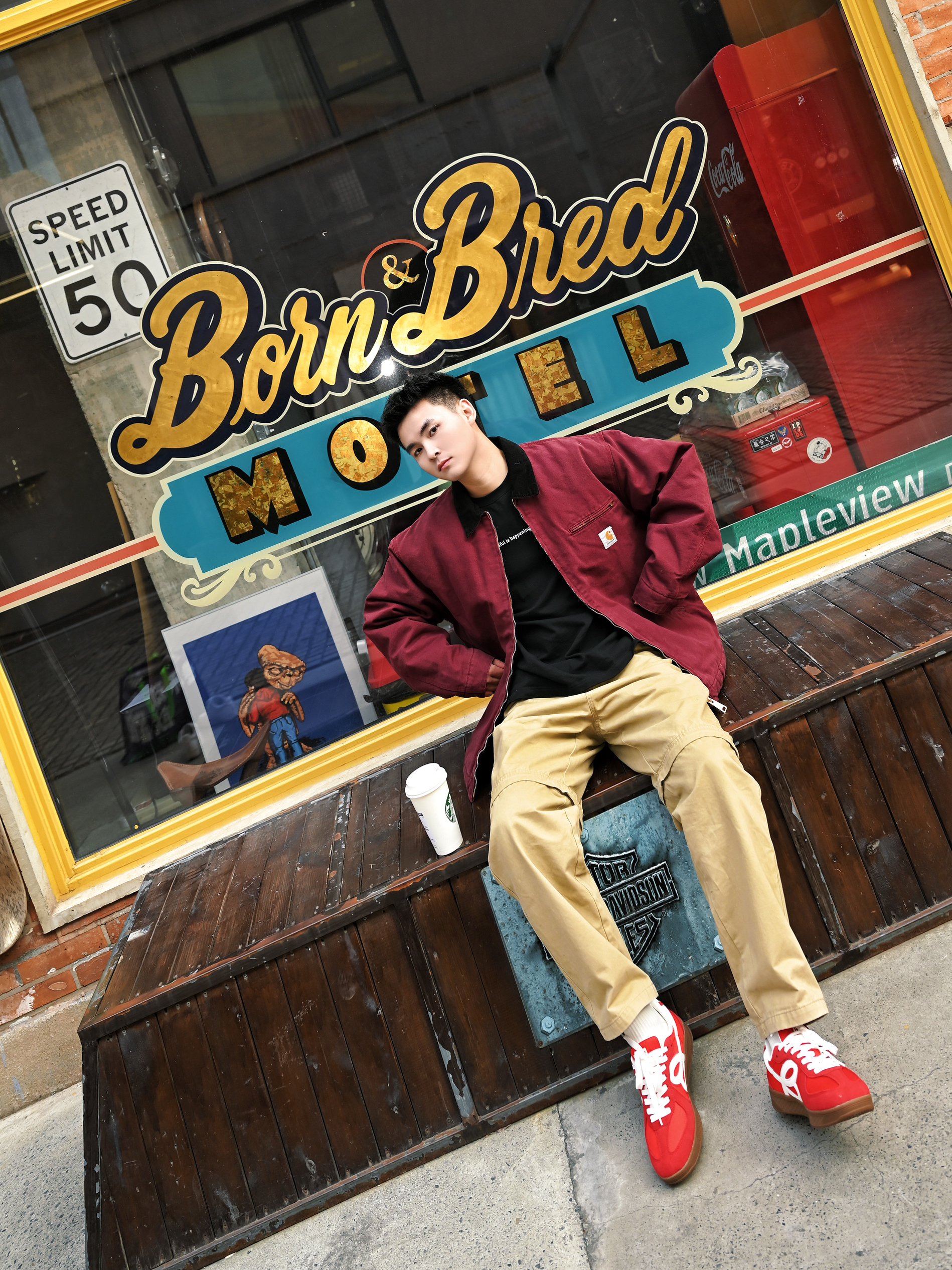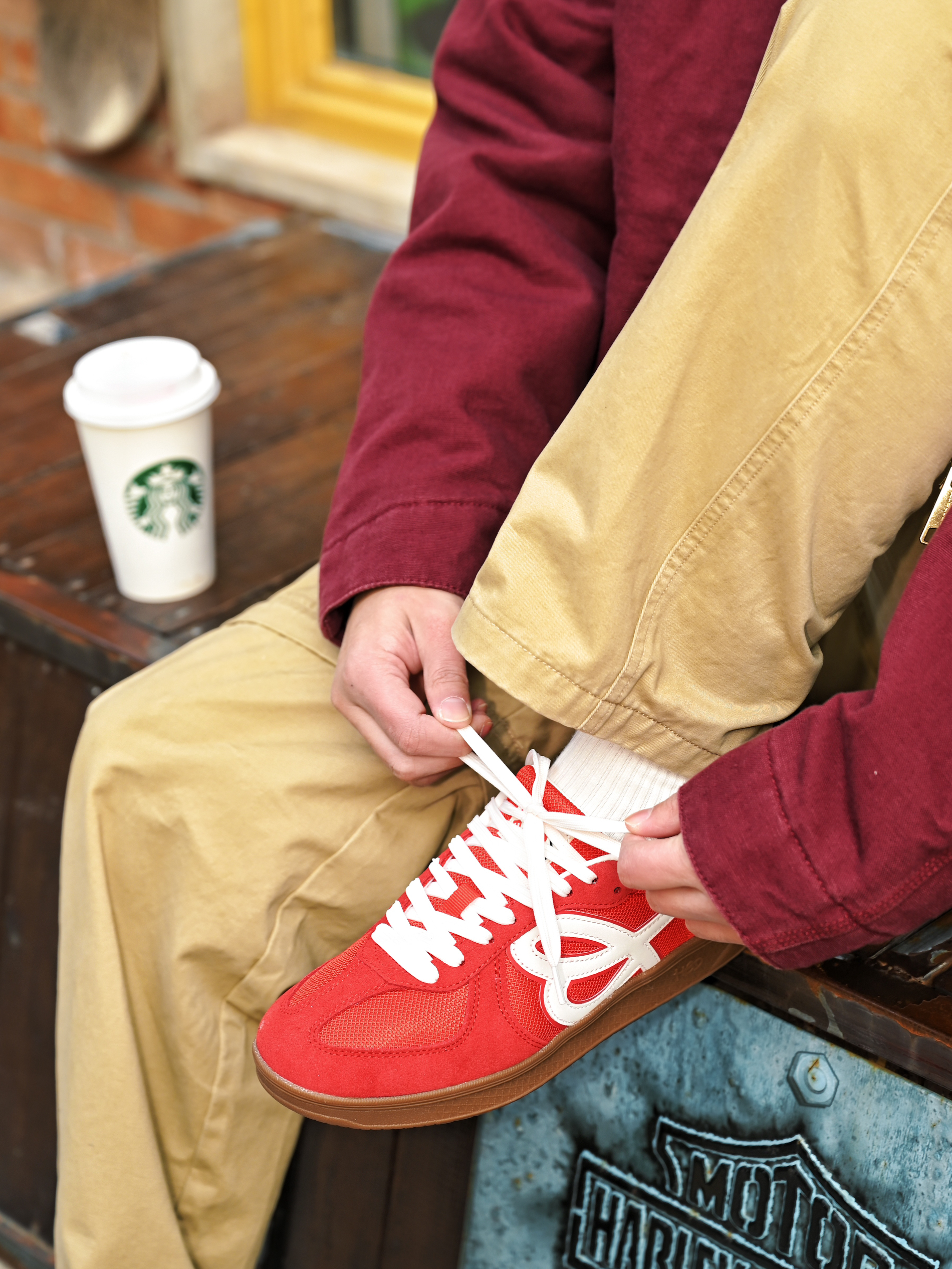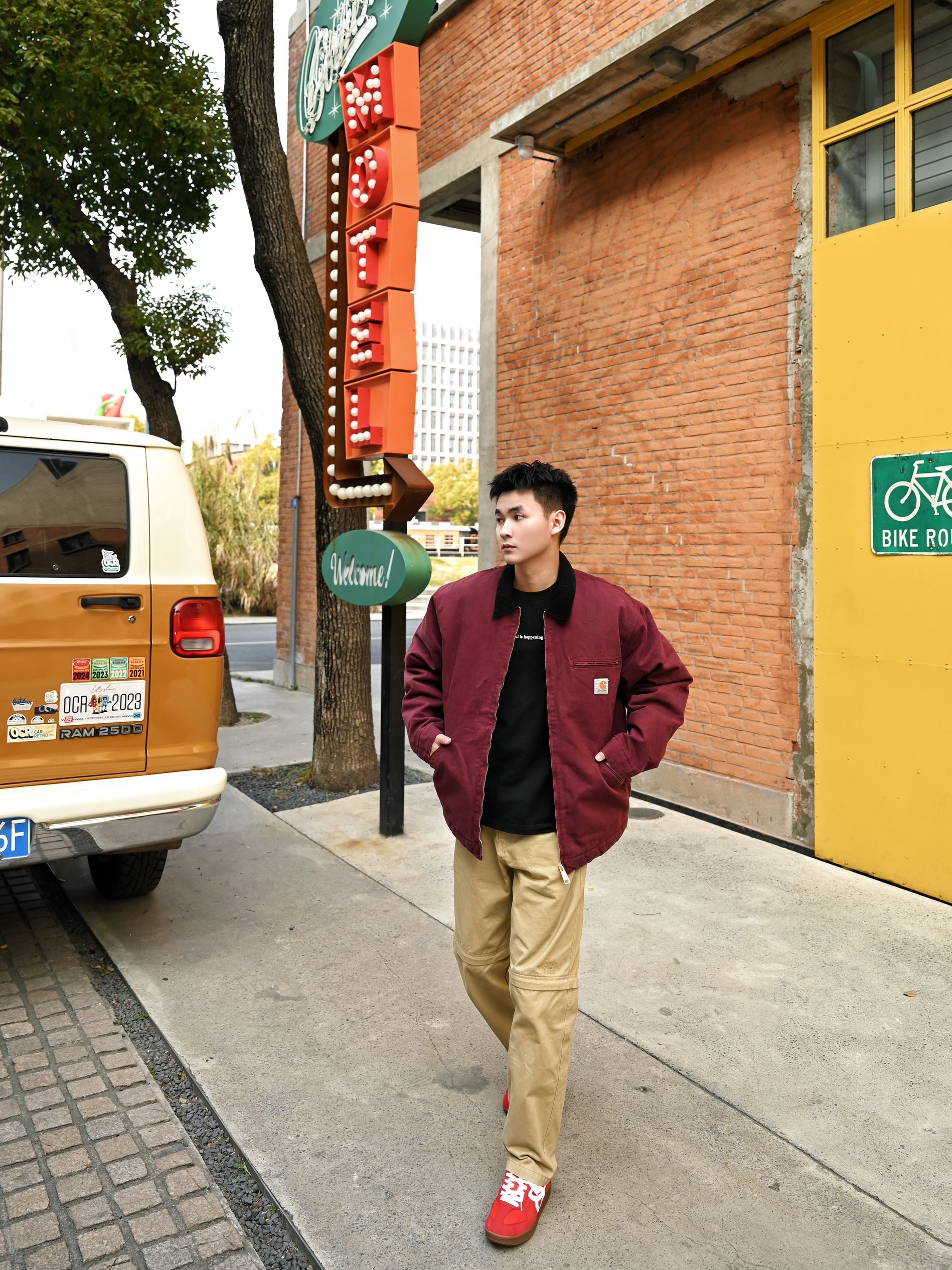 美式街头boy秒变双开门 红色的工装外套,很有美式复古的味道 利落的宽肩设计增加气场 版型也非常立体,上身自带双开门 搭配卡其色工装裤,复古工装感一样心动 穿上小花德训鞋,红色上下呼应❤️🔥好有新年氛围感 日常搭配或者滑滑板,它家的鞋真的百搭又好穿 穿上真的太酷太帅了❤️🔥一整个气场全开 双开门从此不再是梦了