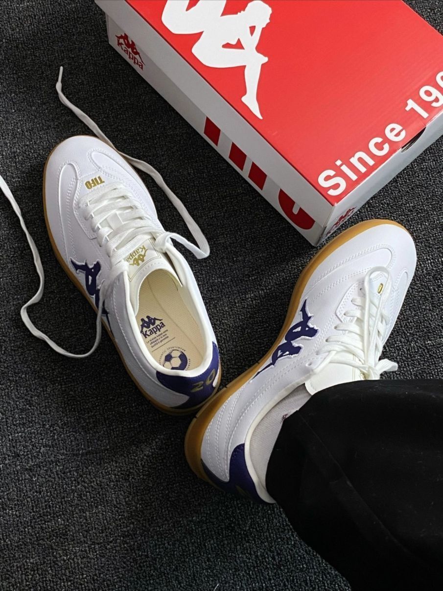 白色板鞋大家应该都有好几双吧,毕竟能满足大部分通勤需求。 kappa这个蓝色呼应的,白色板鞋线条和流畅度很舒服💘 鞋子整体厚度也适合这个季节,脚感kappa 一直做的很好,鞋子我买的正码,刚刚好。 它鞋子前面有透气孔也比较透气,根本不用担心