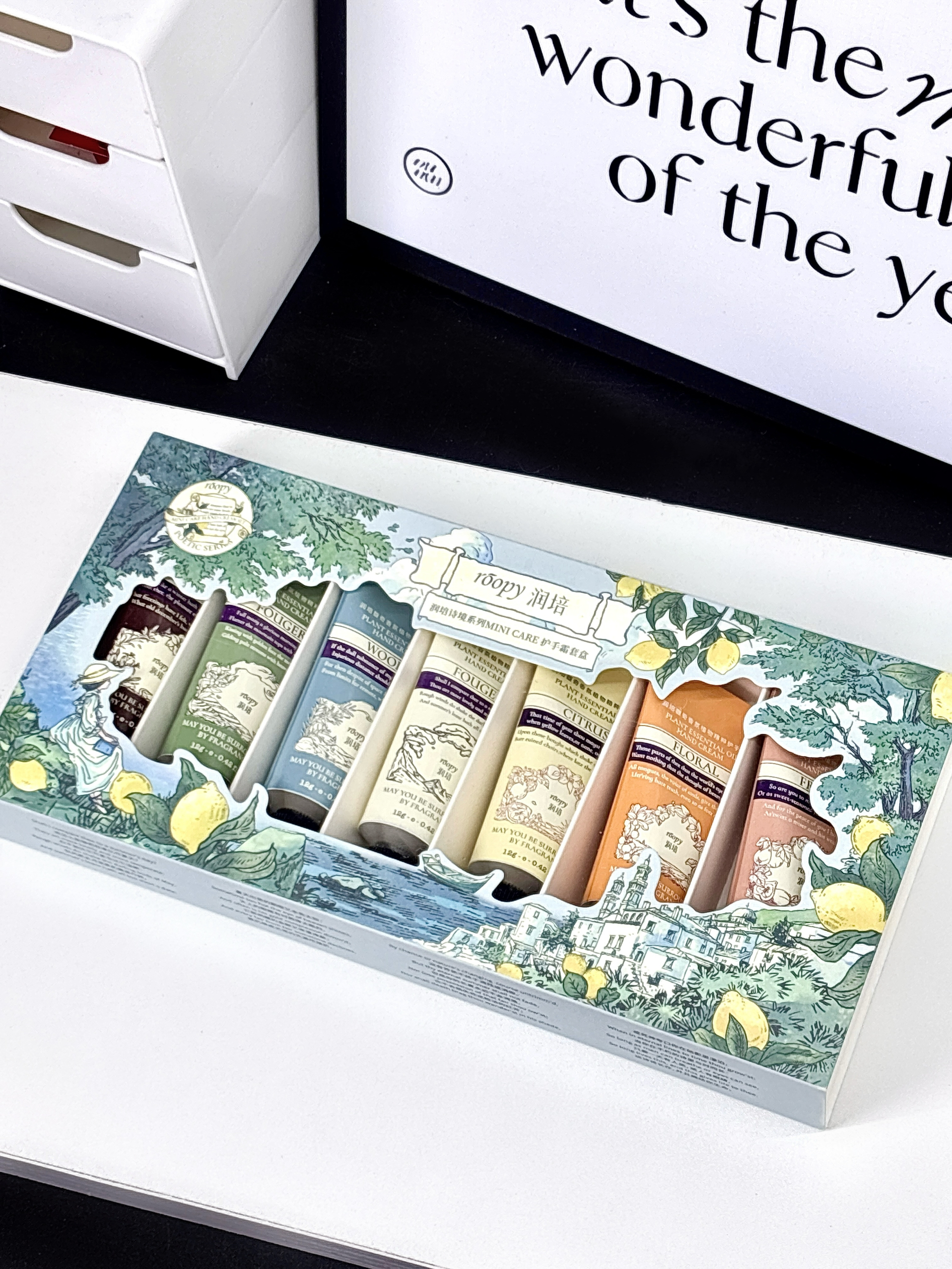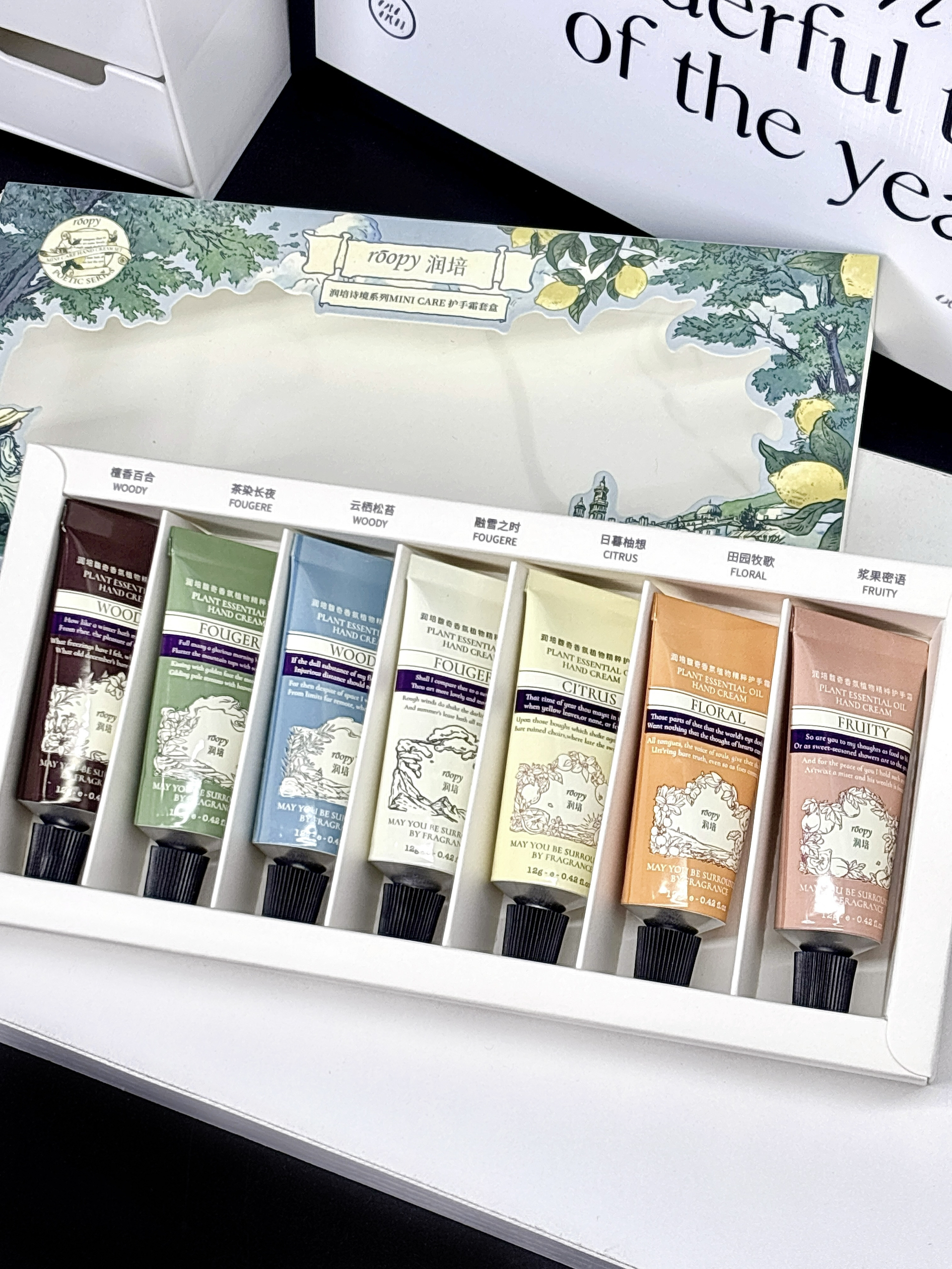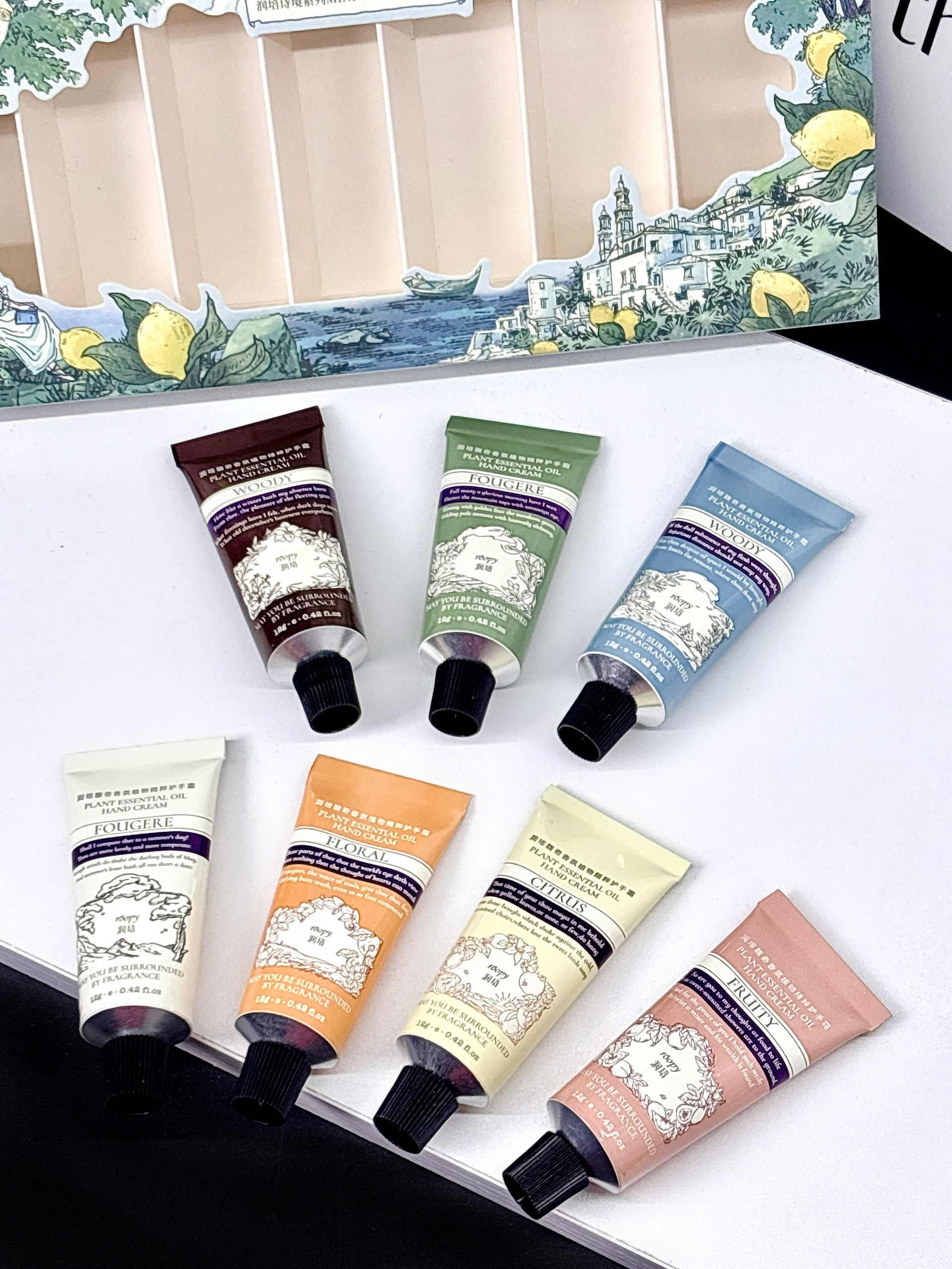 就系介个润培的护手霜哇 拆开里面满满一大盒好幸福捏 有七种不同的味道 每一只都挺好闻的 质地是比较清爽不黏腻的 像我这种手干干的涂上好润 小小一支平时出门带敲方便~