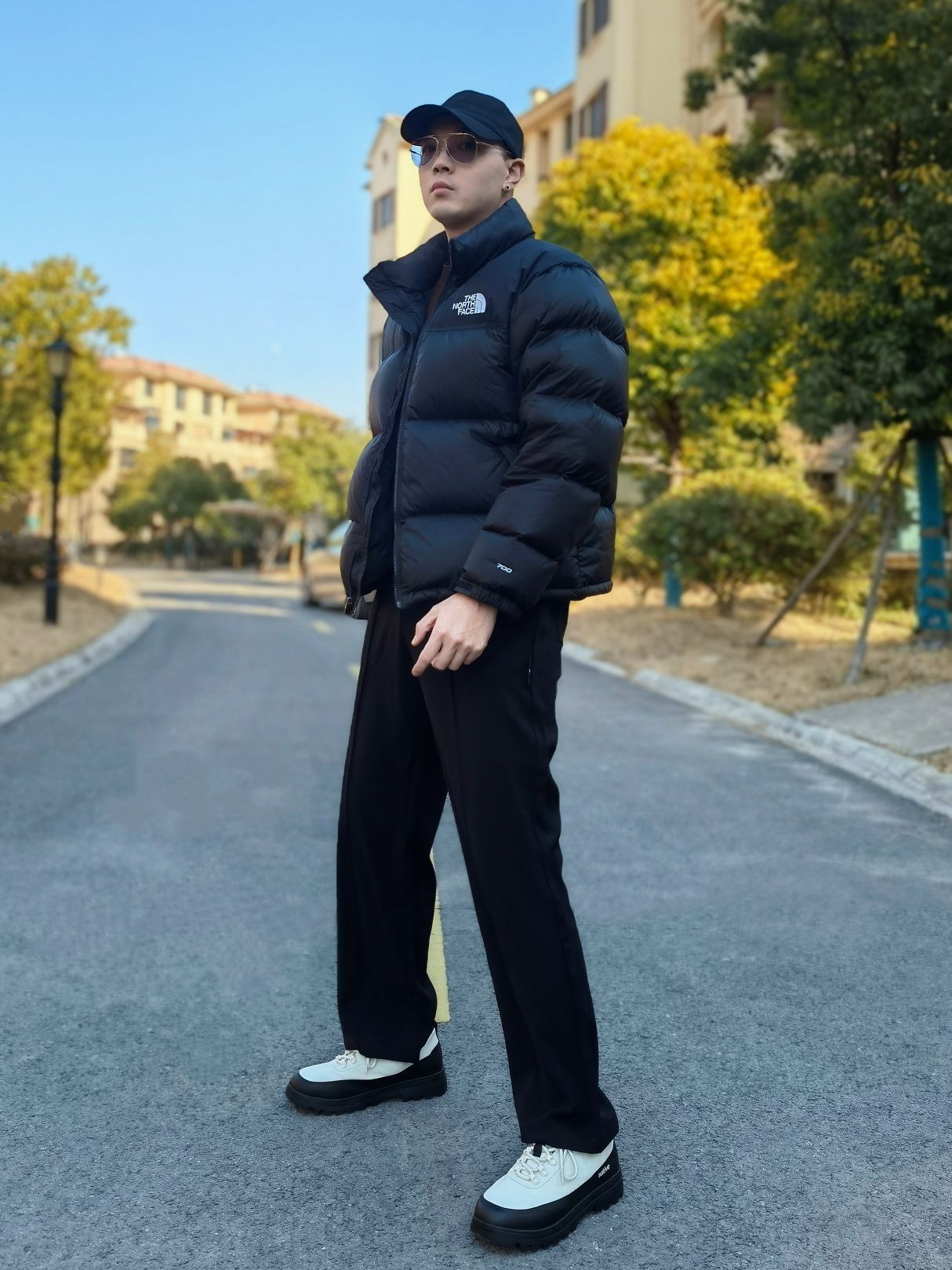 hello 大家好,这里是撒旦锅锅 💜179cm/80kg 🌞今日穿搭为运动休闲风格 搭配类型:羽绒服+休闲裤+休闲鞋 上身搭配THE NORTH FACE北面美版1996羽绒服,下身搭配黑色休闲裤,最后搭配一双黑沙拼色休闲鞋,整体穿搭运动休闲风满满❤
