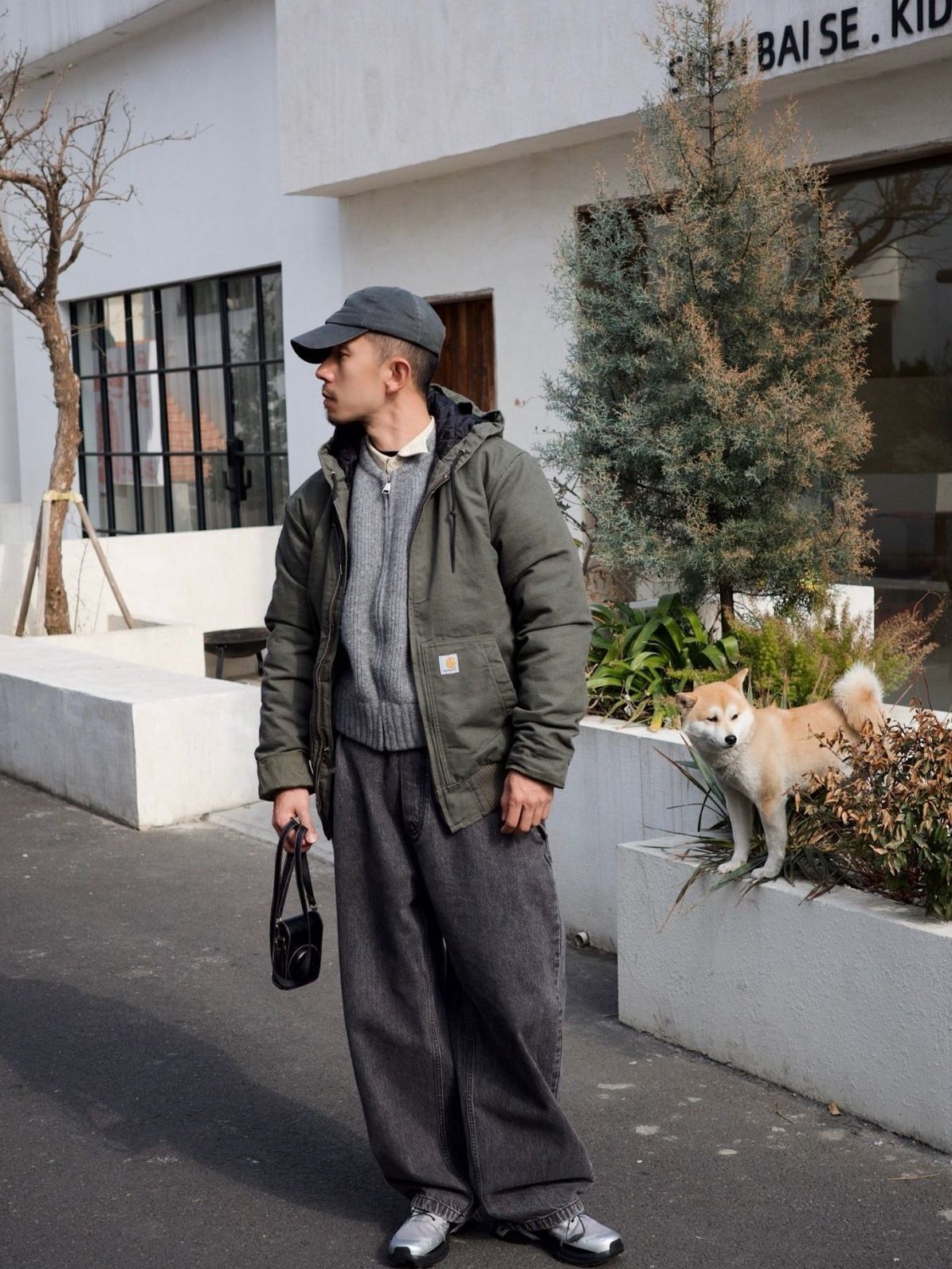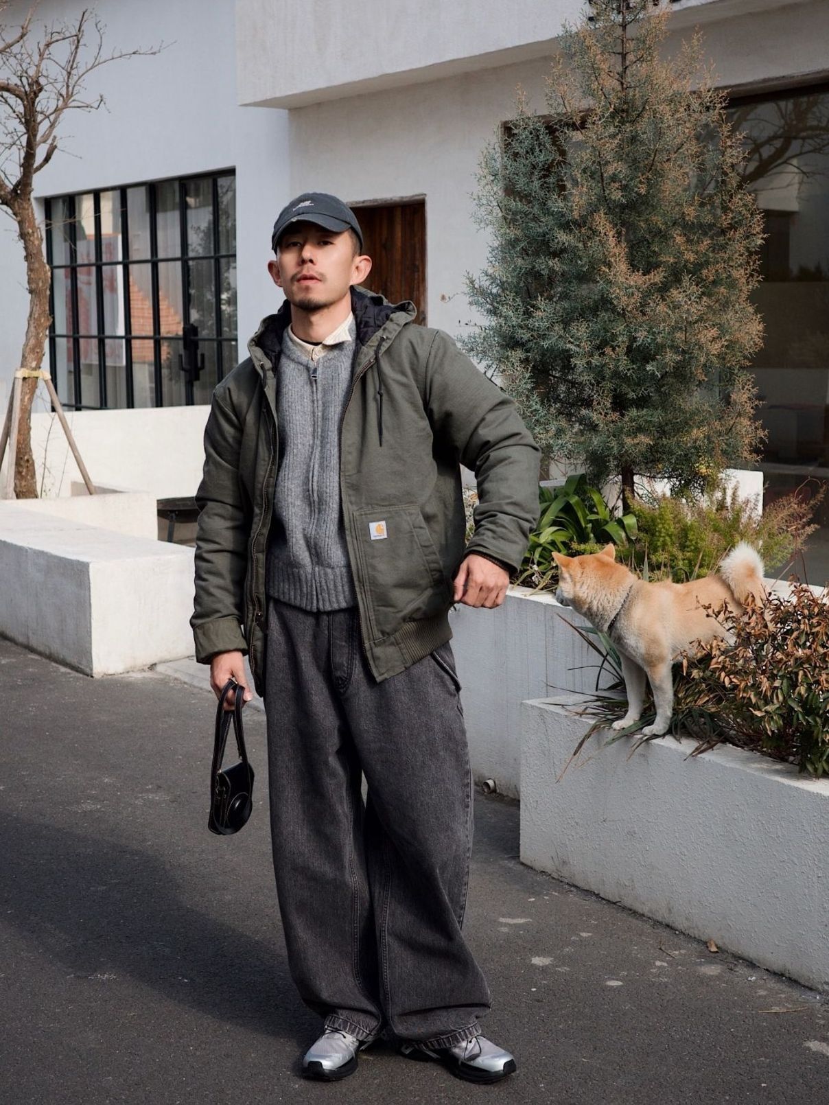 上身Carhartt工装连帽外套 个人感觉比经典黄色款更实用 绿色平时搭配简单方便 内里加棉,秋冬换季穿着非常适合 平时出门配上一条直简牛仔裤门就很帅气 今天里面叠穿了毛衫和衬衣,个性潮流也是轻松拿捍 一身简单的工装风,帅气温暖通通拿下 图源网络侵删
