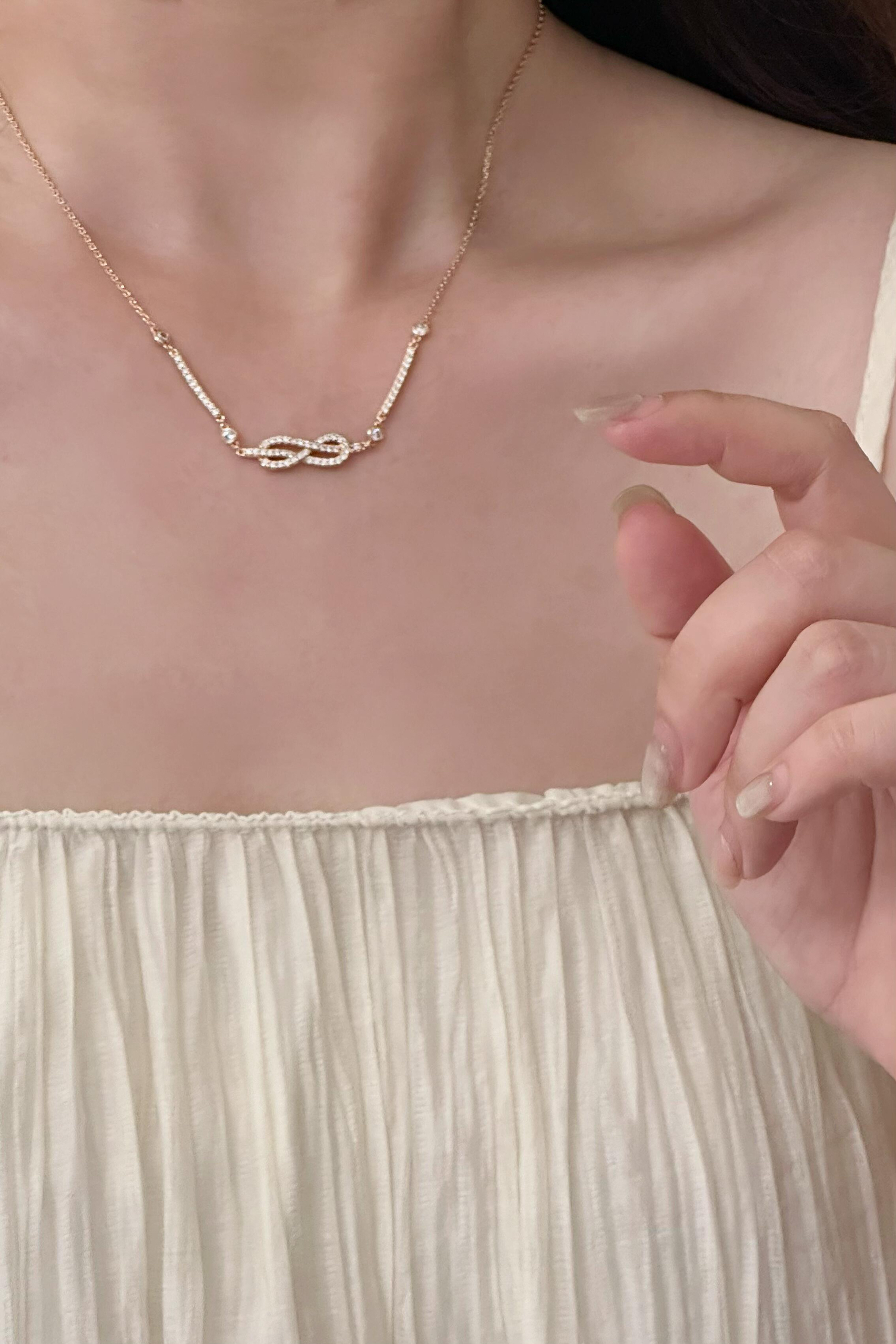 此款 EMPORIO ARMANI 项链以立体的十字细链串联,配以晶石密镶的八字结饰与对称一字吊坠,彰显繁复设计美感与年轻时尚的生活态度 脖颈,轻松驾驭多种场合,绽放现代自信魅力。