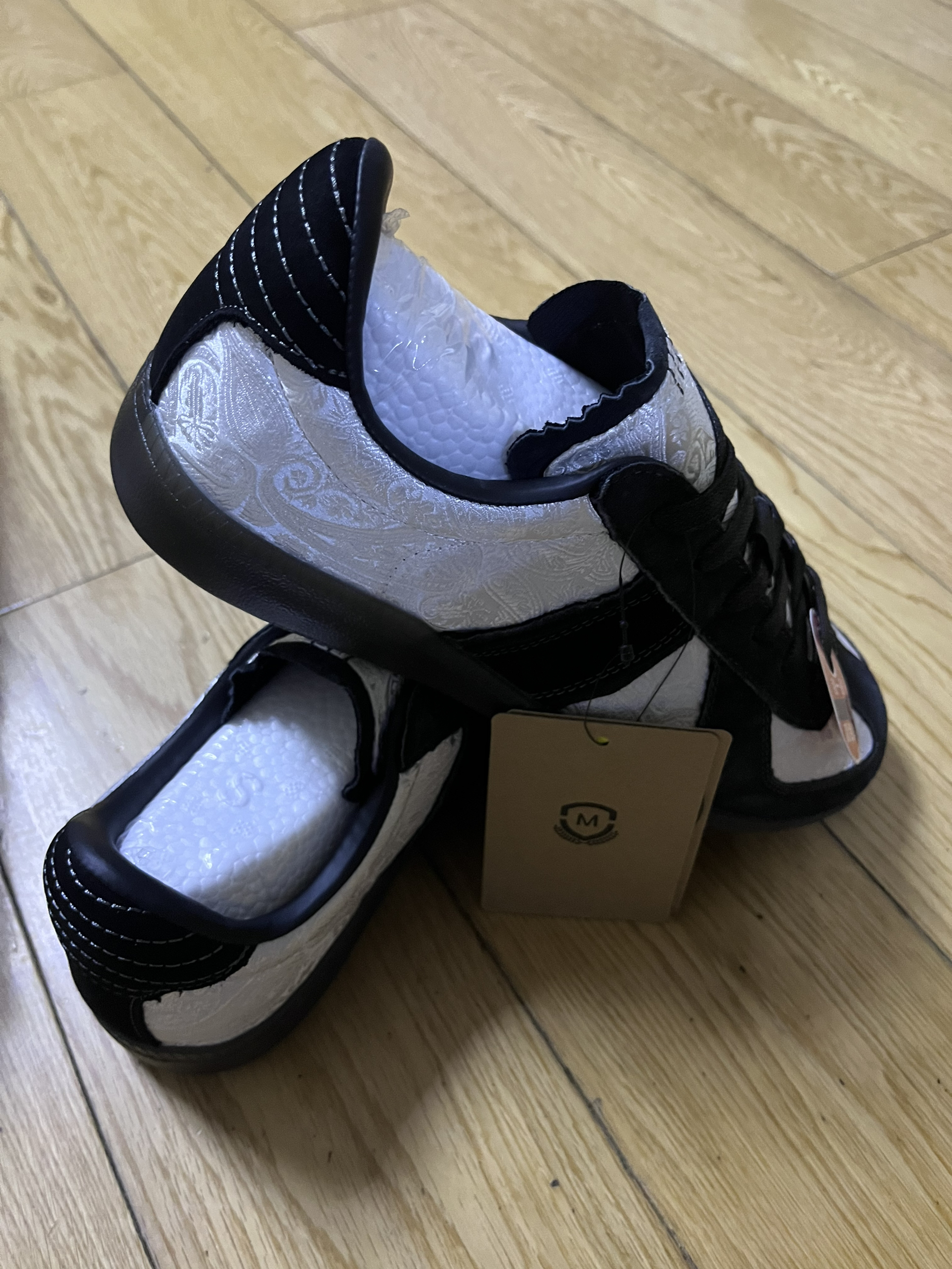 本篇笔记关联了Maden/马登 德训系列 德训鞋 板鞋 国潮风平底拼接百搭复古丝绸 墨色/白色等商品,为用户提供真实的使用体验和购买参考。