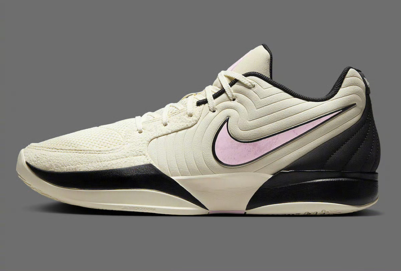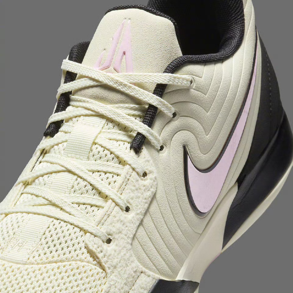 Nike Ja 2 Coconut Milk 莫兰特二代JA 2椰奶配色官图,奶油色绒面革和网面搭配淡粉色与后跟和中底侧面黑色的比例搭配还挺适合穿搭的