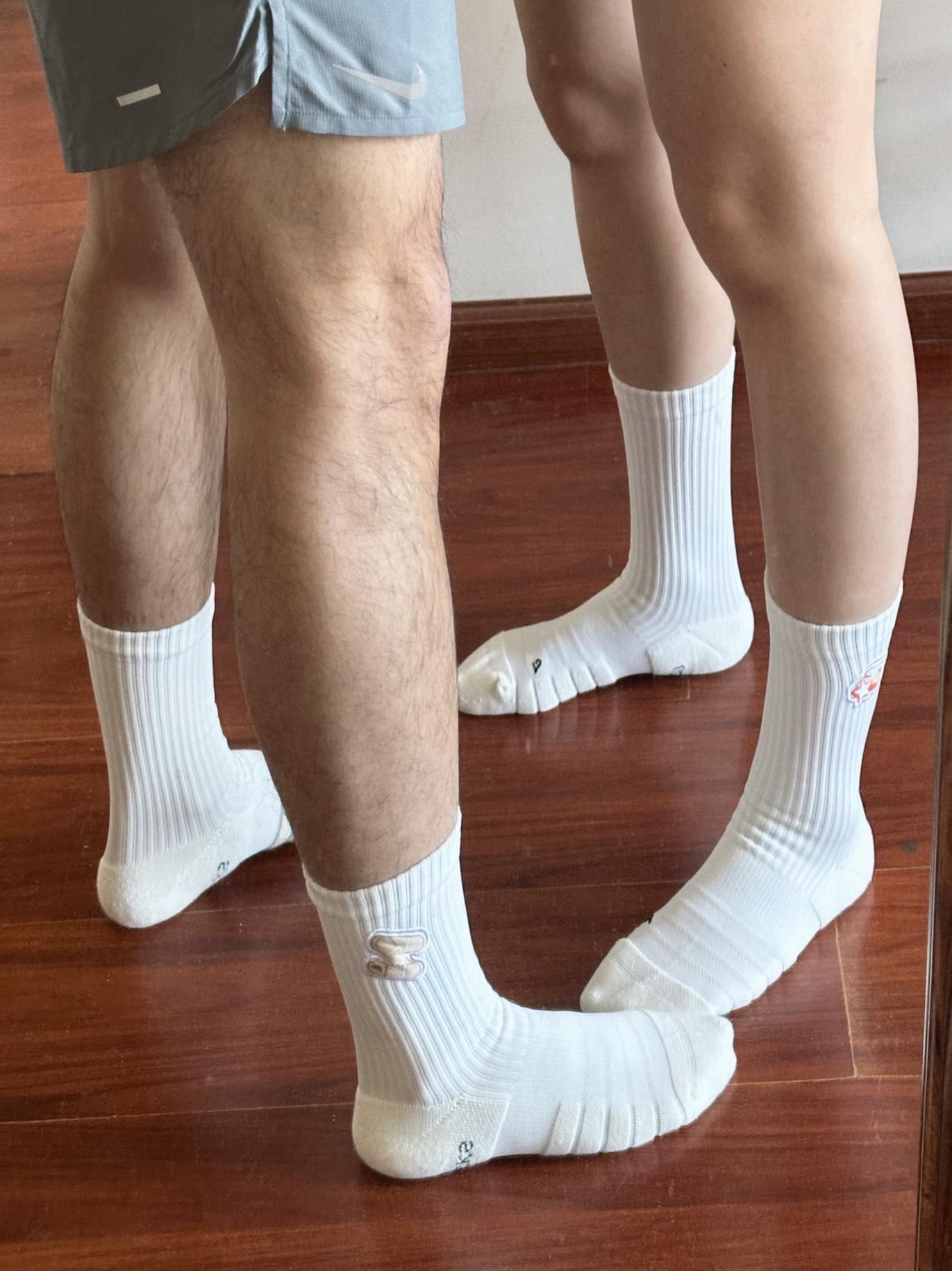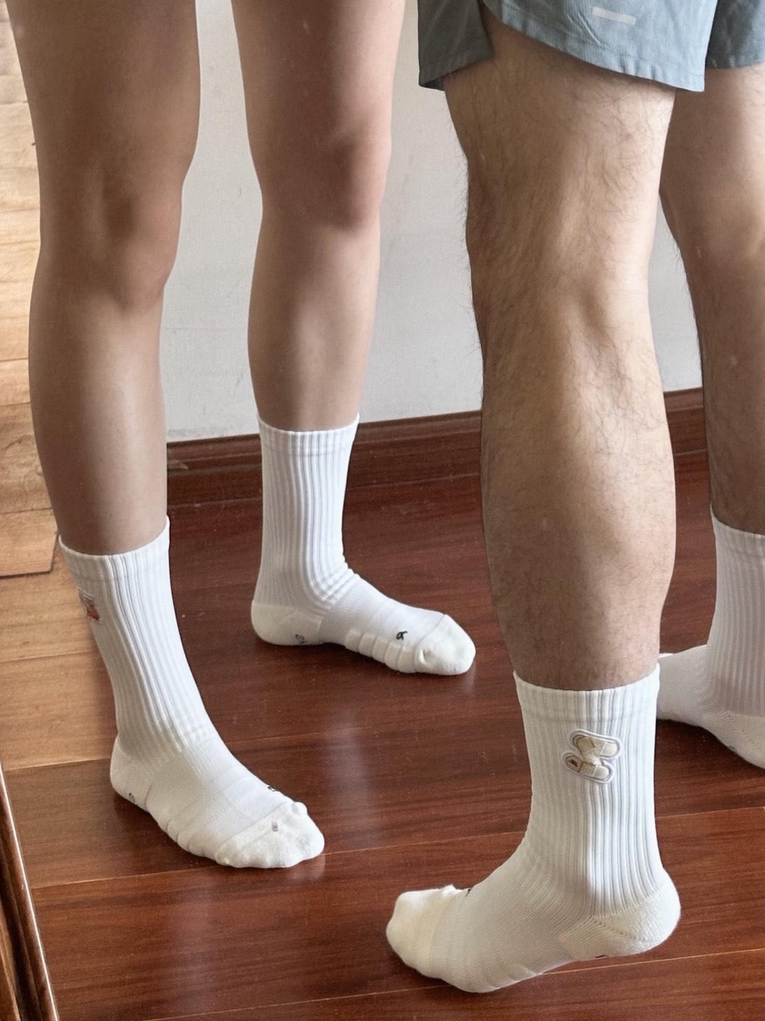 上一条大家都在讨论我俩谁高😂事实就是他比我高一些😎可能是我的裤子短显高 这次我基本上躲后面拍了,图6应该能看出来我俩膝盖高度😝 这次入的这两双袜子最有特色的地方在刺绣标,可以看最后一张图,是拼贴的那种刺绣,很有设计感,我其实更喜欢创可贴🩹但是被我的冤种对象抢了,穿上之后我真香了,星星💫也超级好看亮眼,这款一点都不勒脚,感觉只要不是超级小脚和巨大脚都可以穿~ 图源于@小Q爱吃海带,侵删