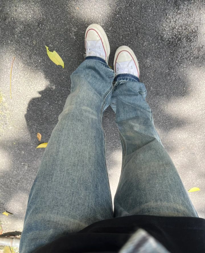 不愧是我熬夜选出来的牛仔裤!!显瘦又显腿长!!裤脚的设计氛围感拉满!搭配经典白色匡威真的太帅啦!!