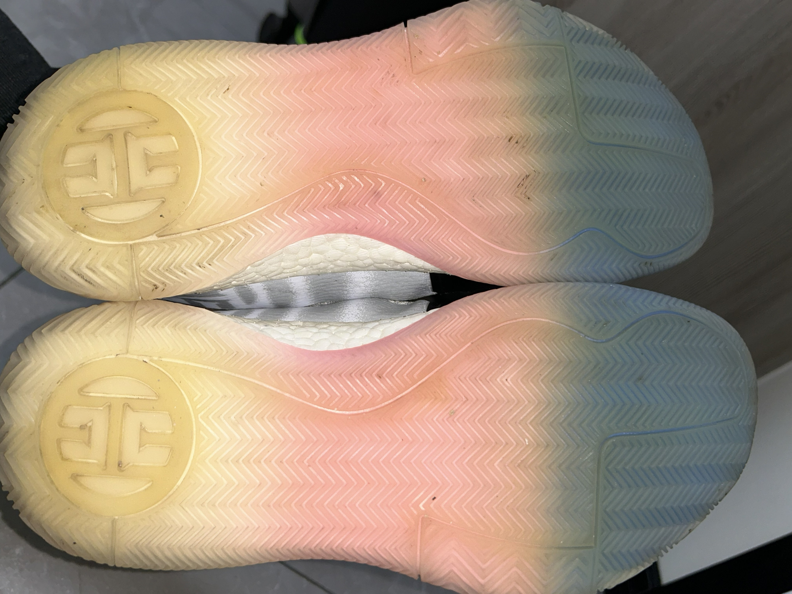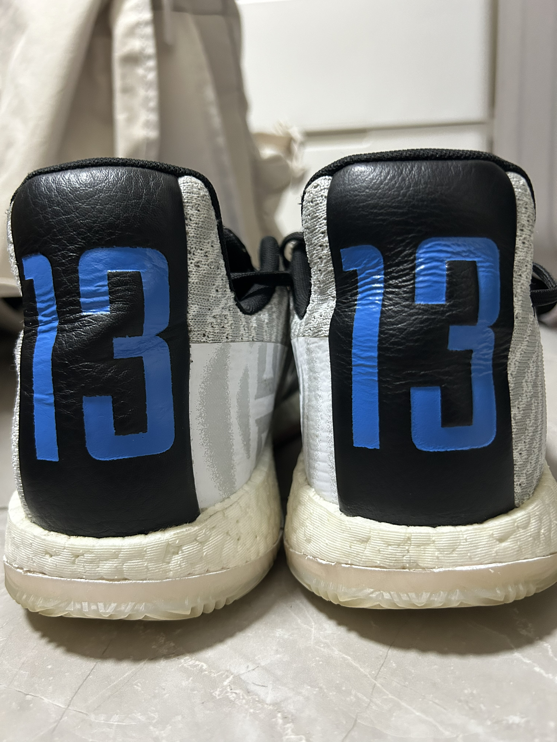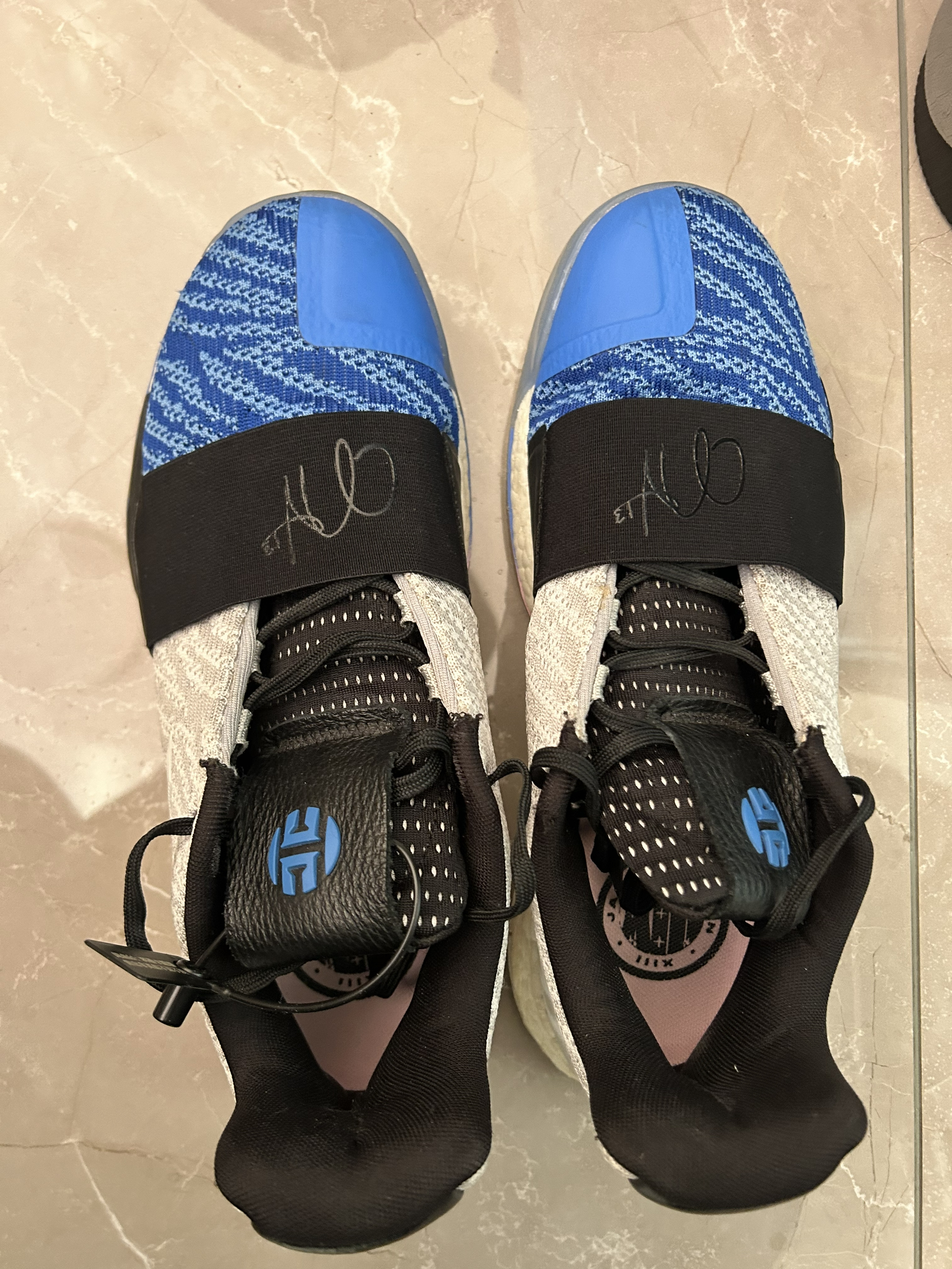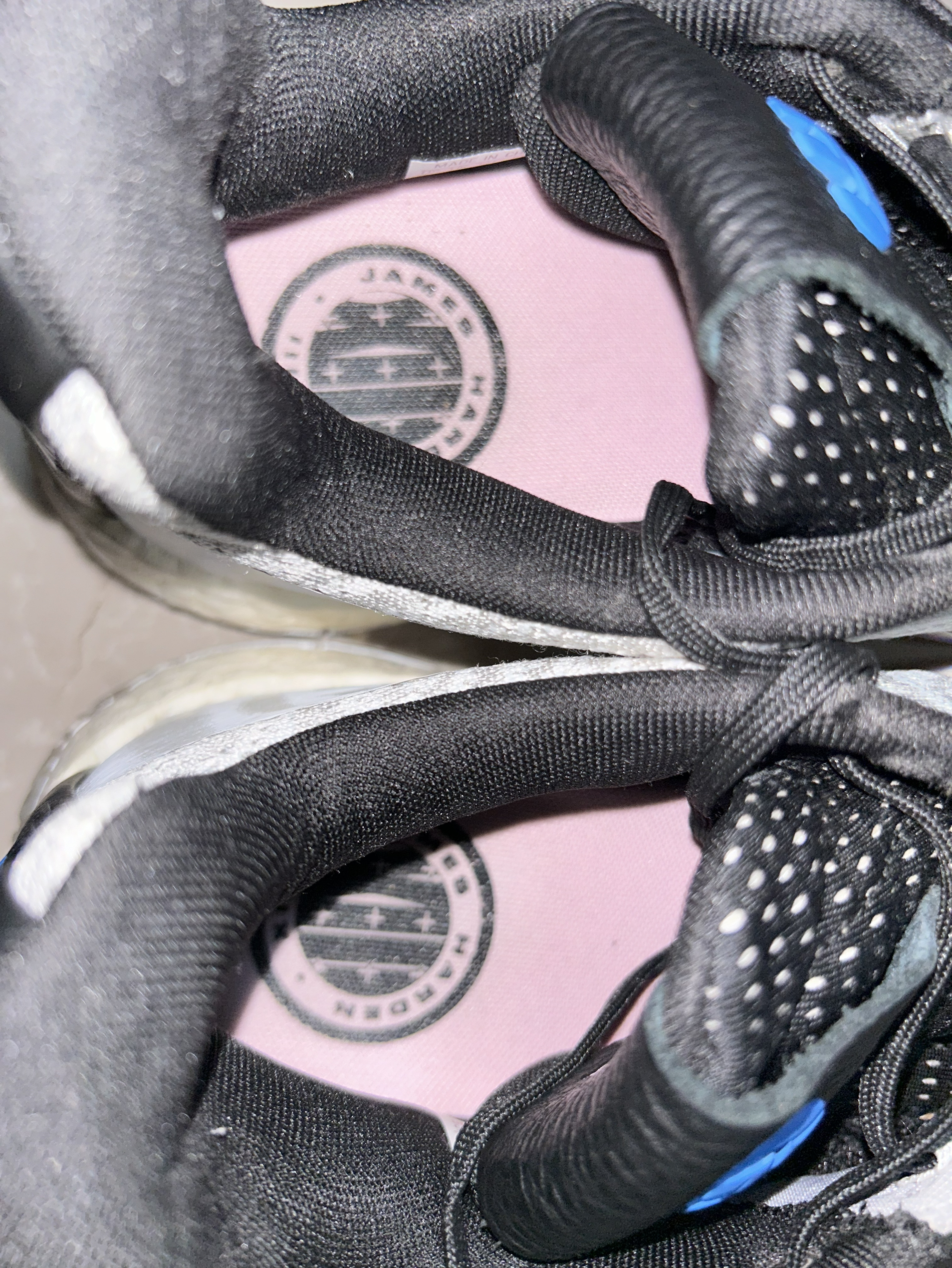 哈登3是我最最喜欢的一双鞋,非常好穿,前掌薄而贴地,搭配全掌boost,过度顺滑!这款产自2018年的鞋放到现在也同样惊人! 这双蓝灰配色很有感觉,蓝色和灰色为主搭配一点粉色和黑色,搭配简约的鞋型,低调而有内涵 我前前后后买了三双,打球的时候我一般带一双哈登3,再带一双其他鞋,新款鞋总会有不合脚的时候,所以哈登3就成为了常备的实战鞋!