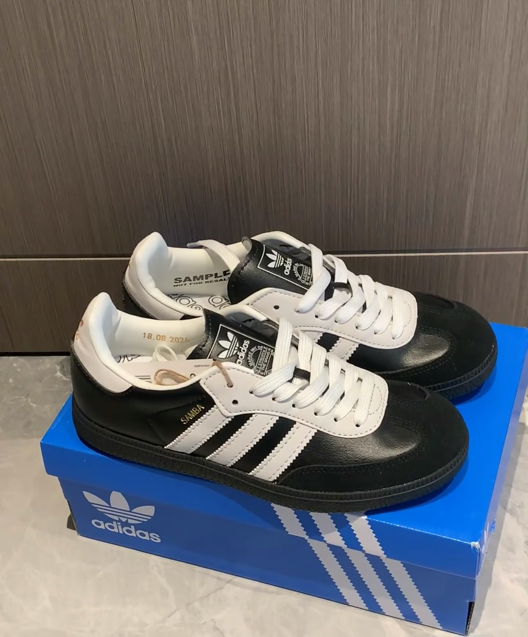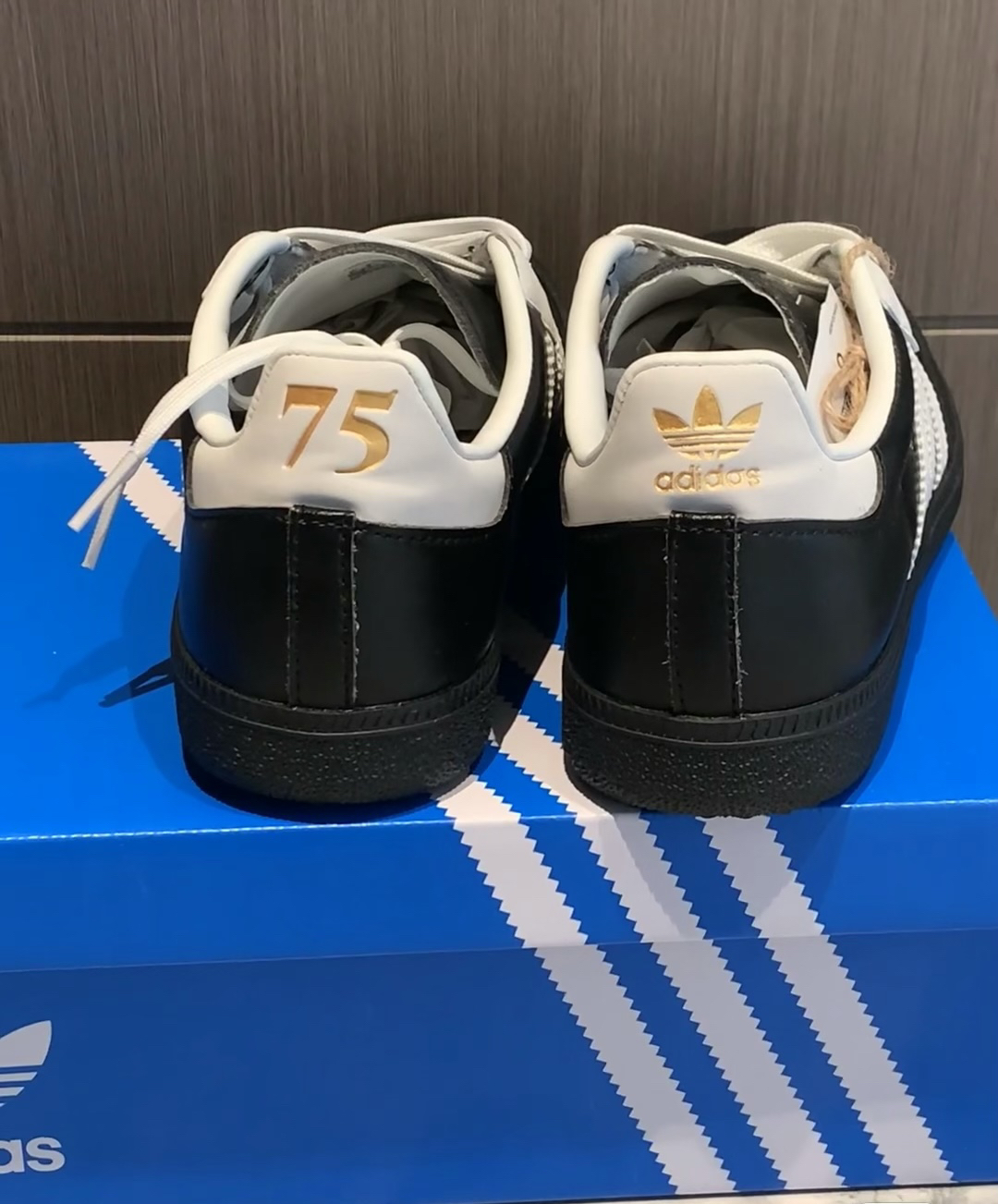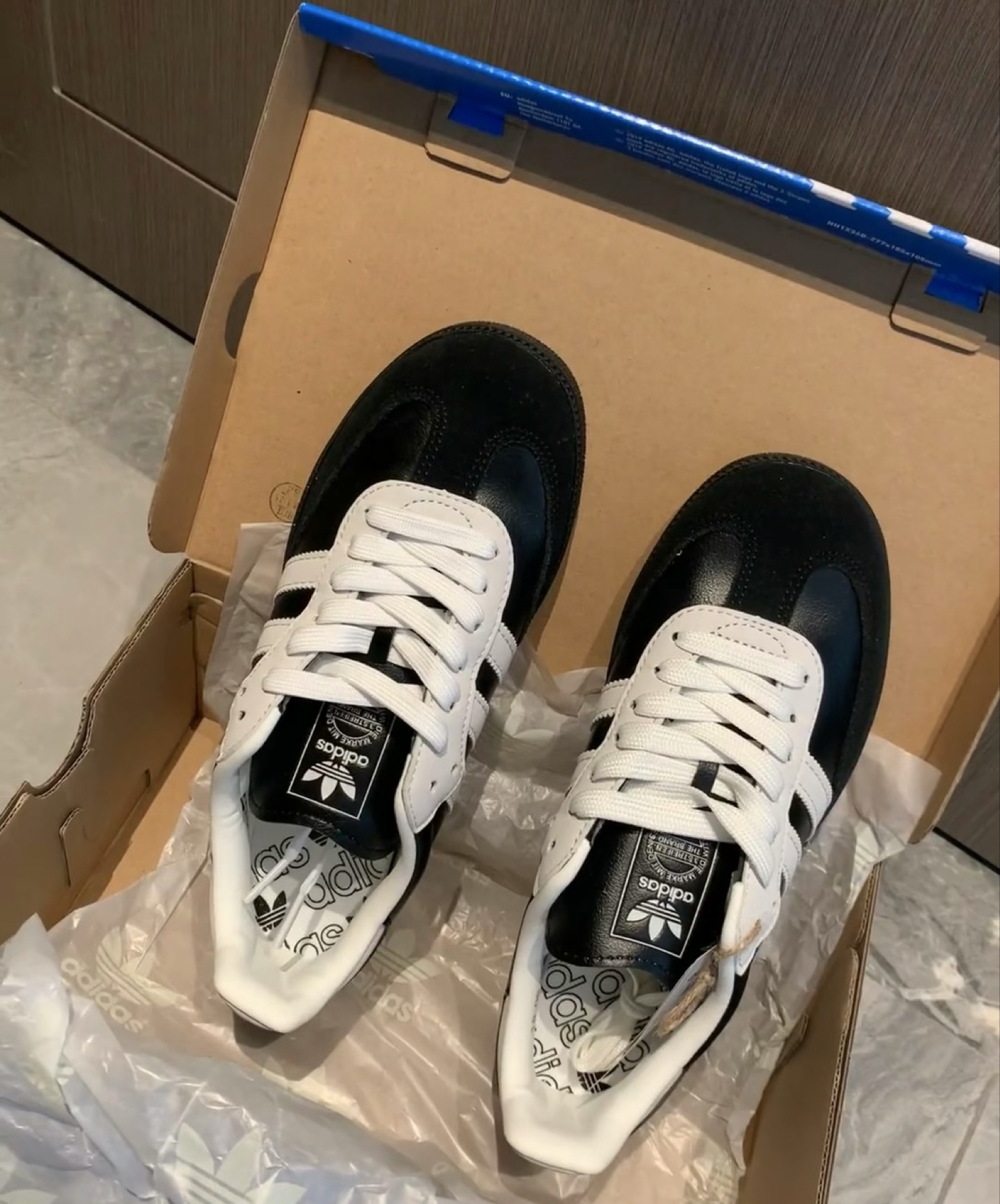宝子们,快来看这双 adidas originals SAMBA OG 75th Anniversary 板鞋! 黑色的它简直酷到没朋友😎,低帮款式超级显腿长。 穿上脚那叫一个舒适,时尚感也是满分💯。 男女同款,和对象一起穿超有范儿。 无论是日常出行还是运动休闲,它都能完美适配。 #adidasSAMBALOG #黑色板鞋 #舒适时尚 #男女同款