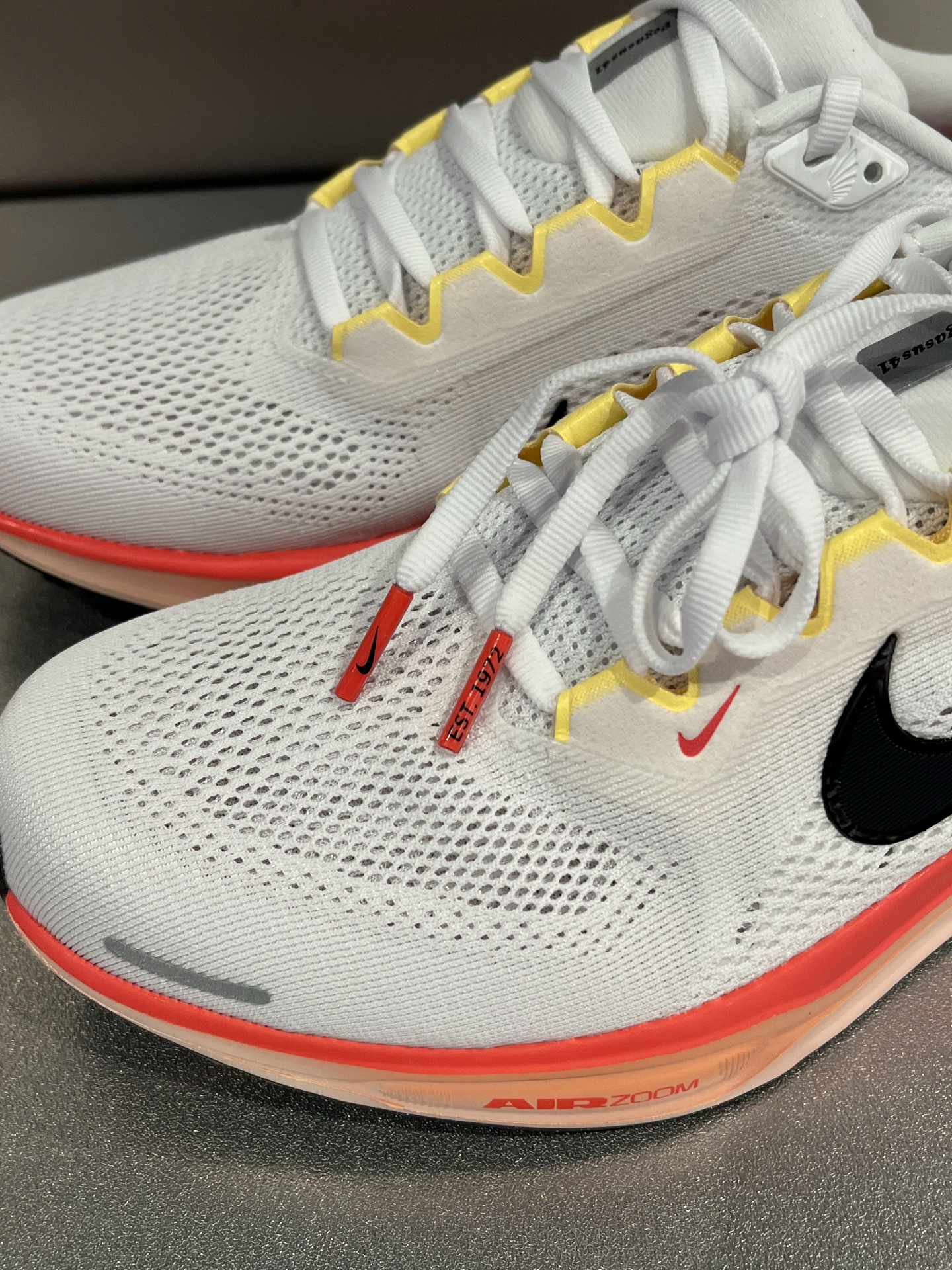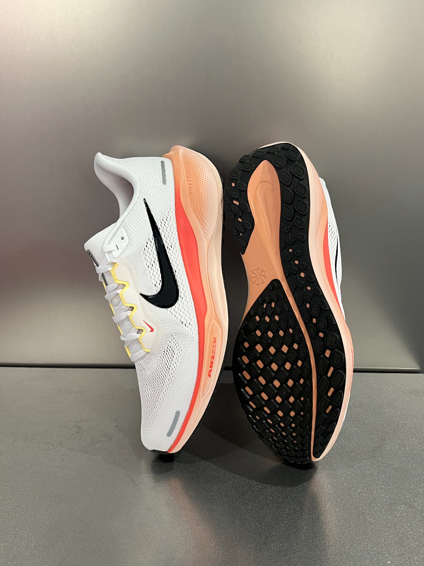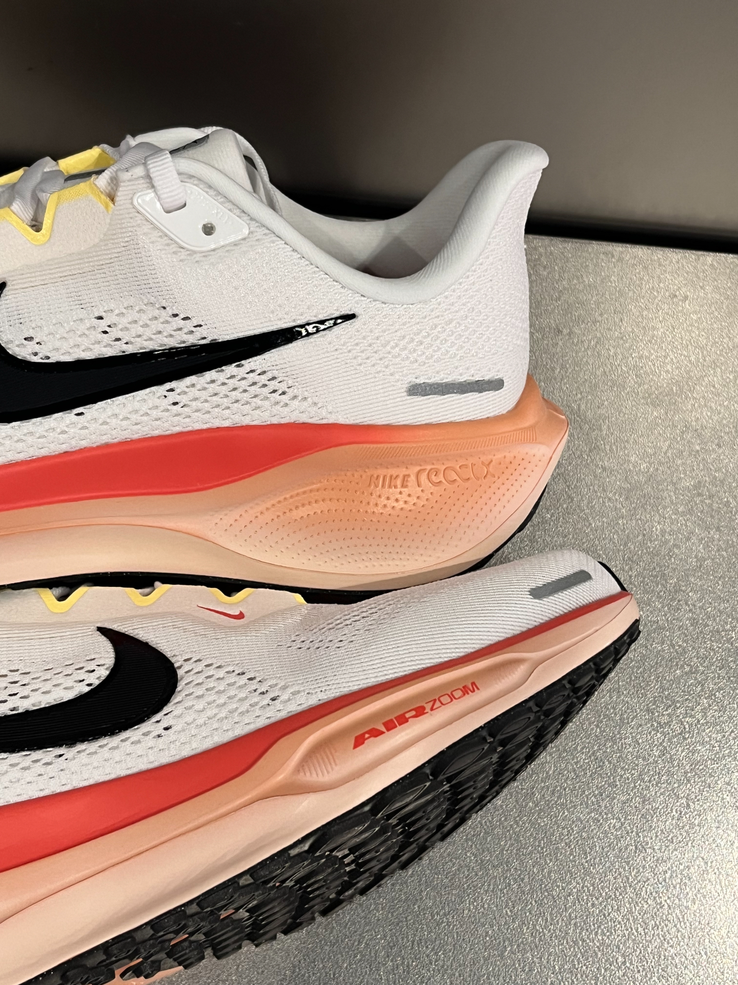 🍑有一说一,飞马41这双蜜桃色确实有点东西,和之前GT Cut同色系一样看起来很清爽,配黑色/灰色卫裤嘎嘎帅气~ 🎨整体配色很讨喜,白色鞋身点缀了金色/黄色,鞋边采用渐变的蜜桃粉色,作为男款还是很大胆的~ ‼️缺点也挺明显的,白色浅色系不耐脏,这种网眼布鞋面如果没有及时清洁,可能就要送洗鞋店专业处理。 #跑步装备体验官 #跑步就该穿跑鞋 #新年少不了这双鞋 #人人都是鞋类博主 #分享你的飞马41