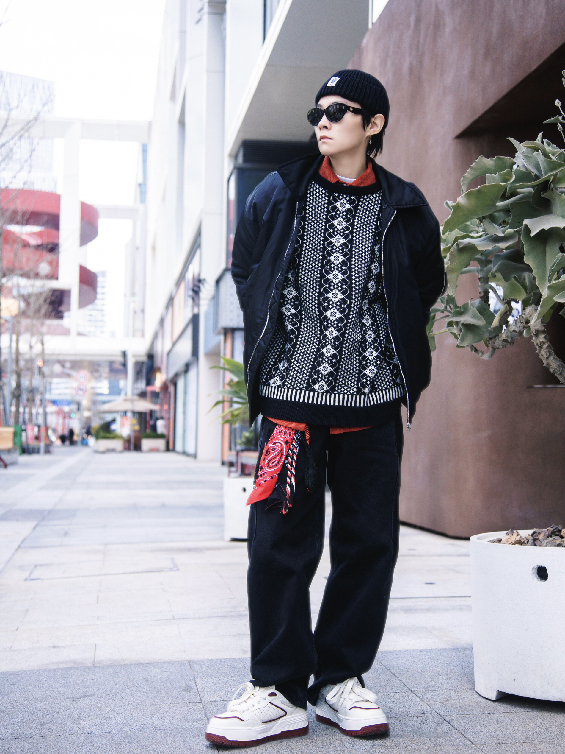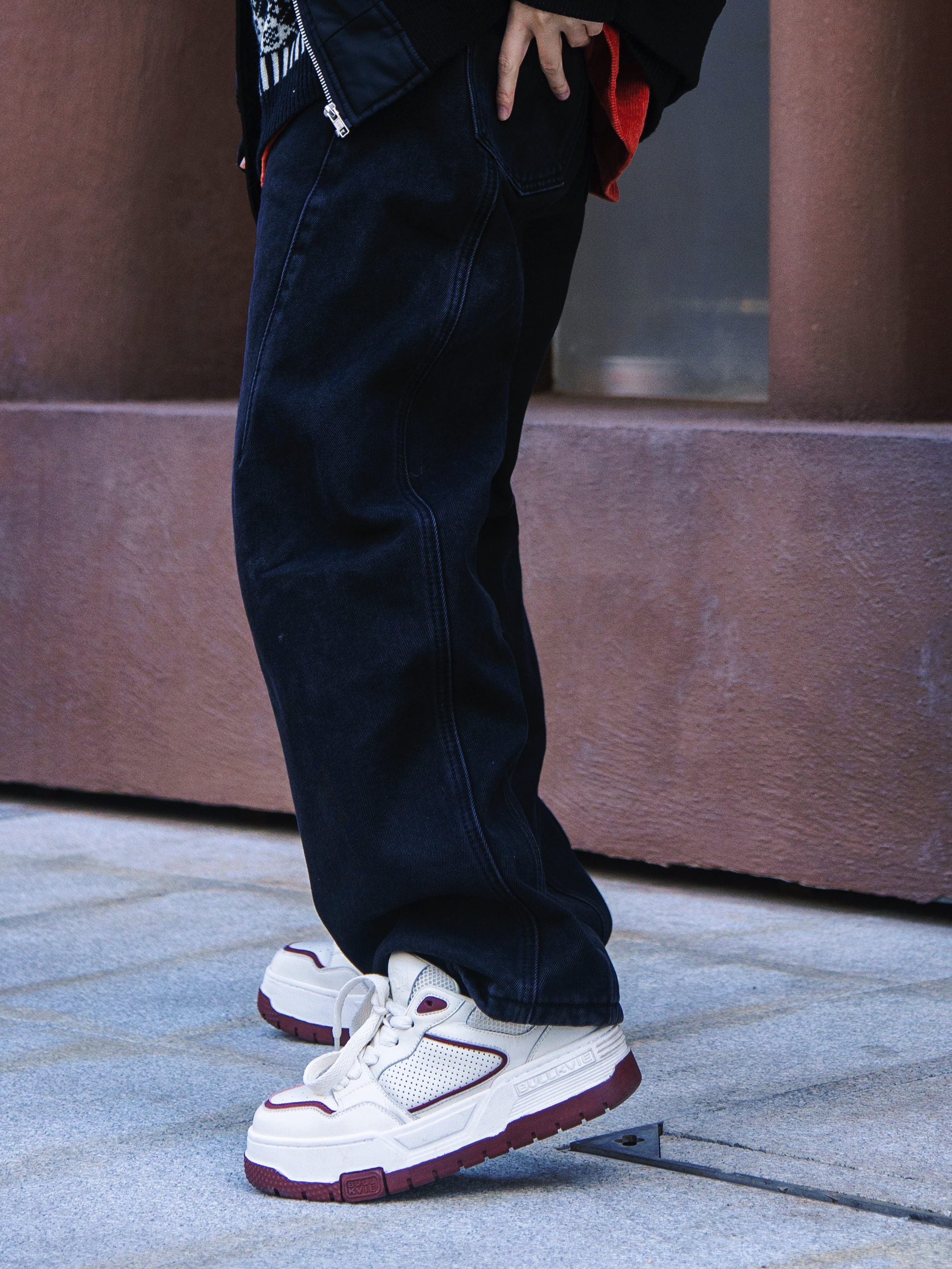 复古回潮 复古毛衣又🔥起来了 分享一套自带节日氛围的费尔岛穿搭 穿搭指南: 上身一件酒红色灯芯绒衬衫打底 套一件黑白提花圆领毛衣 软糯的暖感单品谁不爱 外搭一件棒球棉服外套 保暖又有型 下身配一条黑色弯刀牛仔裤 腰果花裤链点缀一下增加街头感 上脚一双公牛动感BULLKVIE板鞋 红白配色简约中带点复古感 面包鞋型 街头感十足 厚鞋底设计 脚感舒服又增高 过节氛围感穿搭拿捏~