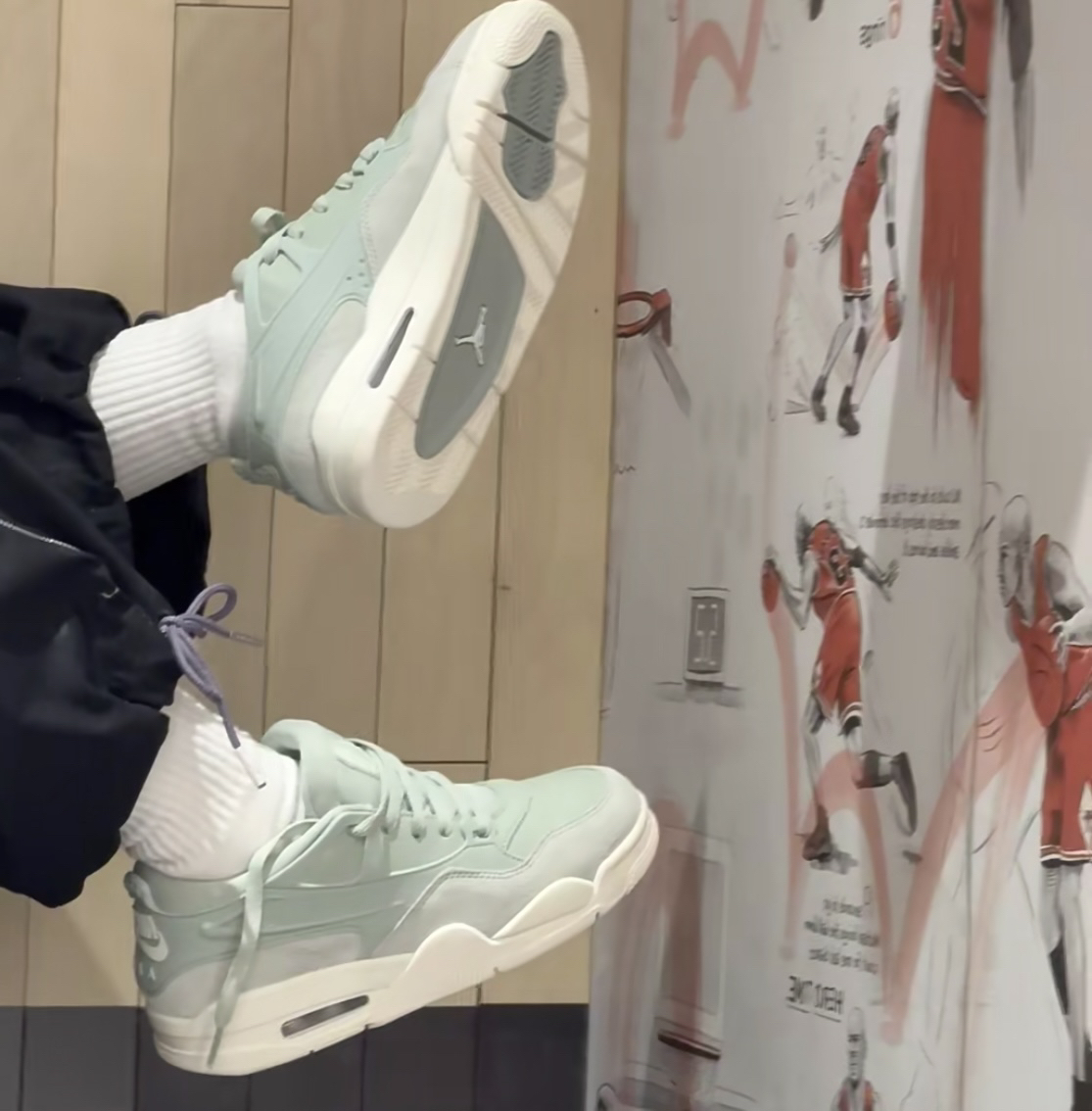 超级好看的一双aj特别是这个淡淡的绿色 上脚更是舒适百搭 少女心爆棚