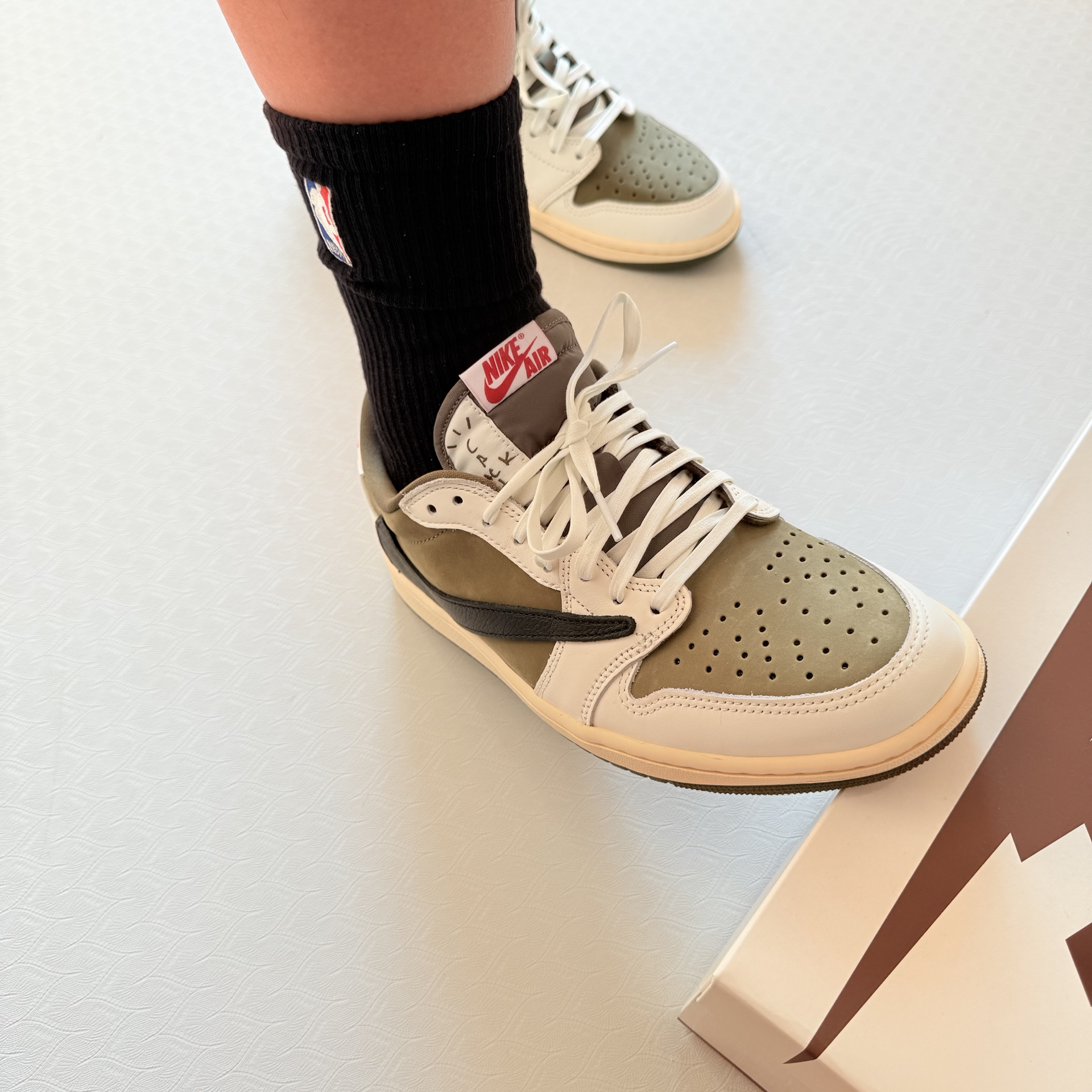 在2024年里,AJ1 Low 倒钩8.0成功成为年度“鞋王”,除了“倒钩”一贯的设计语言,橄榄绿的配色可谓是点睛之笔,再加上价格区间是真的友好,让这双这么美的AJ1“TS”8.0当之无愧的拿到冠军宝座。 AJ1 Low OG的鞋型从舒适度来说比高帮版本要舒服,从穿搭场景来说,低帮要更为丰富,这也应该是如此火爆的原因吧。 橄榄绿的颜色特别耐看,穿搭也是相当抢眼,后跟处刺绣的“鬼脸”logo和“...
