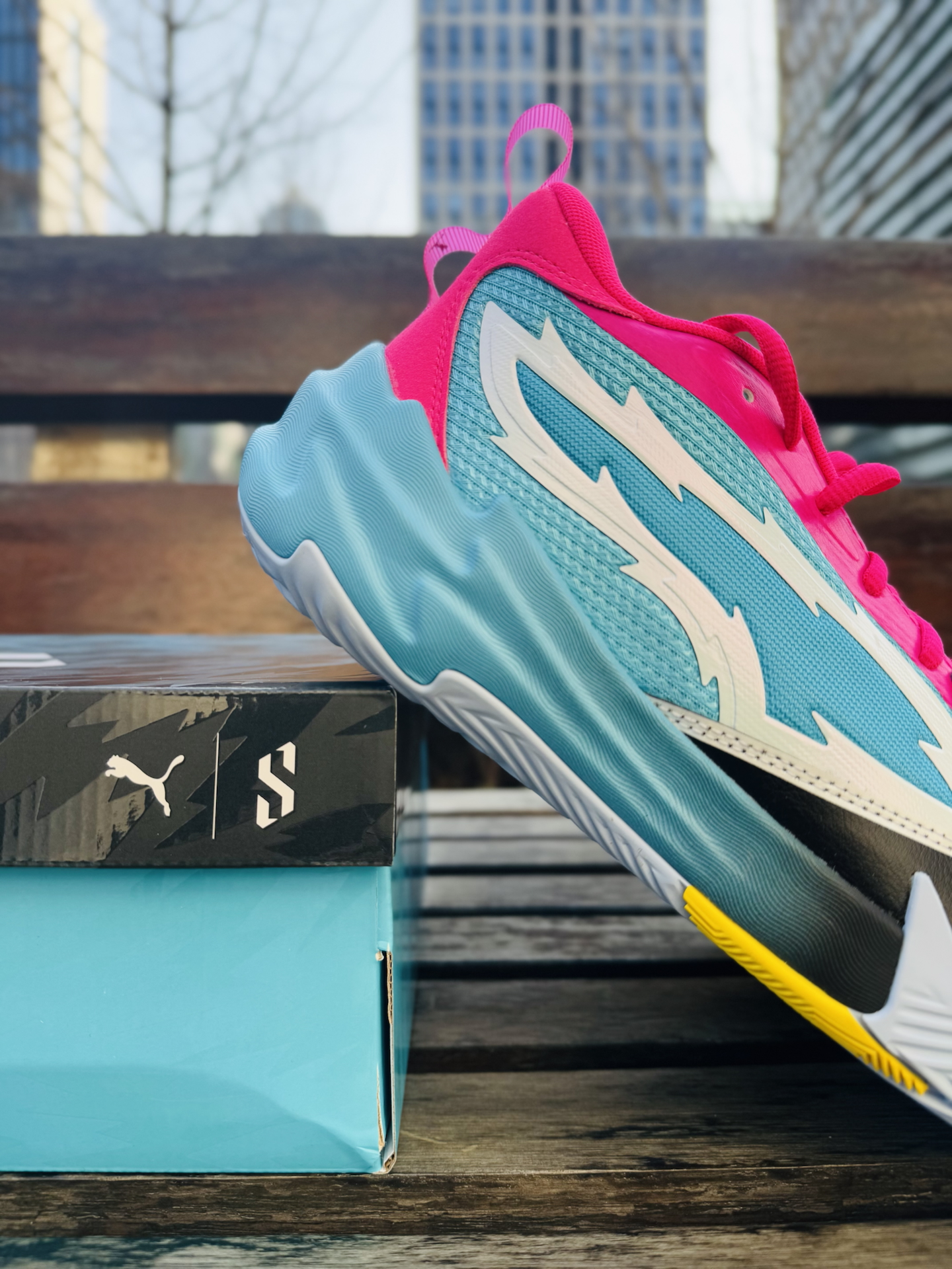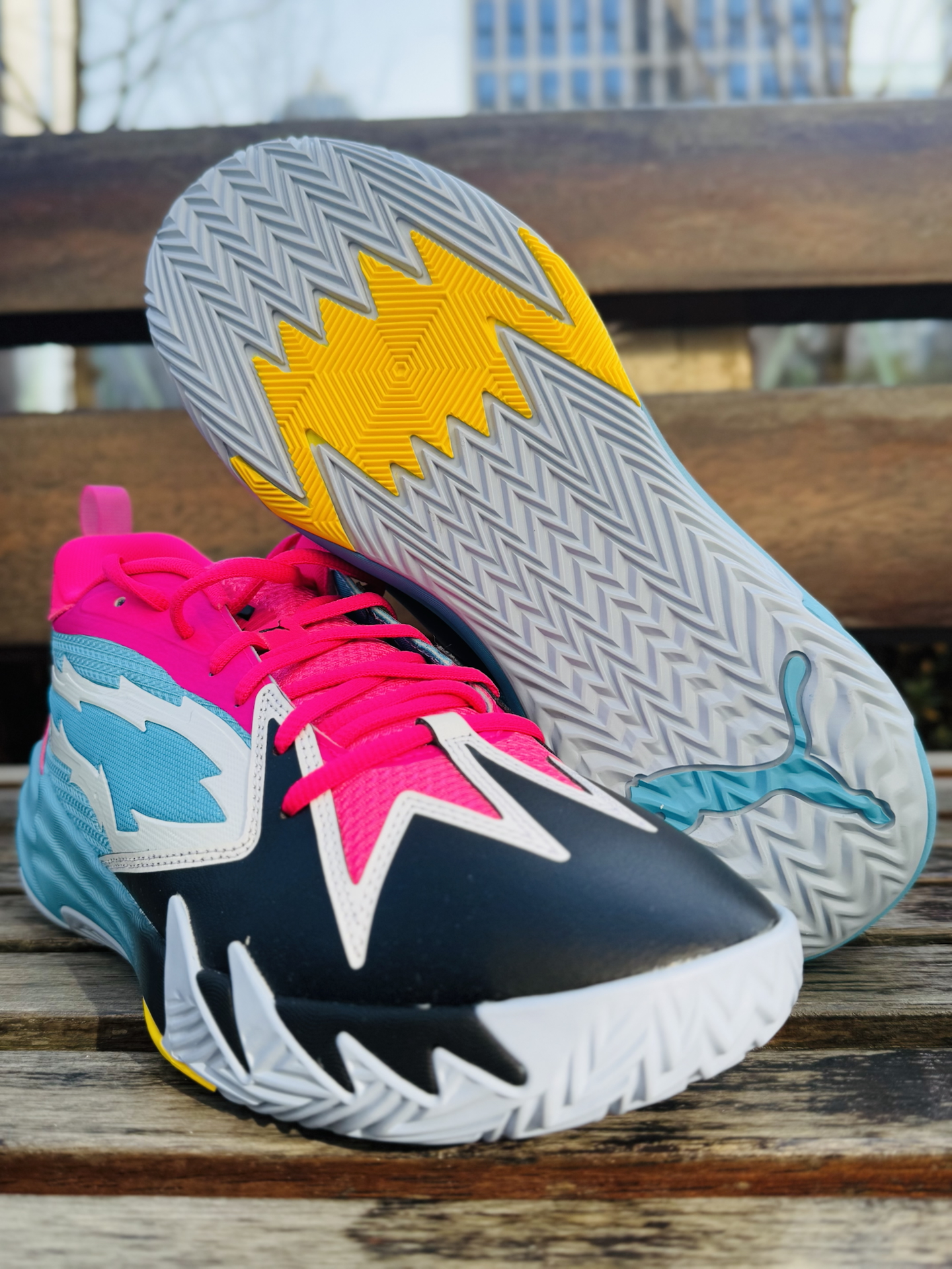 最近被空投包裹砸中 那就来说说这双puma scoot 1 zeros 实测感受 1️⃣包裹性方面 整体包裹紧实,由于鞋面鞋带以及鞋舌加持 鞋子整体包裹感很强 2️⃣鞋底脚感 鞋子整体重量不重,属于典型的后场球鞋 鞋底反馈还是比较直接,极停变相基本没问题 3️⃣整体感受 鞋子夸张的拼接颜色,场上你绝对是最亮眼的那个 由于鞋子包裹感较好,防侧翻能力还是不错的 喜欢的宝子们不妨可以试试。