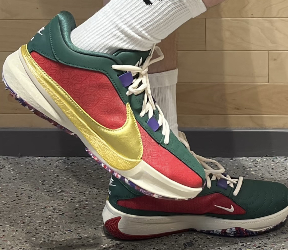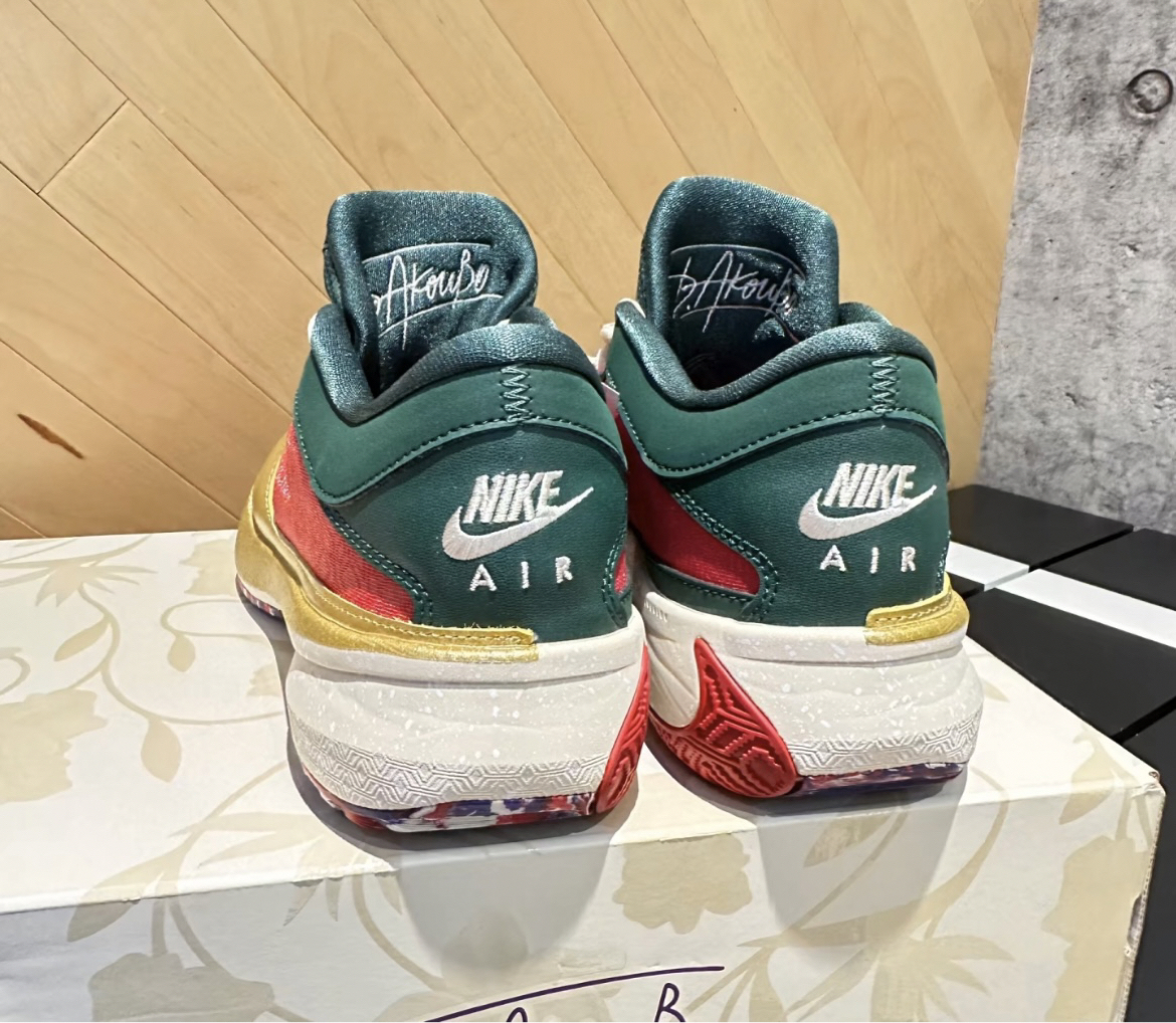 这双字母哥的这款红绿金的配色特别正,很吸睛! 版型这几也很板正,后边的力线正,穿起来不掉跟。 鞋面的强度够,实战起来没有异物感,性价比特别高!