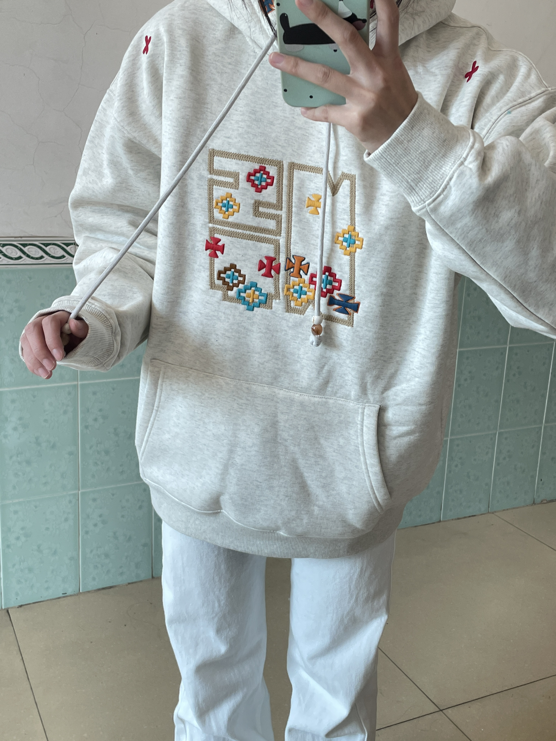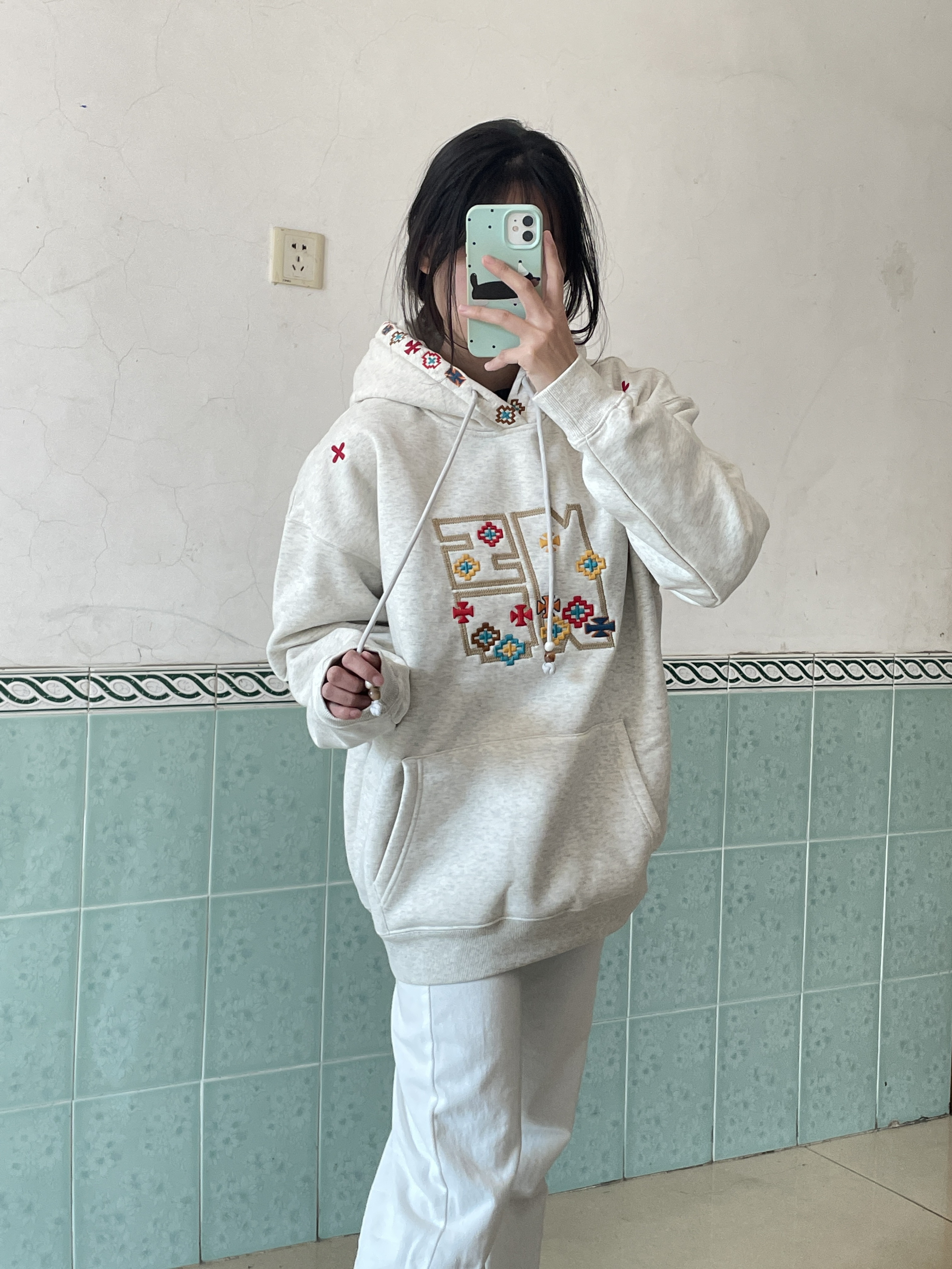 166 102穿的是M码 是加绒的哦 很厚实 而且真的做的好精致啊 都是刺绣的图案 喜欢的宝宝可以参考一下哦