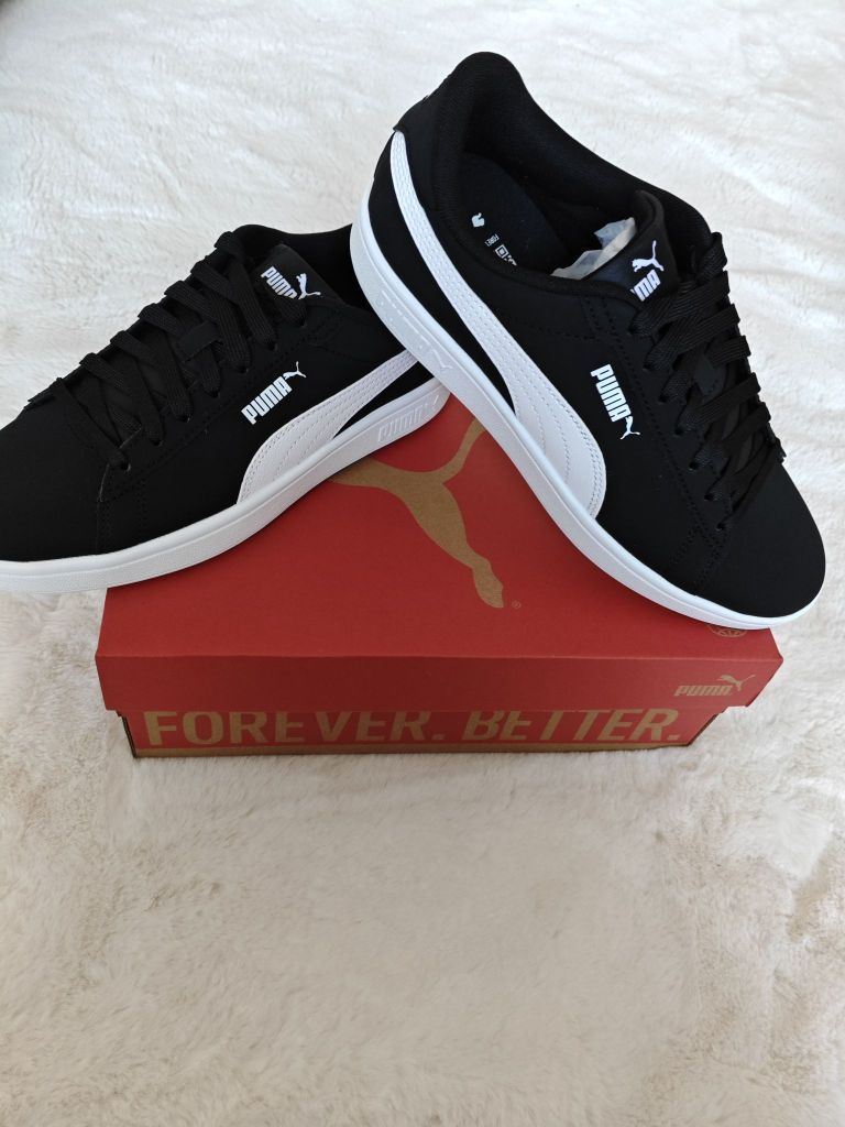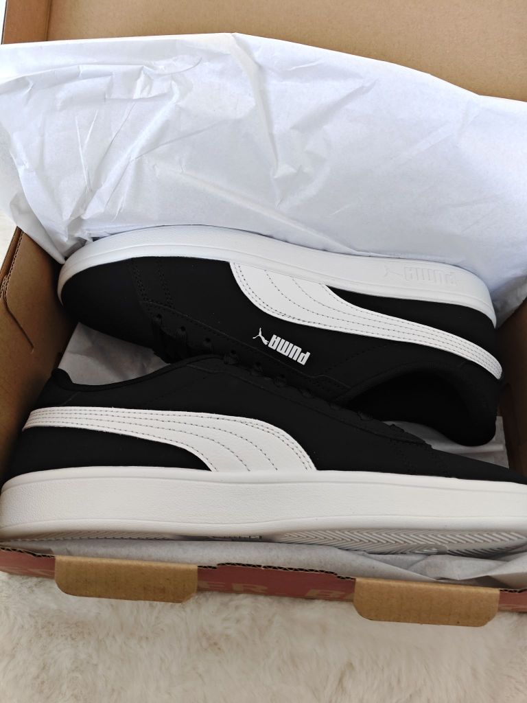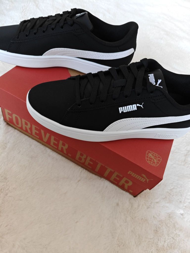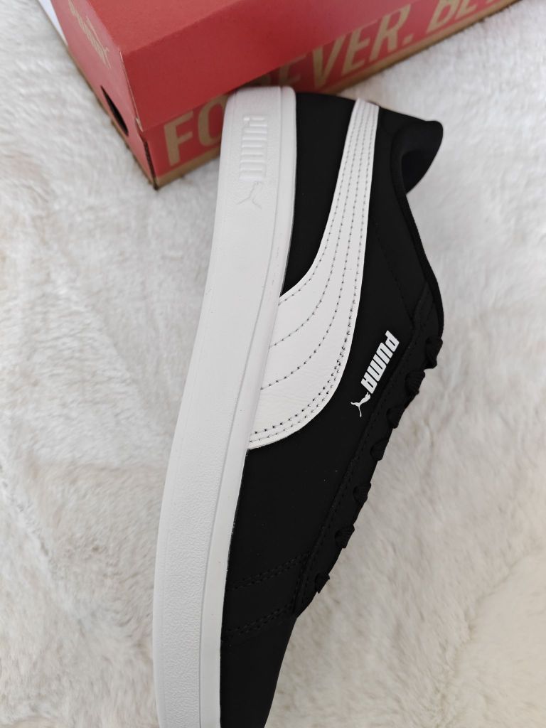 👟球鞋名称:PUMA Smash 3.0 Buck 舒适 防滑耐磨 低帮 板鞋 男女同款 黑色 🔍分享理由:鞋子版型很好看,黑白色搭衣服OK的~ 还有就是它耐磨。 🤔整体感受:这个鞋子有点硬,需要穿一段时间才能适应,还有就是它的皮面容易脏,需要经常擦。😖 还有就是偏大,喜欢的小伙伴在拍的时候建议拍小一码。 这个价位,买这双鞋很值,推荐推荐😜😜😜