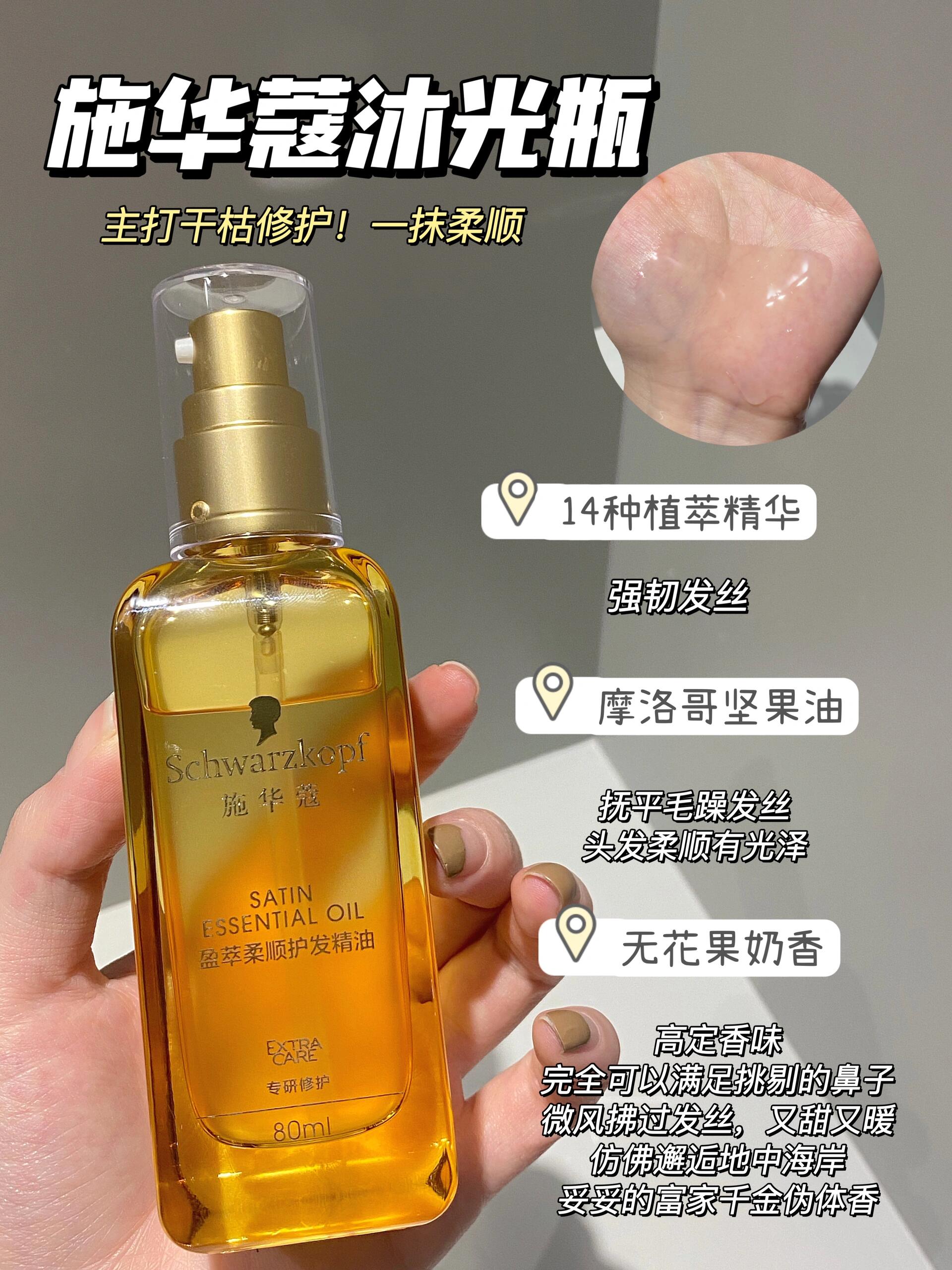 被我找到了甜剧女主初恋感的香味!!本人用过的最好闻的护发精油!关于护发精油我是非常挑剔的!首先味道好好闻其次要好用! 因为我天生头发毛躁再加上烫染发质更加受损了!分叉!打结统统找上门了!被安利了一款施华蔻家的护发精油!我一下子就爱上了!首先是被他的味道迷住的! 属于头发的香味莫过于他了! ☀️施华蔻沐光瓶 适合烫染受损干枯发质,主打修护!一抹柔顺说的就是它! 基本还原大牌香水的香调 前调又奶又欲的...