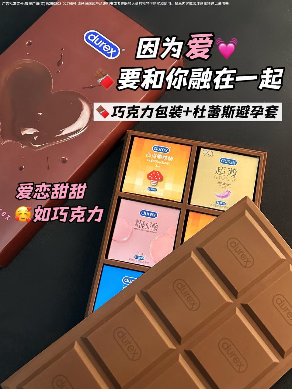💞 又是一个跨越时间升温感情的好时机~ 想要给直男对象送一款既实用走心🤓 还能把ta撩倒的心动礼物🙈 这个小心机 让杜蕾斯巧克力礼盒来满足🍫! - 🎁甜蜜的巧克力外表拿出来的那一刻仪式感已经拉满 等ta打开后 就会发现...居然是杜蕾斯家四款不同系列的套套~🥹 🤓直男对象一整个拿捏~ 🌟杜蕾斯魔法情趣系列-凸点螺纹装 🌟杜蕾斯玻尿酸系列-澎润小水库 🌟杜蕾斯超薄系列-超薄倍滑装 🌟杜蕾斯经典系列-...