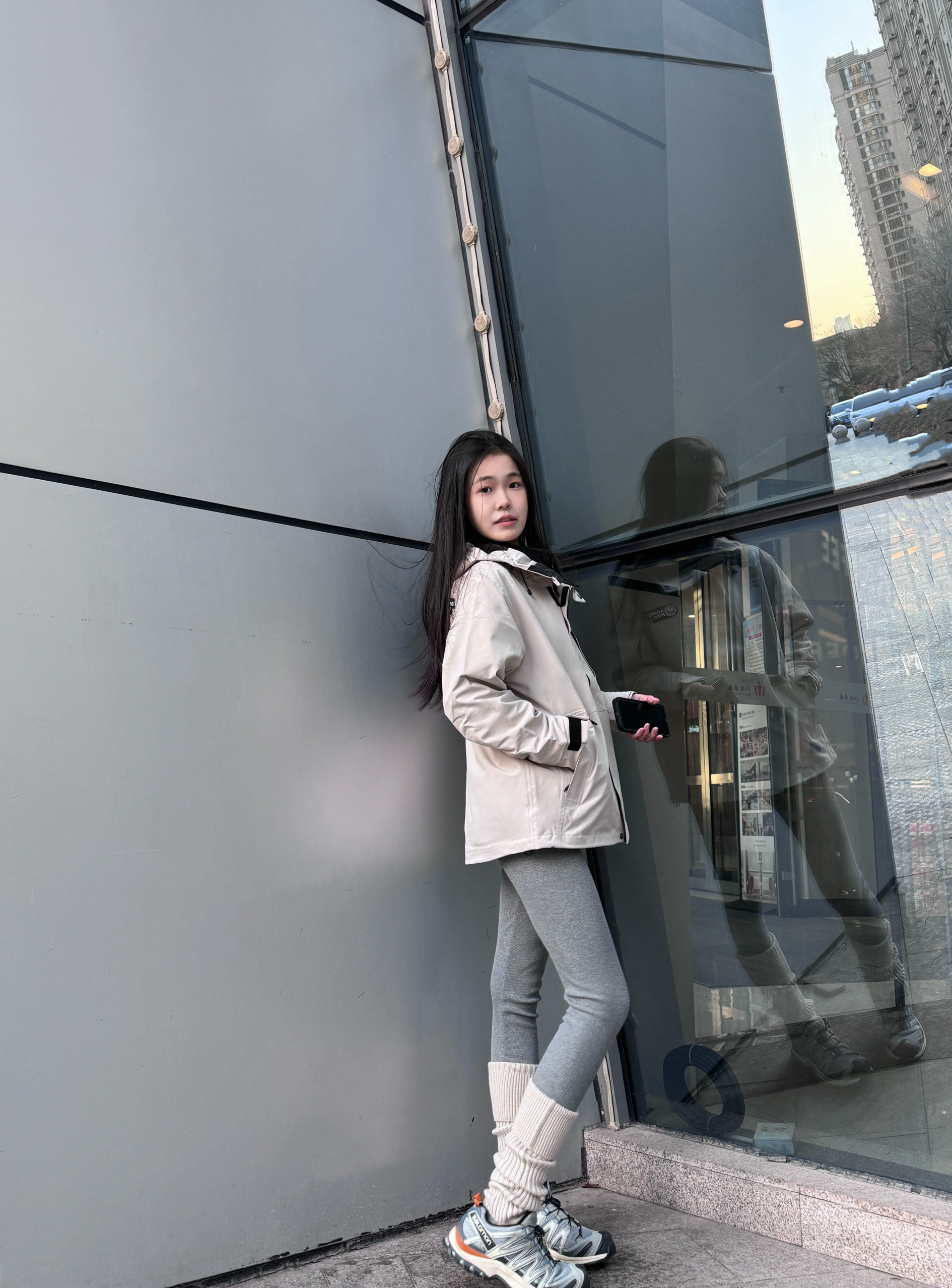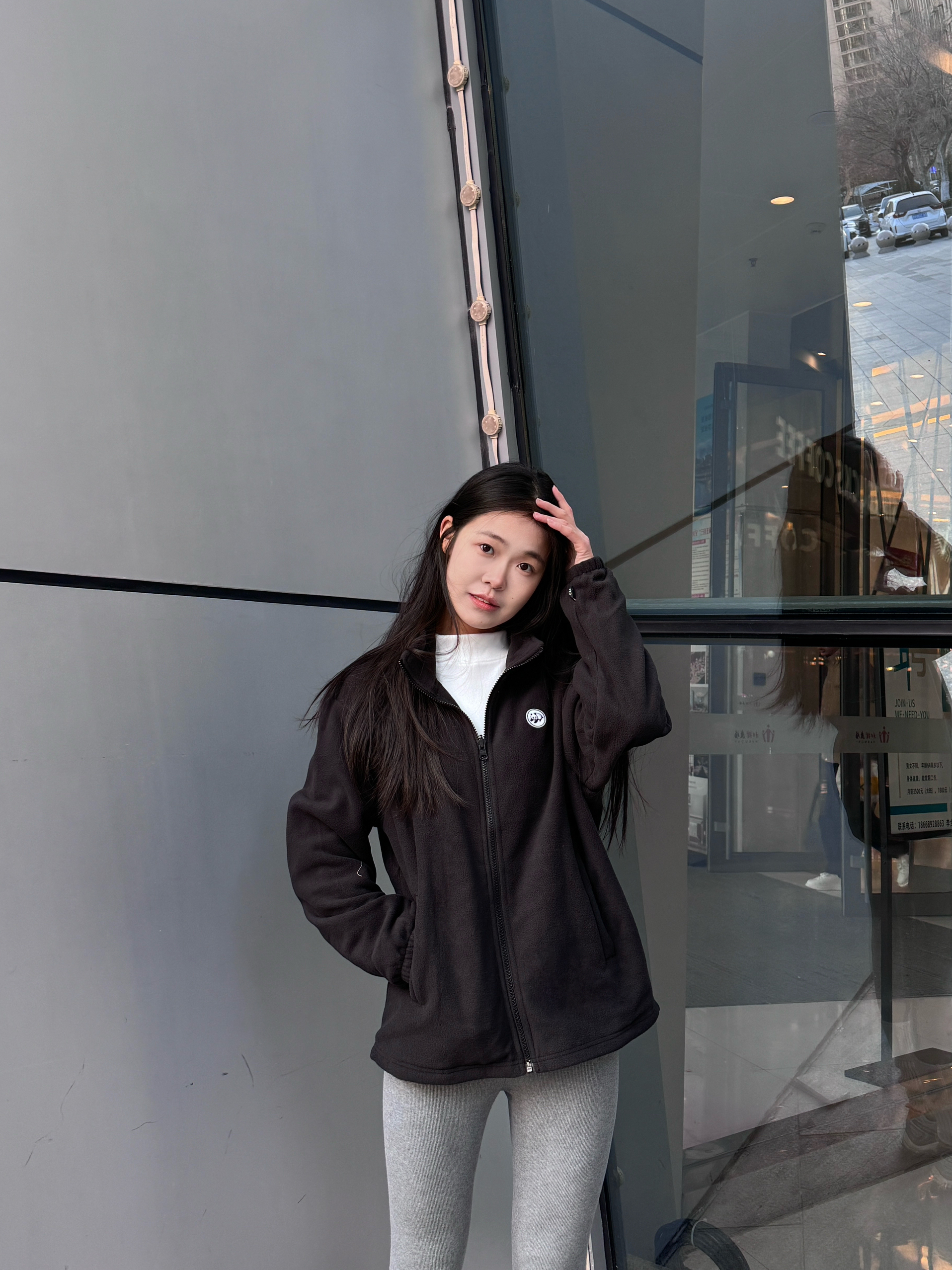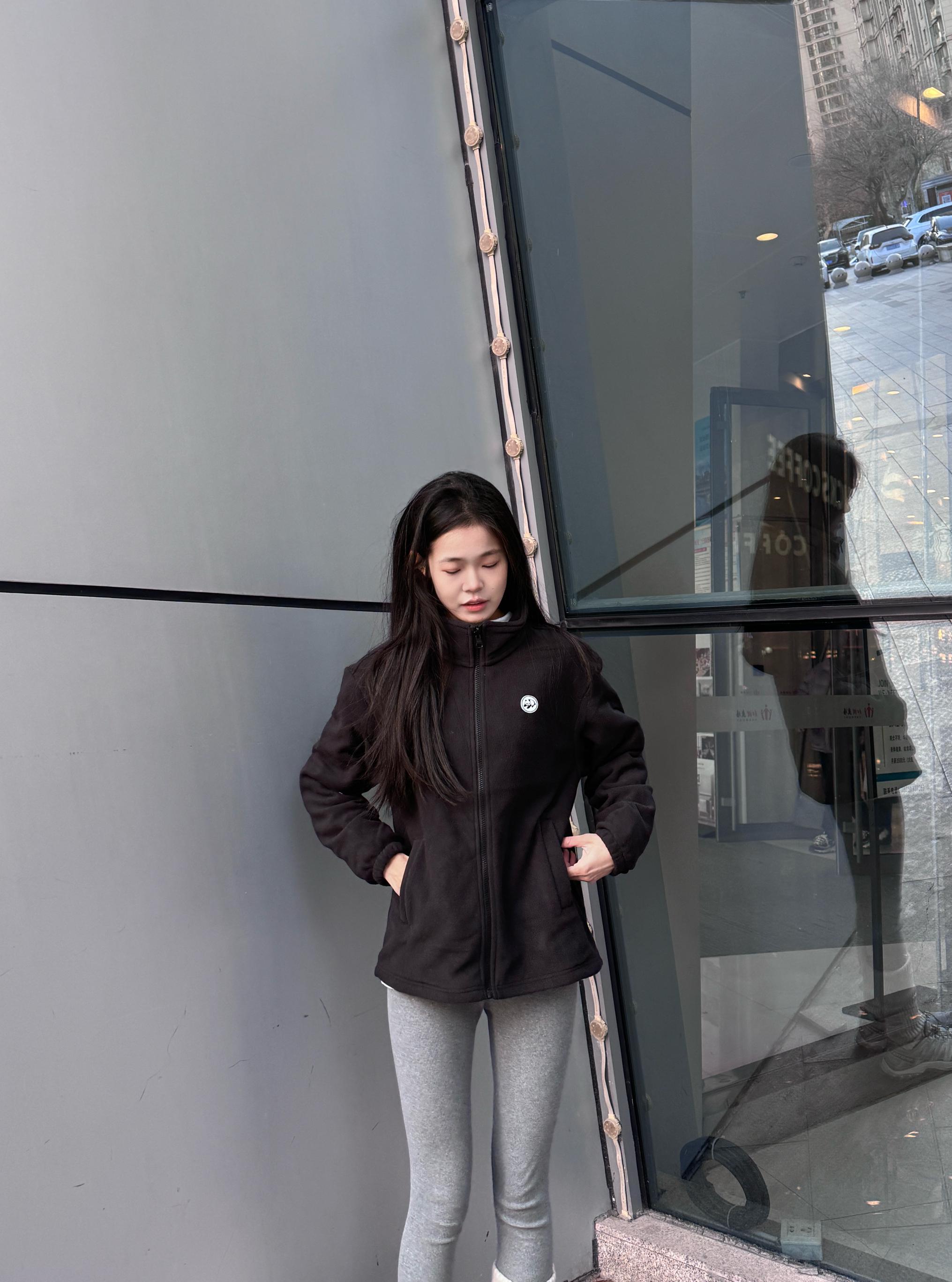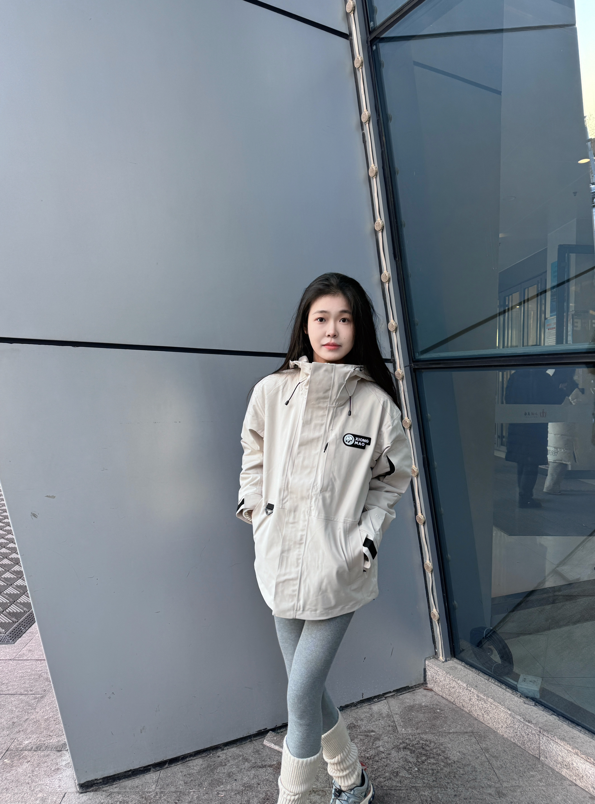 年轻人的第一件冲锋衣到手✌ 穿的是 熊猫 自在玩系列 胸前的🐻小熊标志简单可爱 三合一+三防材质户外穿刚刚好⛷️ - 户外防风保暖性是🉑以的 搭配了灰色瑜伽裤➕运动鞋👟 搭配起来蛮有感觉~ 背后的弧形下摆显瘦有点绝🤩! 抓绒内胆单穿也好看 属于一衣多穿啦✅~ 🧊尺码偏大 170 90上身 s码冰晶灰