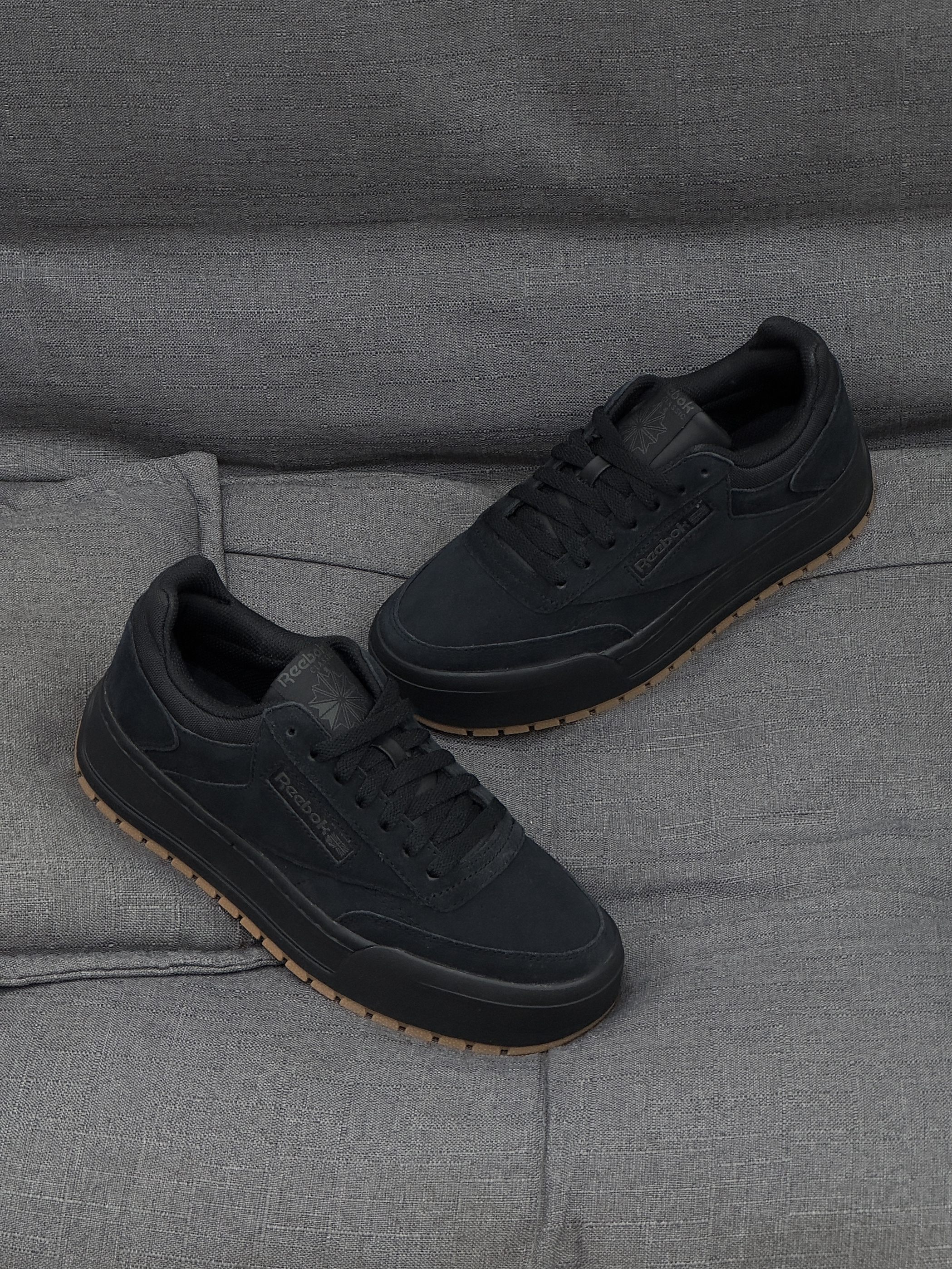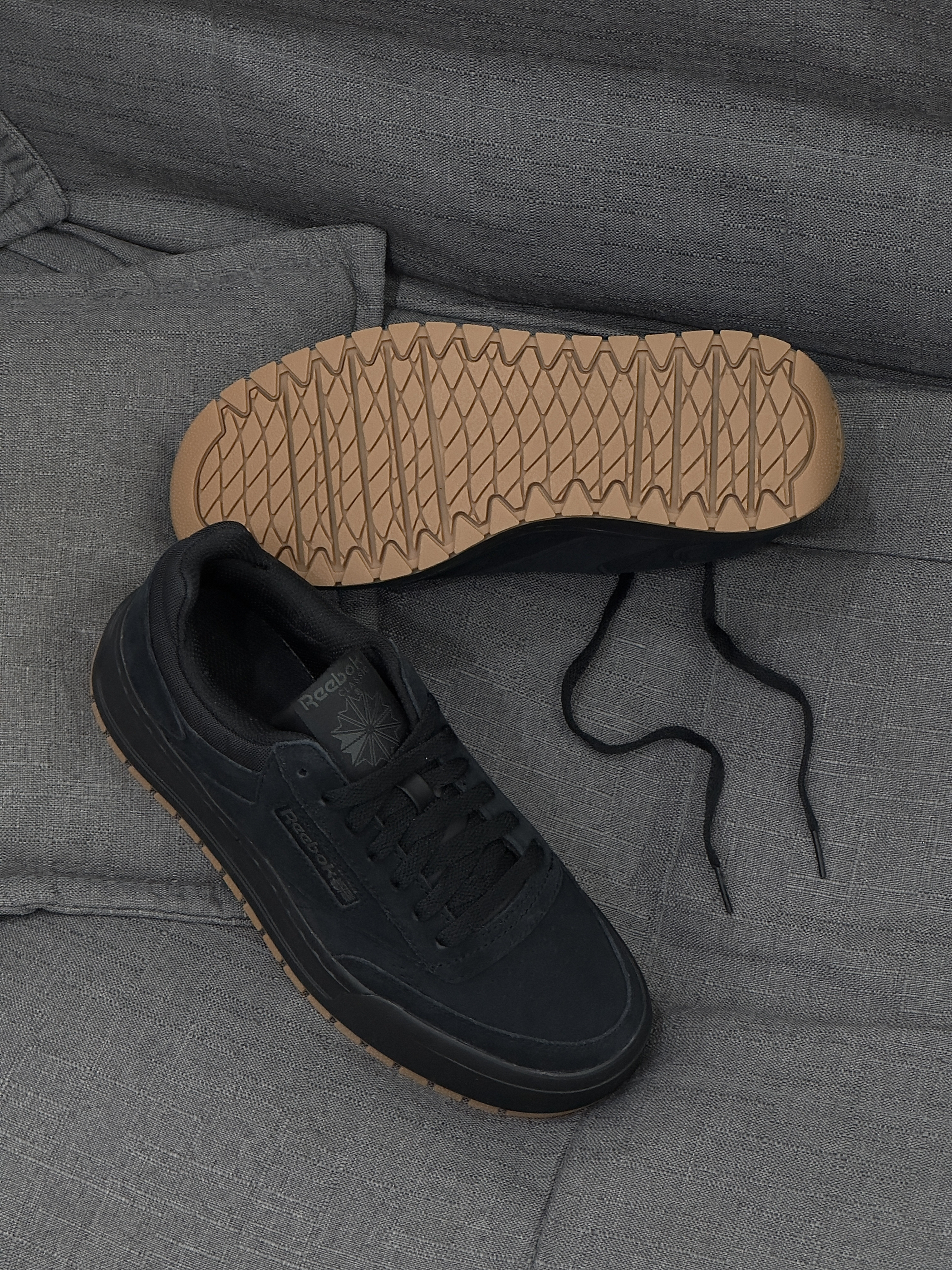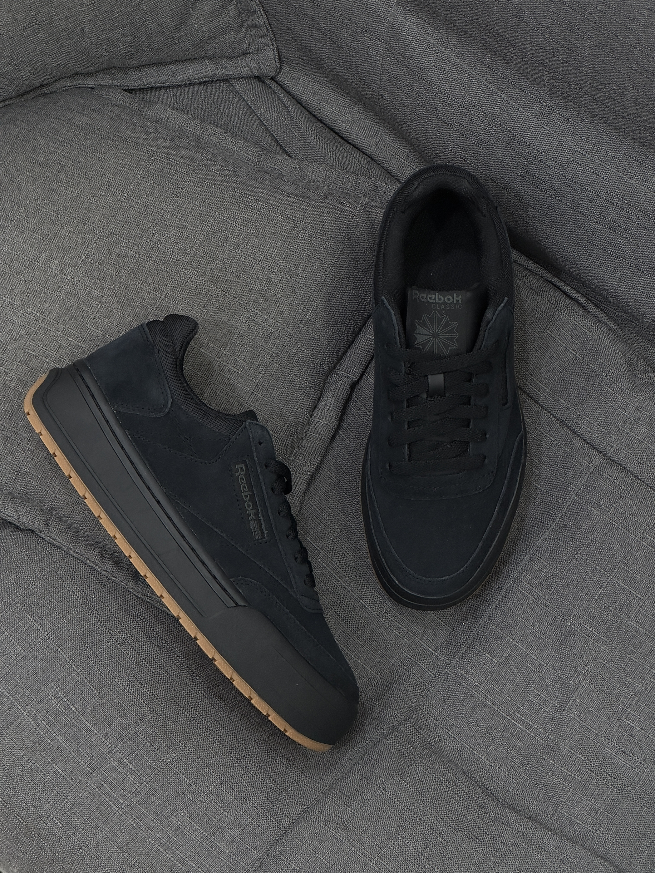 有和我一样喜欢黑色鞋子的嘛❓hello,这里是陈白羊🐑!今天给大家分享一款Reebok的复古板鞋 全黑色🖤的鞋面与咖啡棕胶底的组合, 在翻毛皮材质的衬托下,复古感一下子就上来了 像这样的暗黑系还是男女同款,搭情侣鞋也🉑 而它的中底则是由厚实的EVA发泡☁️构成 脚感柔软舒适 还有着4cm的增高效果 日常拿去搭牛仔裤👖、工装裤都没问题👌 又🆒又帅 很有vibe~