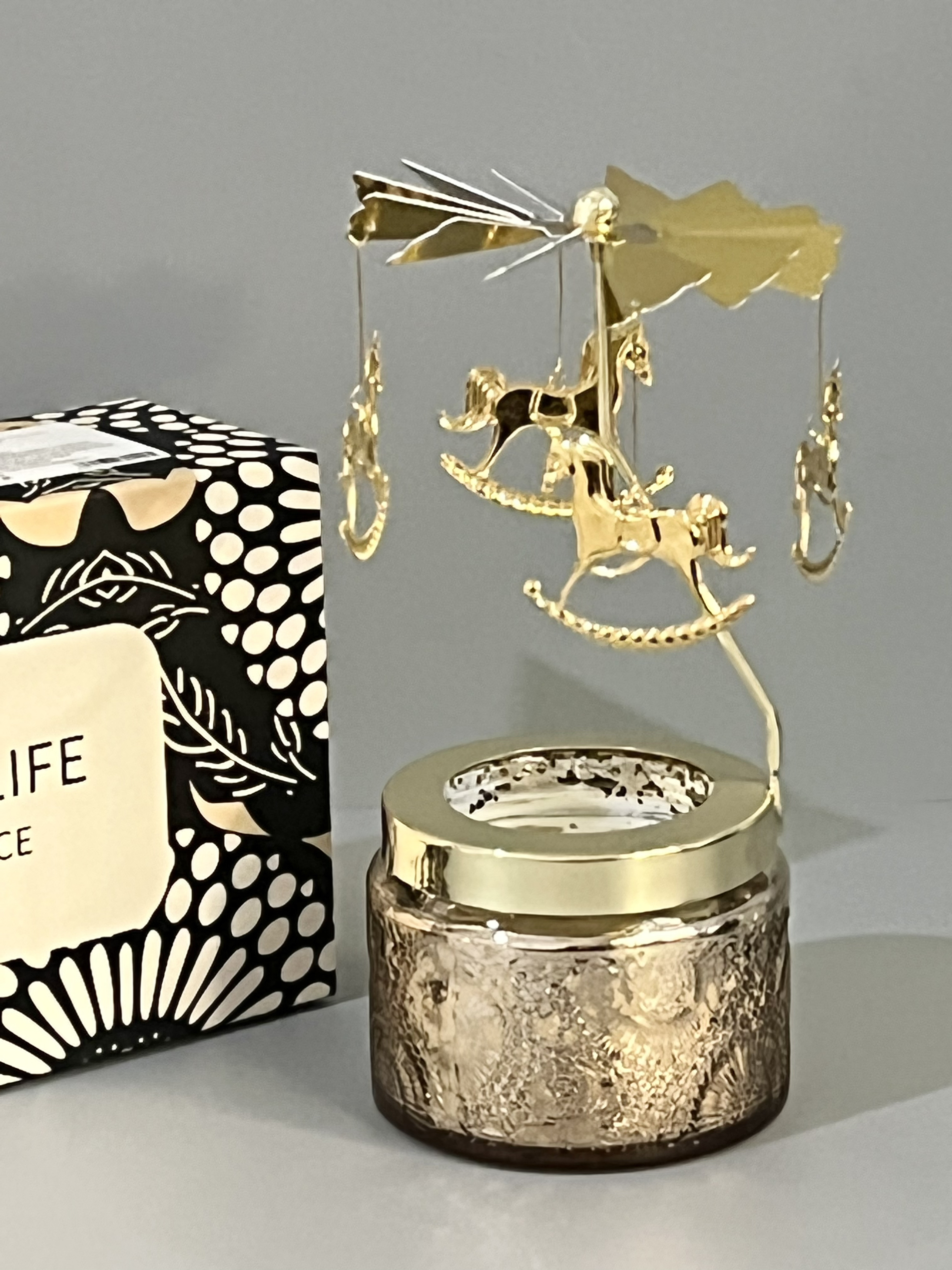 是西苔的浮雕旋转木马香薰耶! 点燃之后烛台会自己旋转 太梦幻啦 香薰是淡淡的茶香,清新自然 摆在桌上别提多治愈啦 女孩汁收到这样的礼物真滴会很开心耶