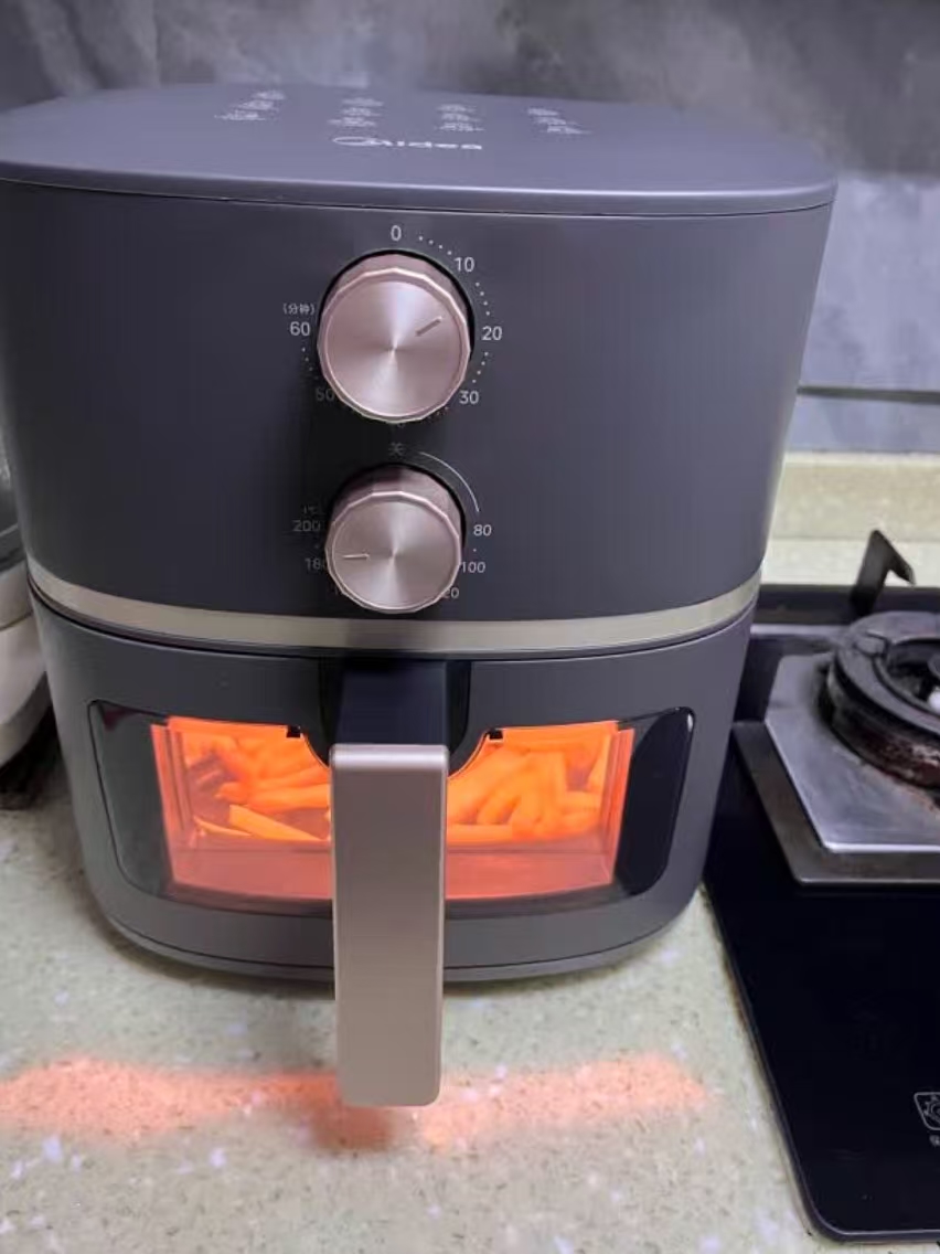 本篇笔记关联了Midea/美的 空气炸锅 5.3L 大容量 炸烤箱一体 精准控温 不沾 易洗 免翻面 嫩烤 可视 双旋钮 全金属 蒸汽嫩炸 腔体 深灰色等商品,为用户提供真实的使用体验和购买参考。