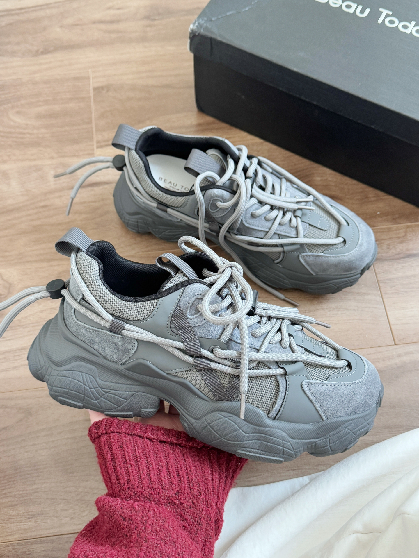 这双灰色系老爹鞋真的很喜欢 是Beau Today家的 增高了6.4cm呢 很适合我这种矮个子女生呀 上脚也很好看,显腿瘦呢 拜年穿这双很不错哟 ay鞋 则