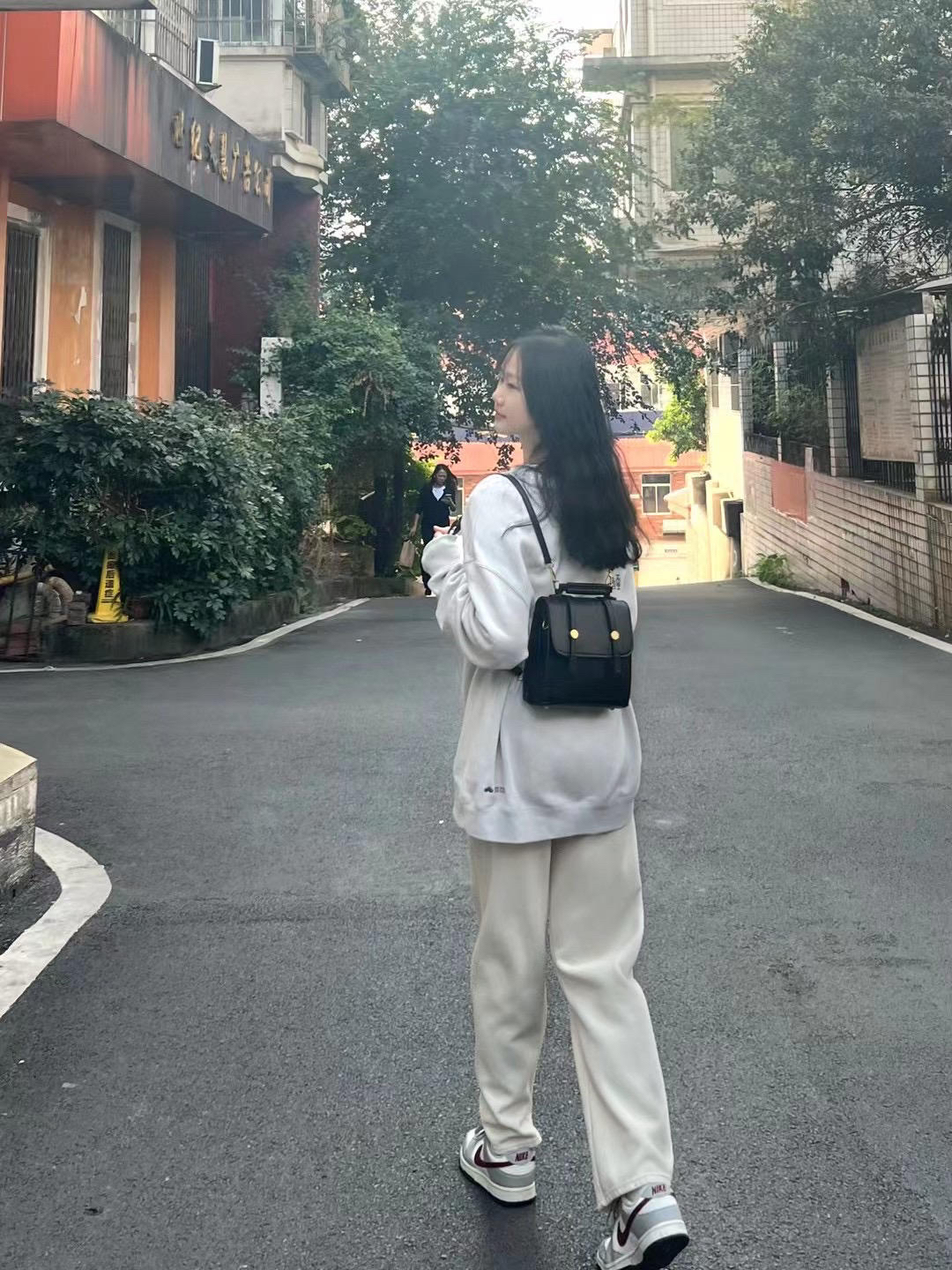 这一套太韩系啦 休闲又舒适呢 nike真的太好搭!!🛒好物名称:Nike Dunk Low Wolf Grey Rosewood 低帮 板鞋 女款 灰色andNike 兔年CNY系列 Sportswear 纯色字母Logo标识圆领套头长袖卫衣 灰色!!