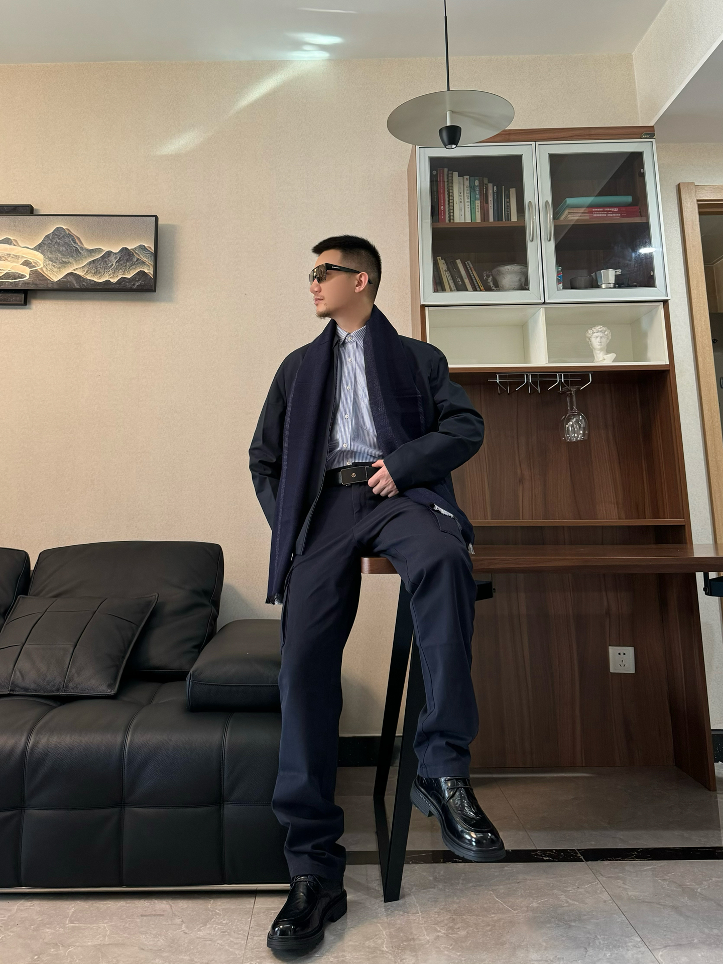 OOTD 新年送礼当然要选套盒呀! 上身 DLION 夹克外套 小翻领的设计 顶男即视感拉满 宽松的版型 内搭一件小衬衫 层次感一下子就来了~ 今天的搭子是 DLION 皮带和围巾哦 黑色的皮带很时尚 围巾毛绒绒的 撞色的设计 嘎嘎耐看 送人或者自留都很不错哦~ 下身搭配一条 DLION 机能风工装裤 裤型显高又显瘦 时尚百搭 帅气十足~ 再搭配一双小皮鞋 脚感柔软舒适 和今天这套很适配哦 帅...