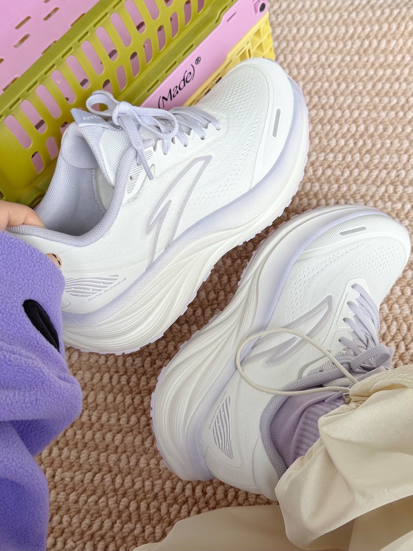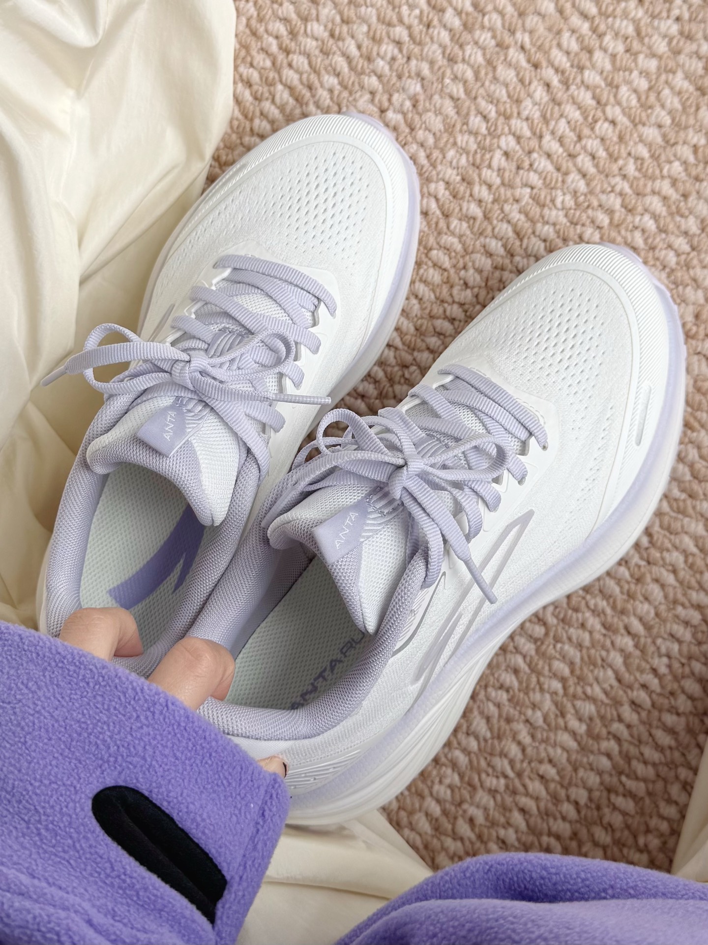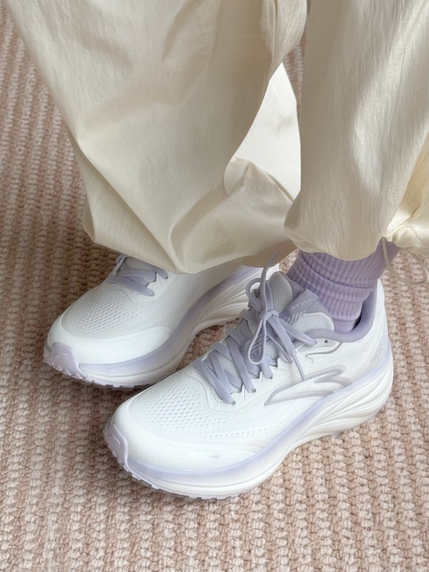 少女们一定懂这双!! 纸莎白配梦幻紫 好仙女好好看啊~ 大面积白色!搭配起来也很容易! 安踏徐风跑鞋自带缓震回弹 跑操、跳绳、体测统统都很行👍🏻 鞋 则
