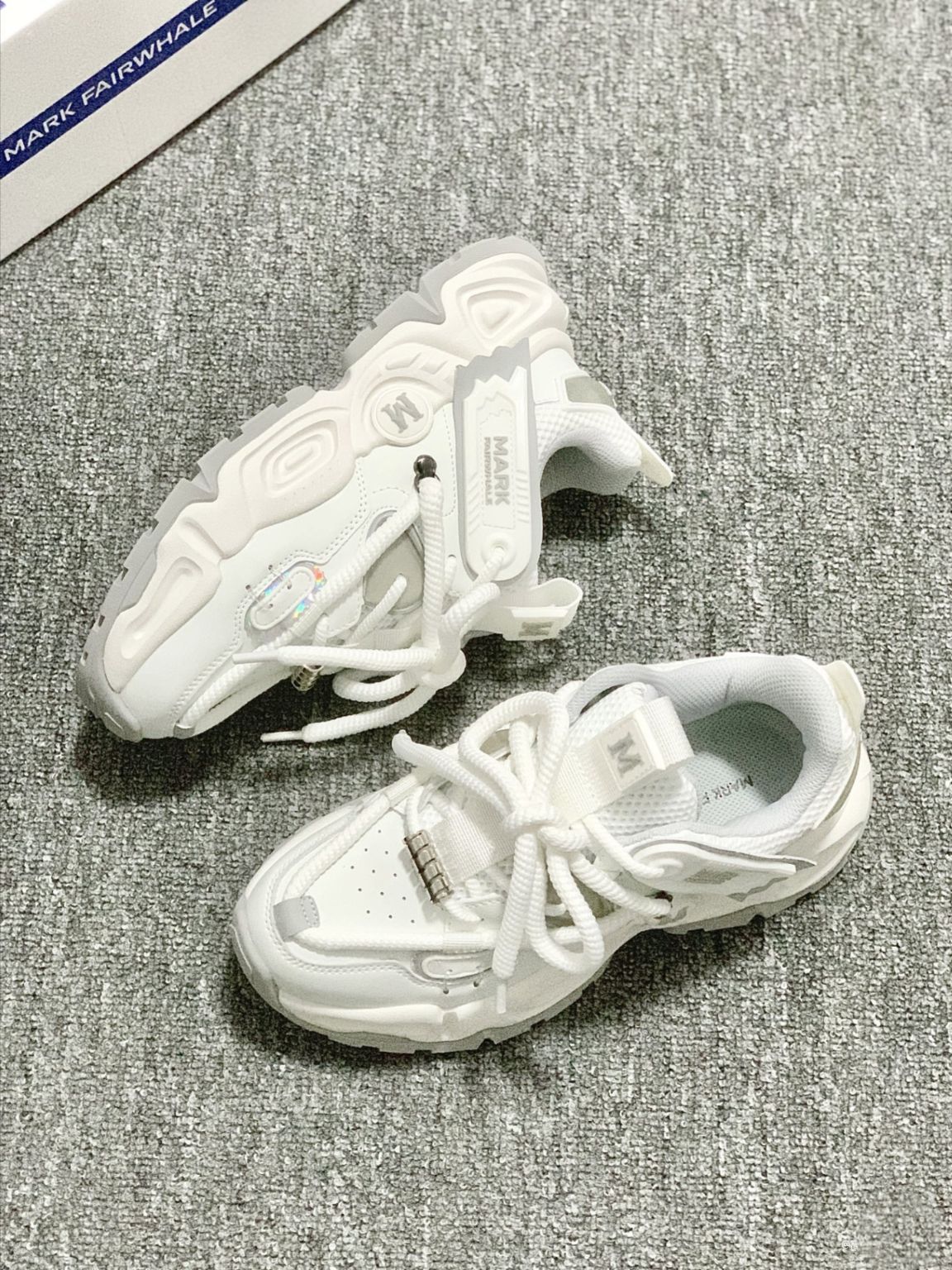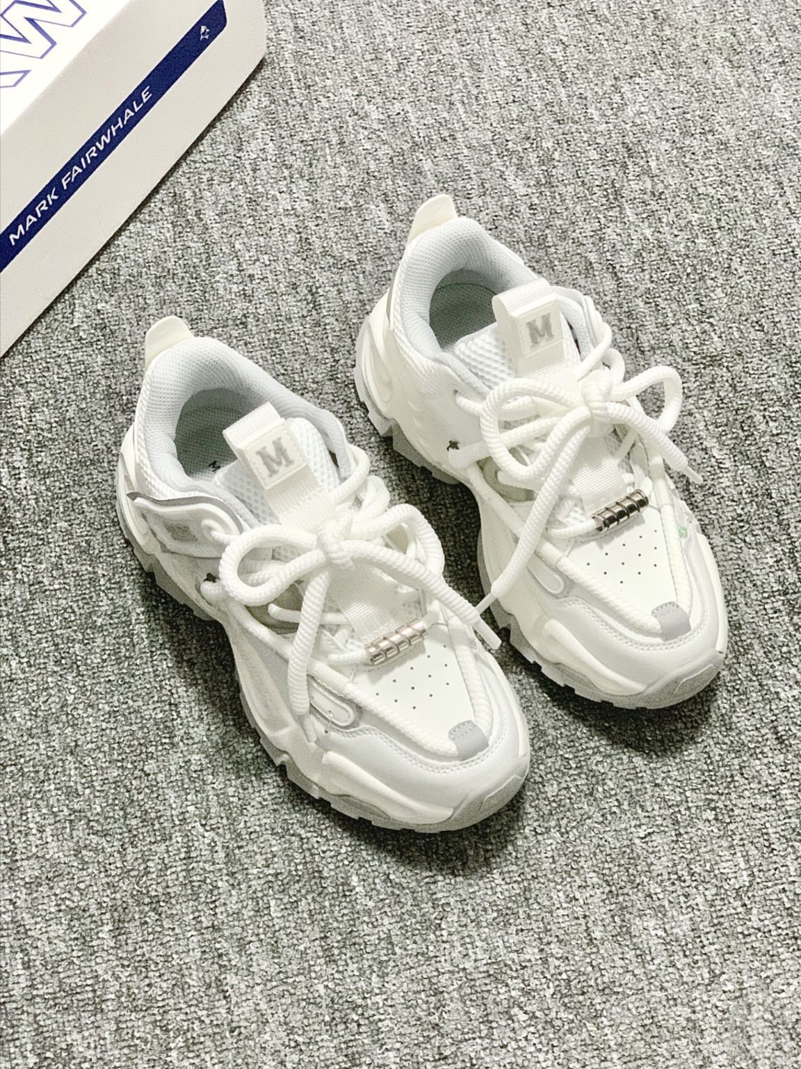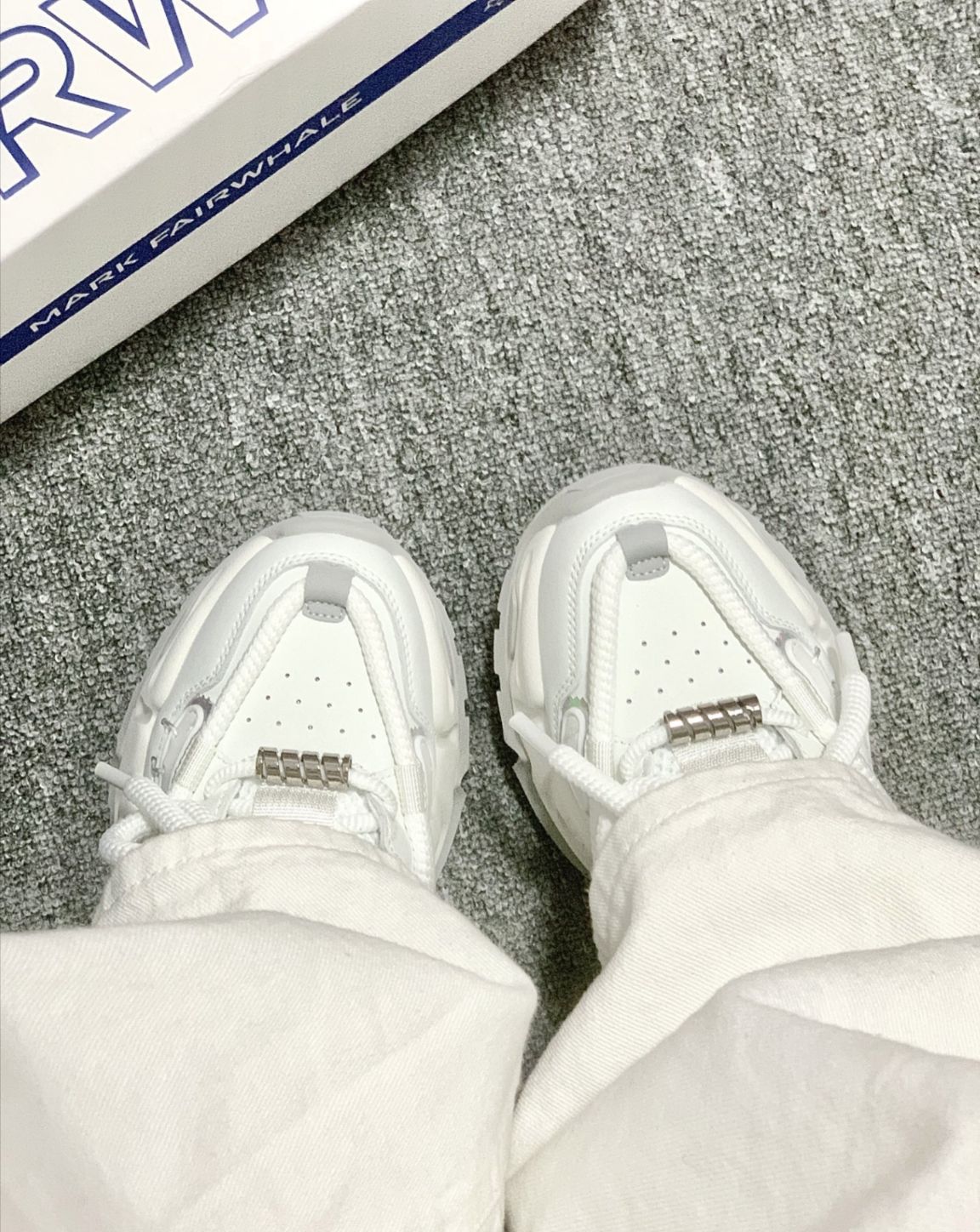 这双是马克华菲家的白色老爹鞋真的好好看鞋底还是自带增高的 拿到手就很有质感 整体也挺有设计感的尺码按平常尺寸即可搭运动裤牛仔裤都好看
