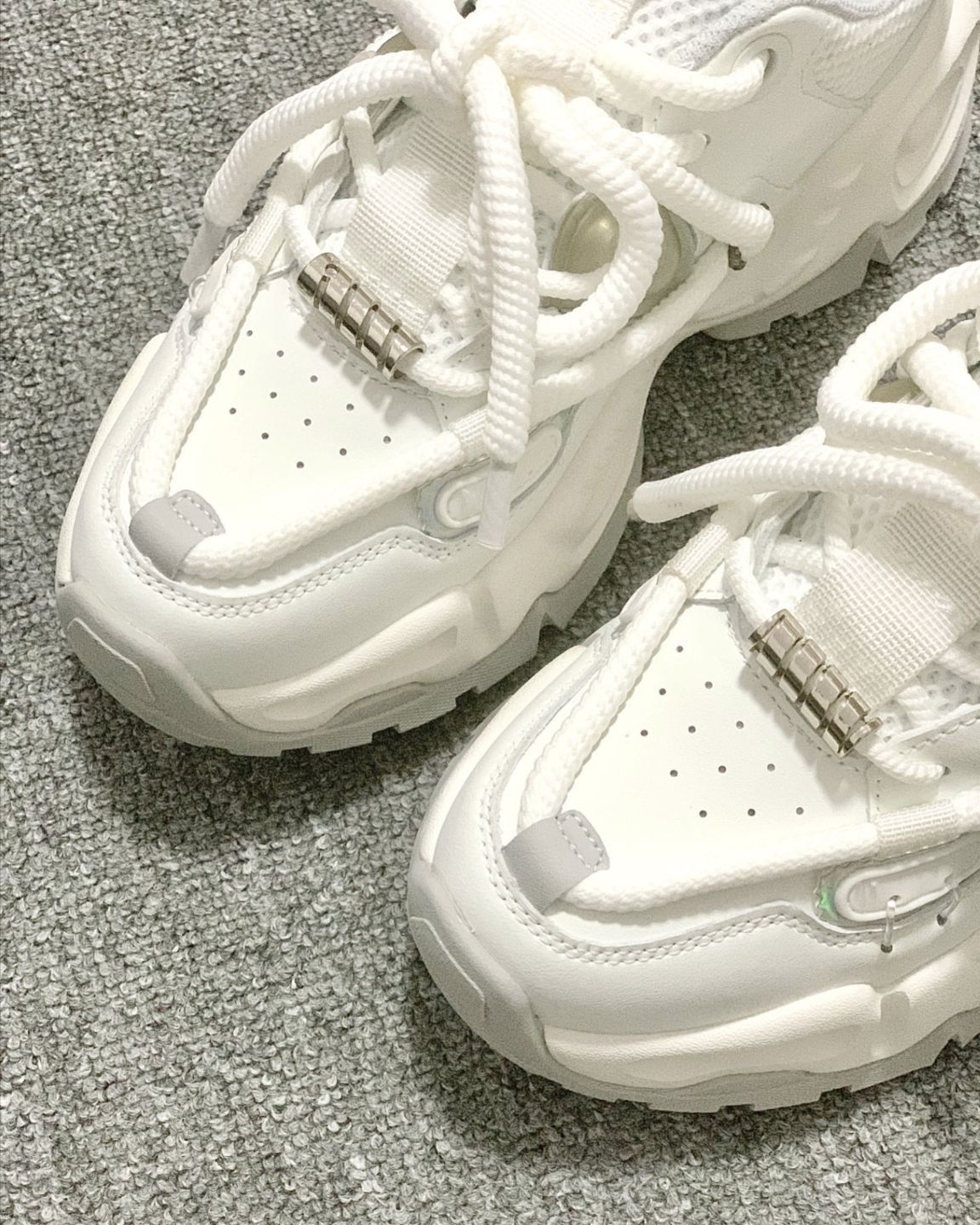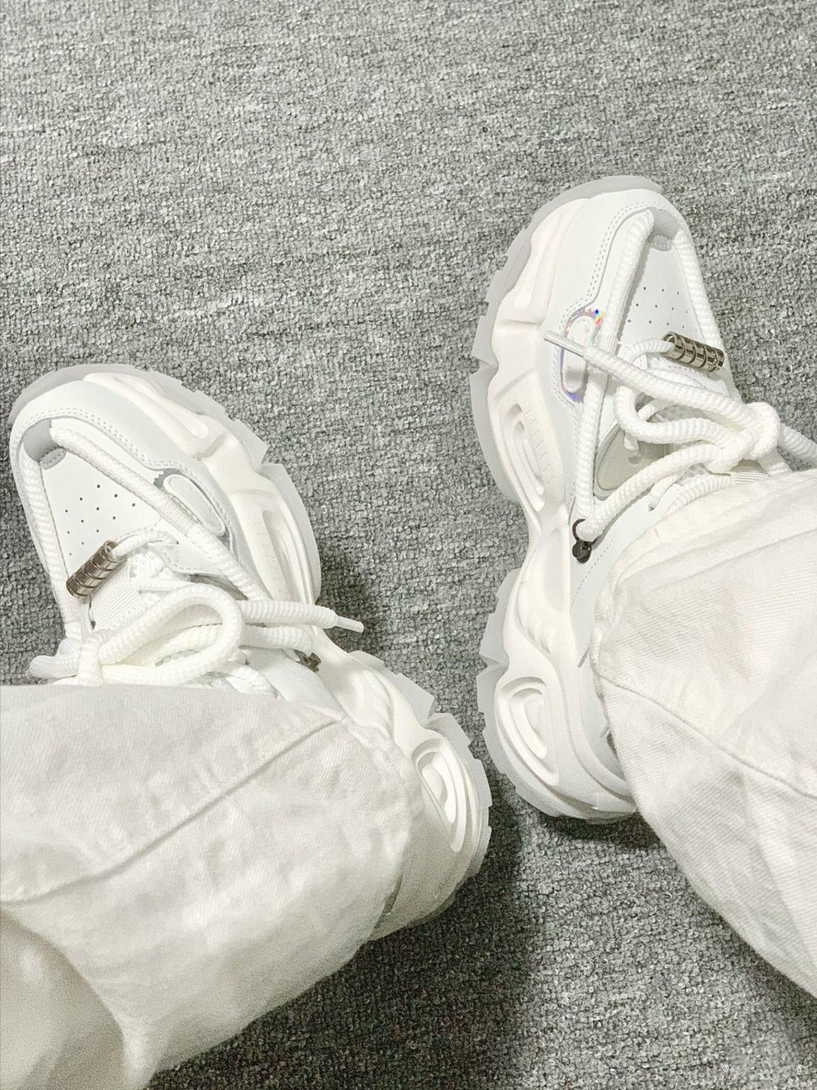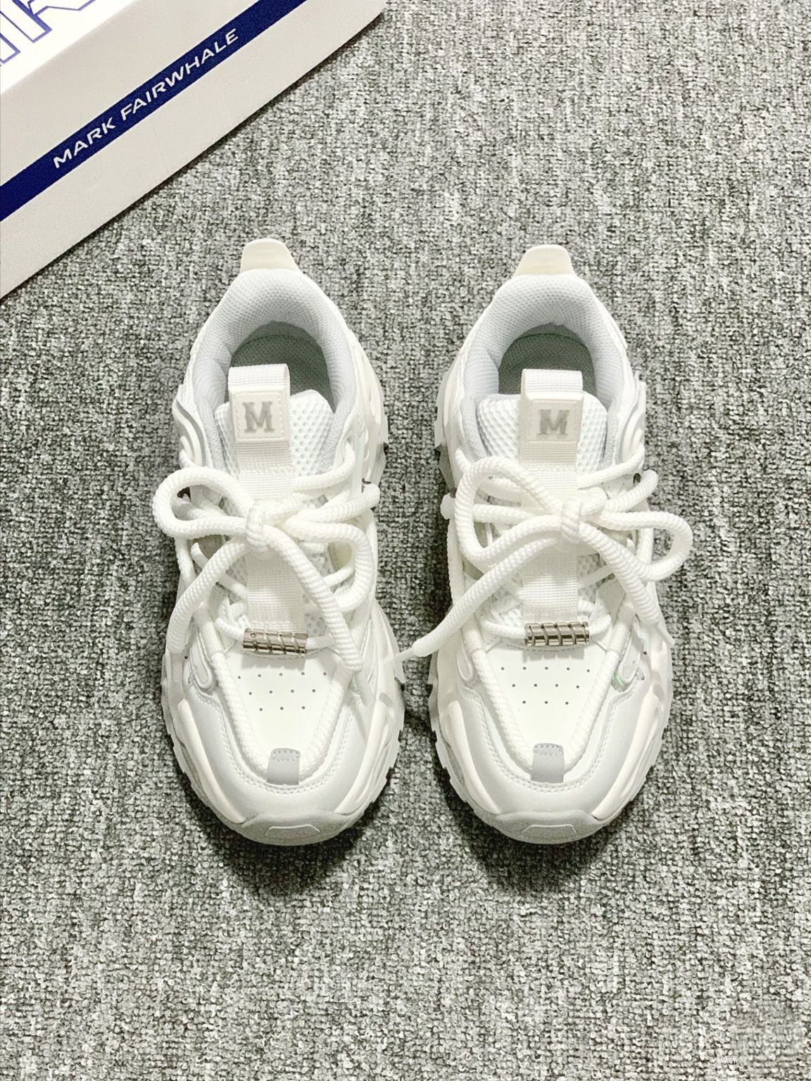 这双是马克华菲家的白色老爹鞋真的好好看鞋底还是自带增高的 拿到手就很有质感 整体也挺有设计感的尺码按平常尺寸即可搭运动裤牛仔裤都好看