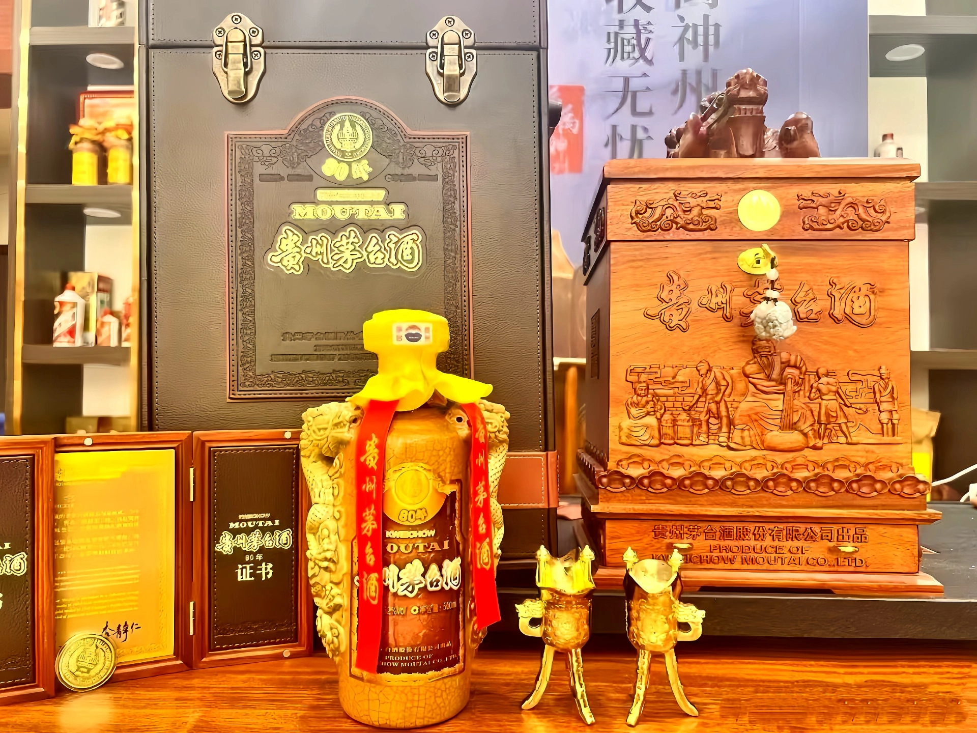 狗年茅台,酱香典范。其外观以星空灰为主色调,搭配金色纹路瓶盖与篆体“狗”字浮雕,尽显高贵典雅。瓶身背标上的中华田园犬国画,寓意“义犬守福,黄耳传祥”,传递着忠诚与守护的美好愿望。口感上,狗年茅台醇厚柔和,带有丝丝甘甜与浓郁酱香,回味悠长。作为茅台集团生肖酒系列的佳作,狗年茅台不仅承载着深厚的文化底蕴,更彰显了品牌的卓越品质与艺术追求。每一滴佳酿,都是时间的馈赠,值得细细品味与珍藏。