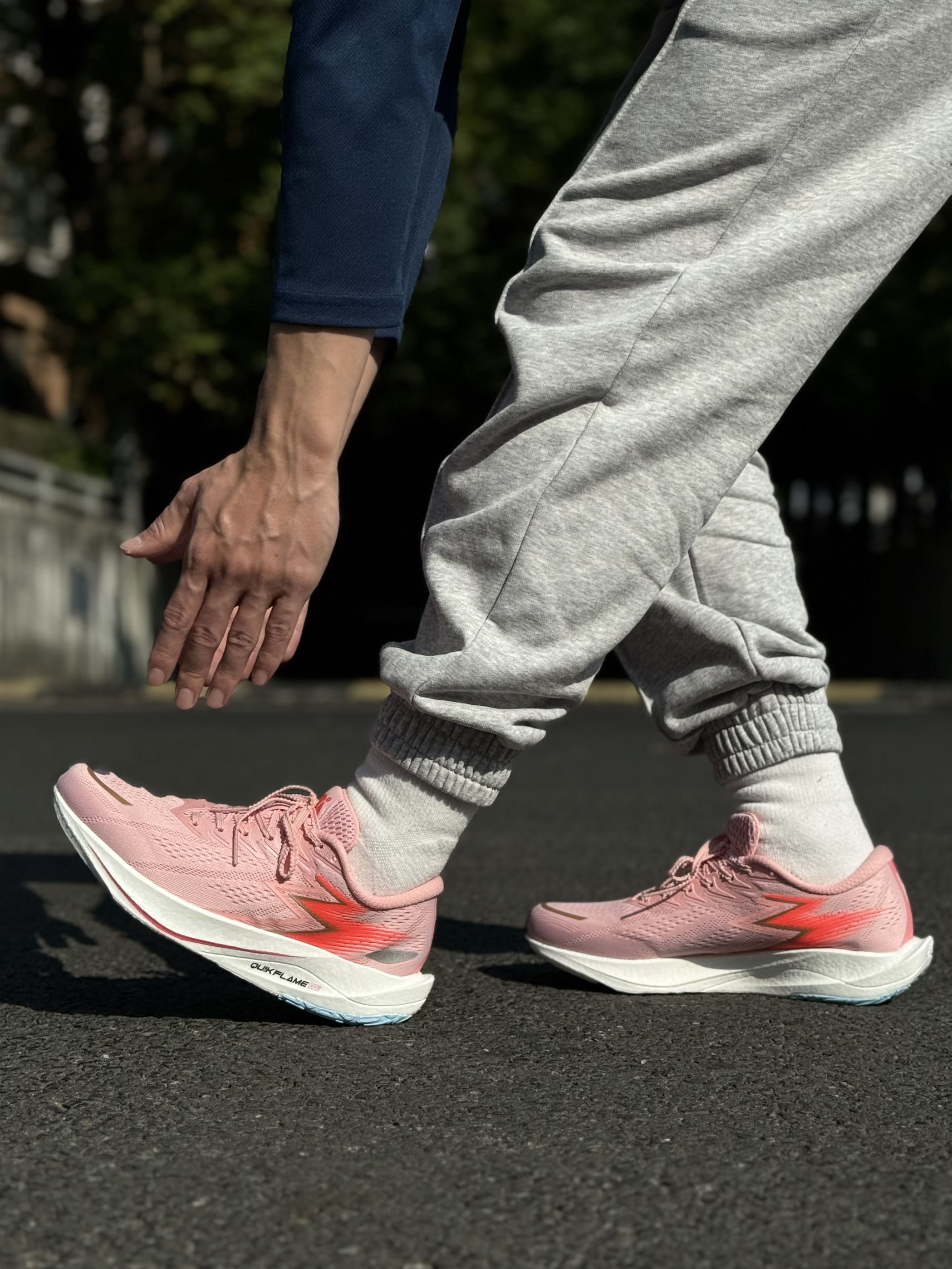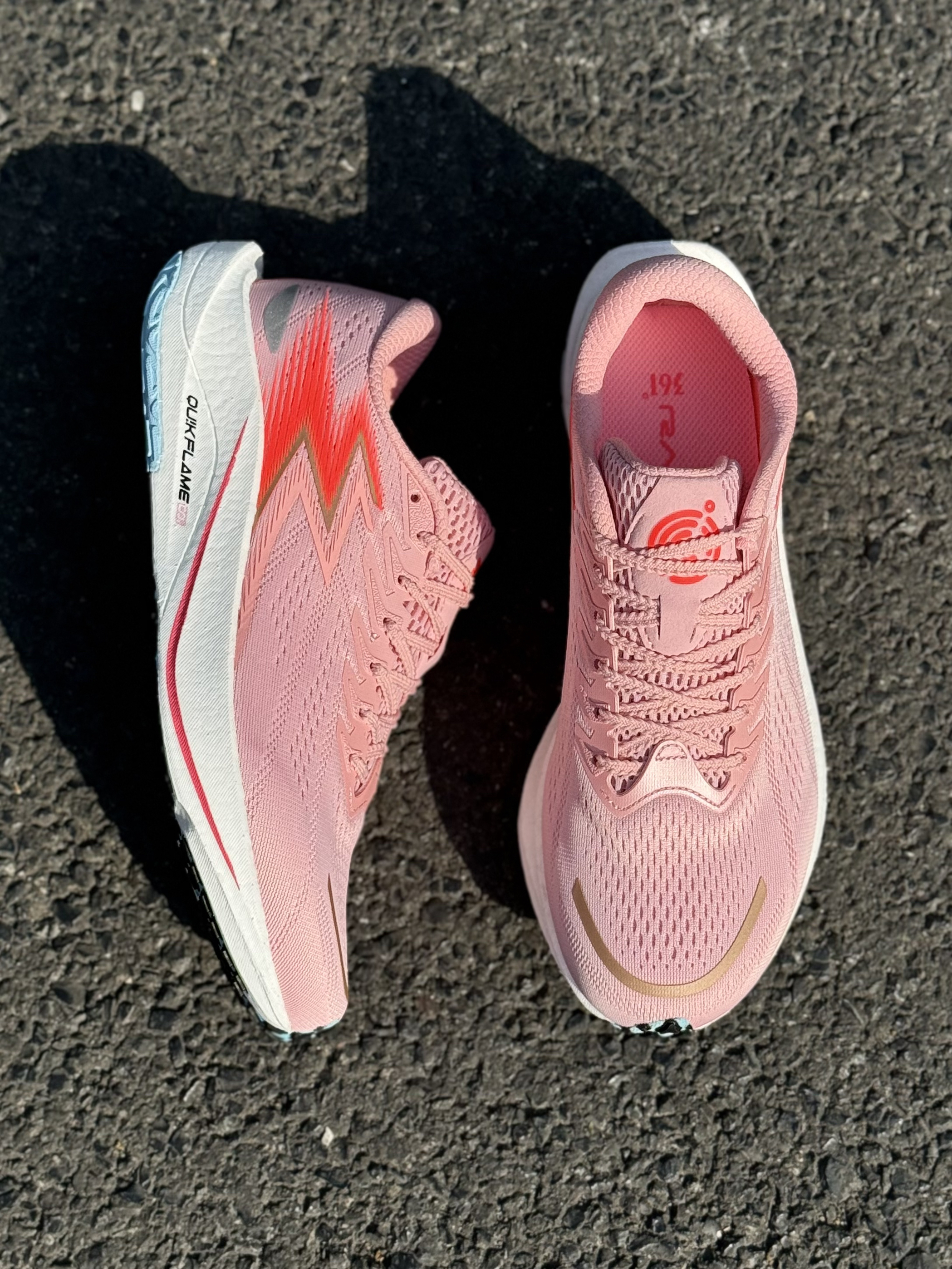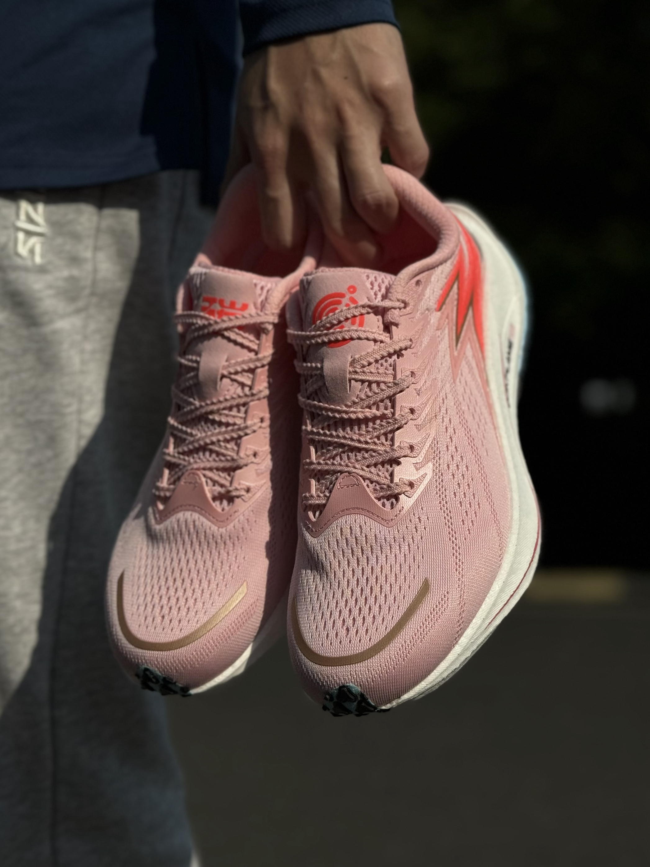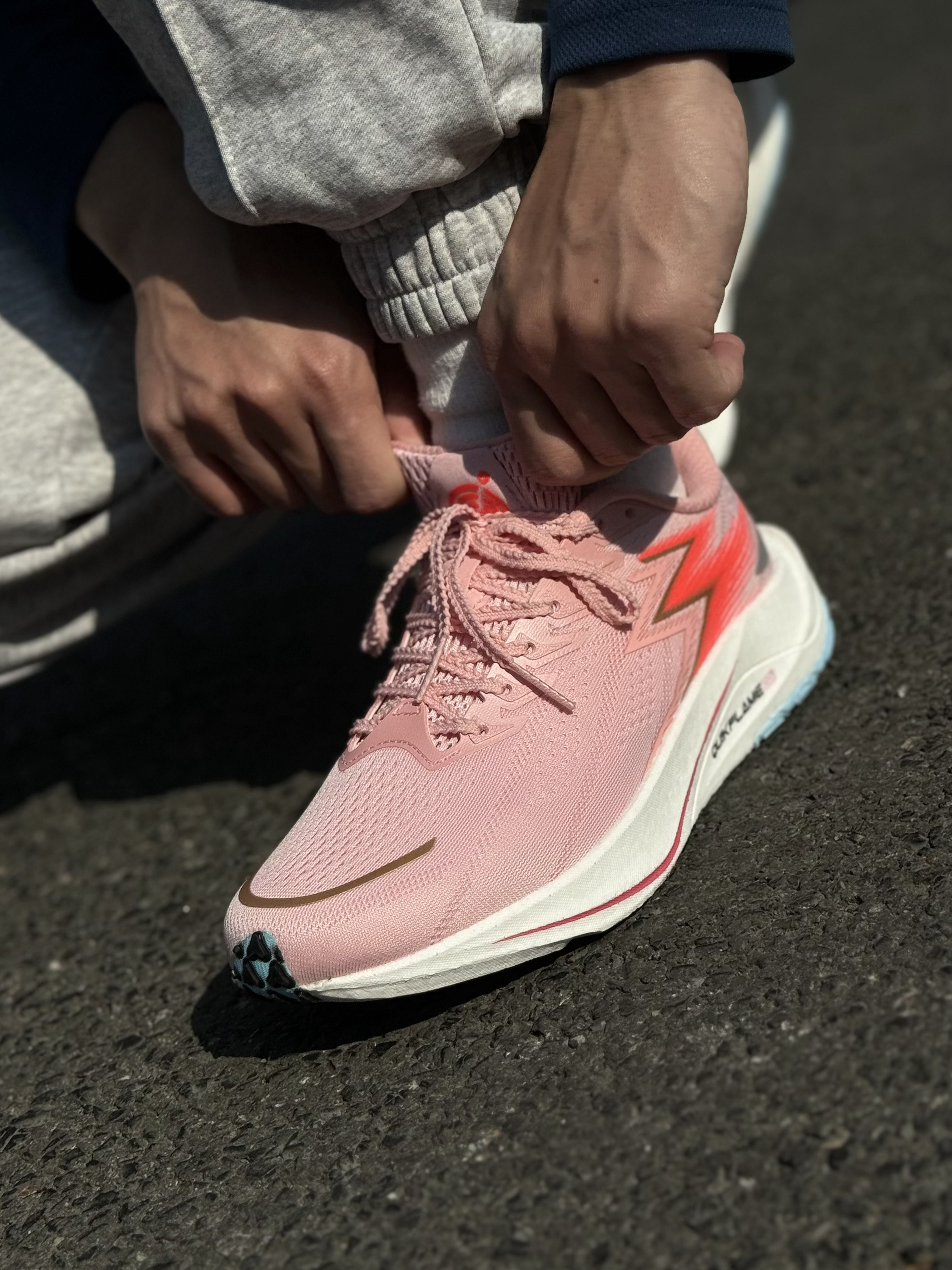 这双是361°专为场地竞速而出的跑鞋:飚速2.5Pro👟人民很行配色,粉粉嫩嫩,上脚非常骚气,我很喜欢哈哈~ 配置方面,全掌碳临界中底+勺形玻纤片+前掌RPU,不仅重心低、回弹好,而且重量也很轻,非常适合体考体测👍,比如800、1000米和立定跳远等项目! 而且驾驭门槛也不高,喜欢的学生党可以考虑下这双鞋~