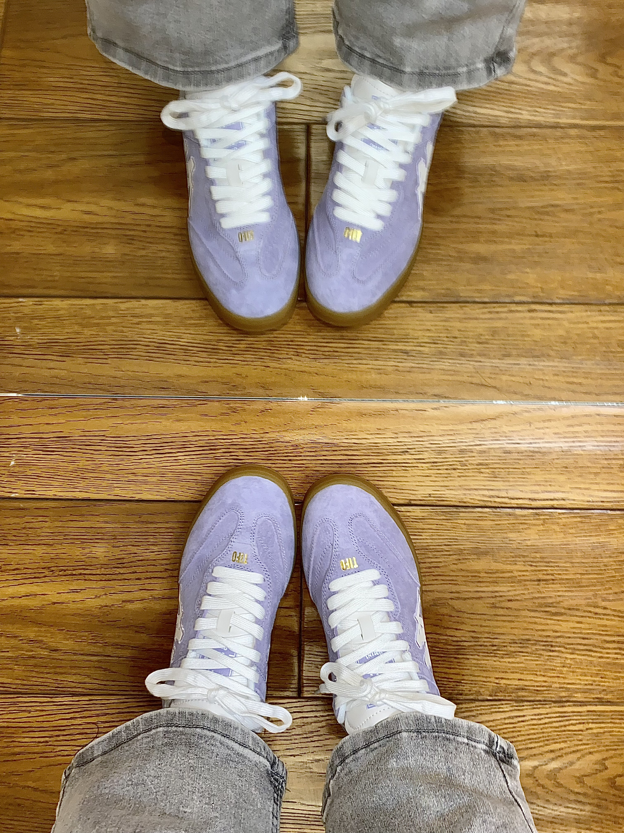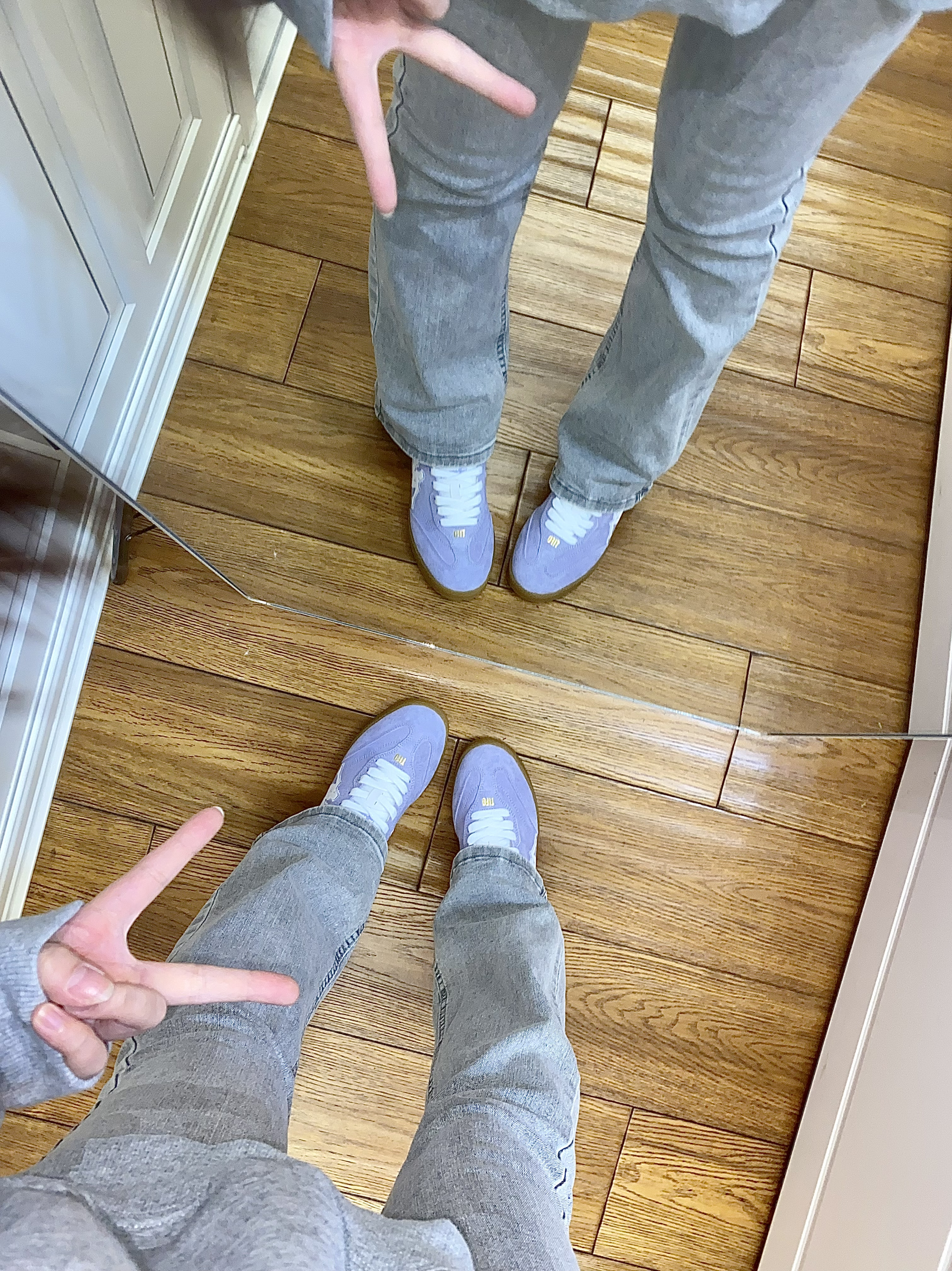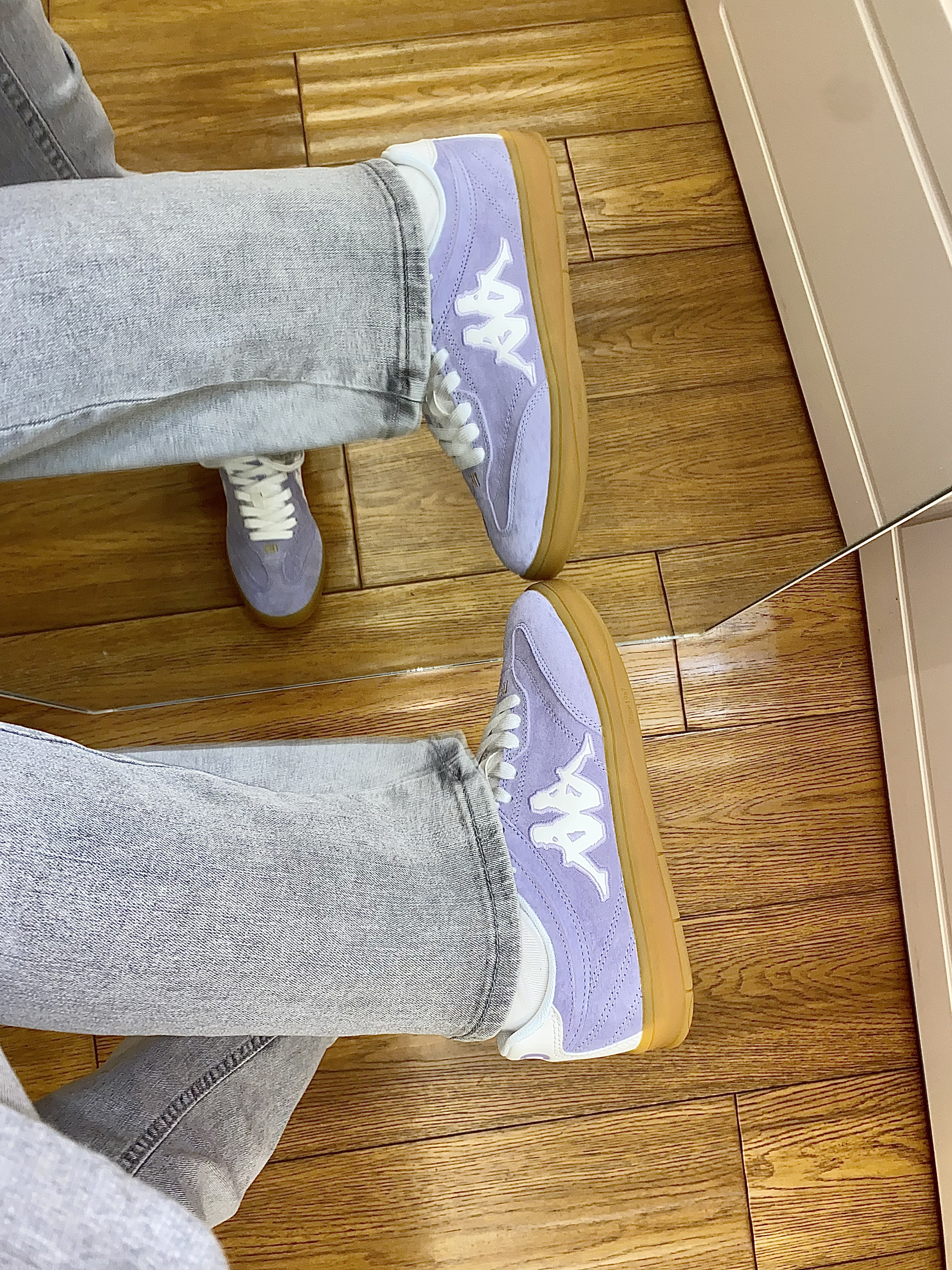 今日份穿搭分享来啦!! 今天整体穿搭色调都是灰色系 然后穿了一双紫色 Kappa 板鞋 就显得格外特别!! 这个紫色不是很鲜艳的那种 反而很时尚高级的感觉 脚感也很好!鞋底是软软的 也很适合送家人朋友 是我的秋冬穿搭必备啦~