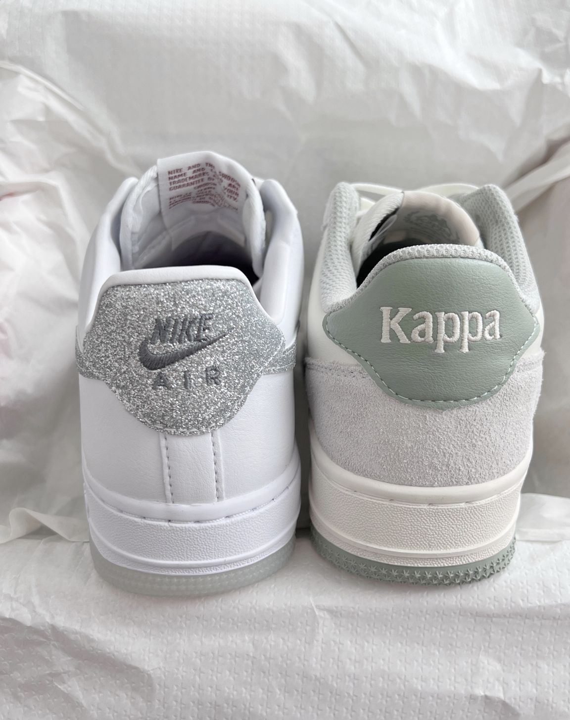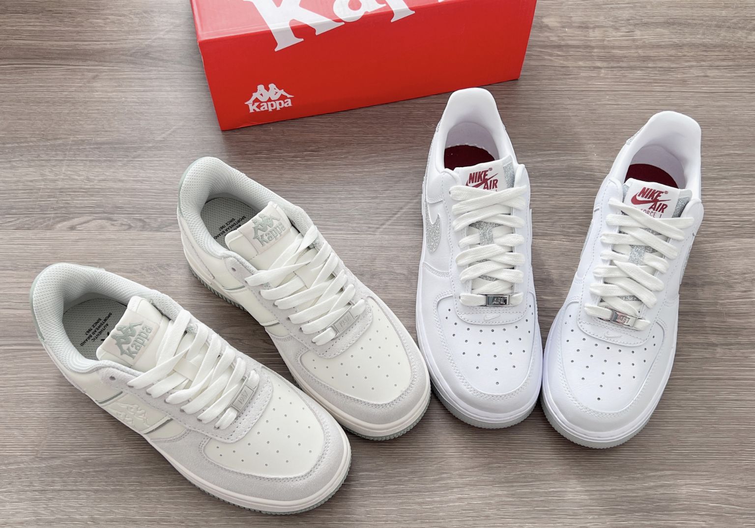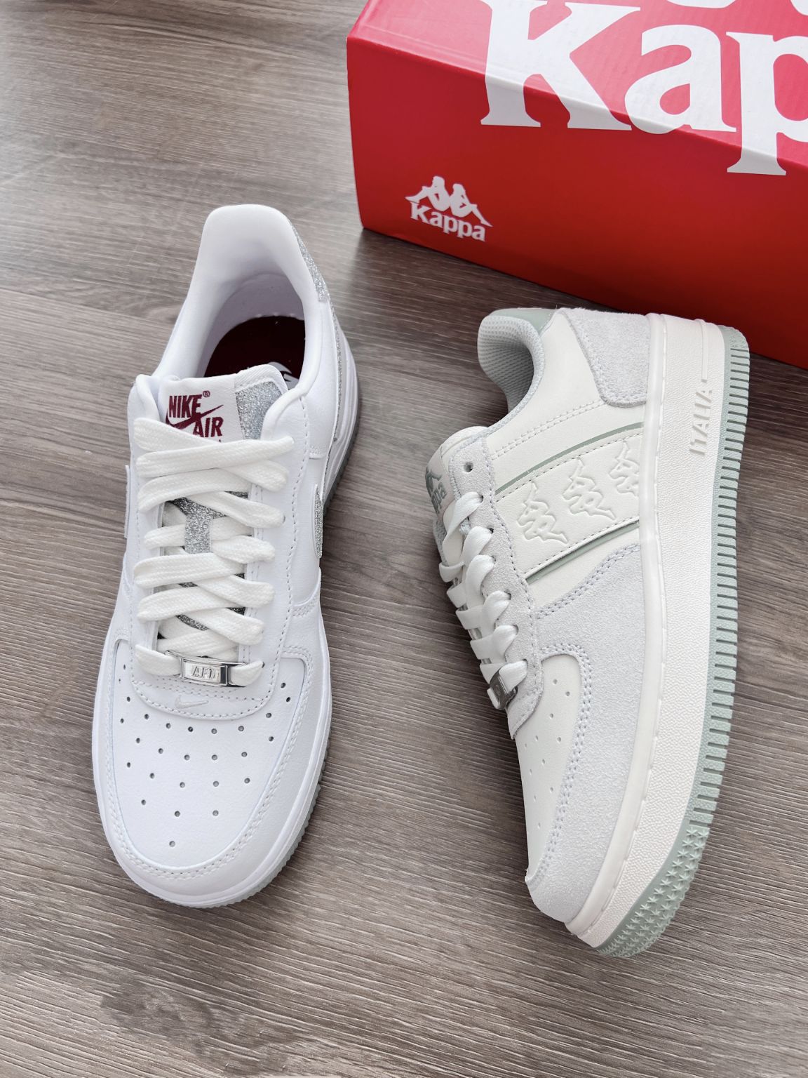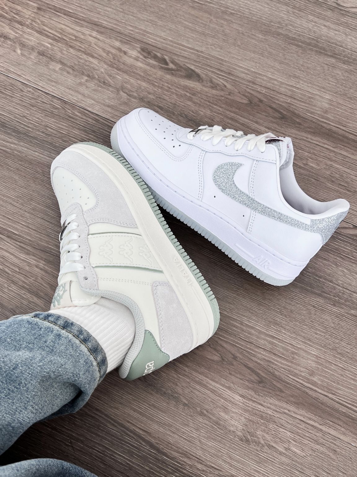 两双板鞋都很喜欢怎么办 Kappa灰绿很显嫩呐 Nike白灰也很有少年感 两个都好喜欢啊 大家帮我选一选过年穿哪个啊