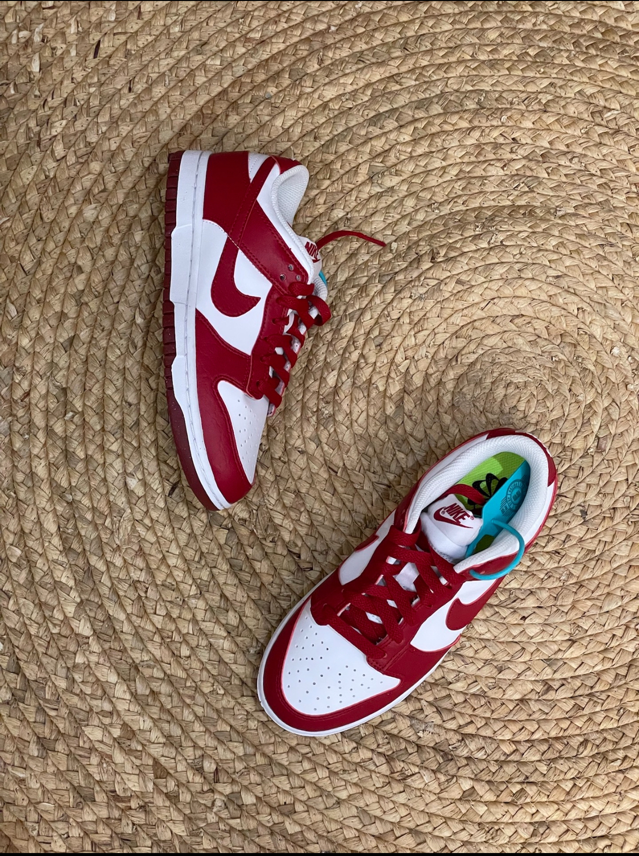 这双AJ1白红青少年版就很适合女生! 它是比 AJ经典红还要淡一点的红色。 整体都是光滑皮质材料。 百搭又时尚。