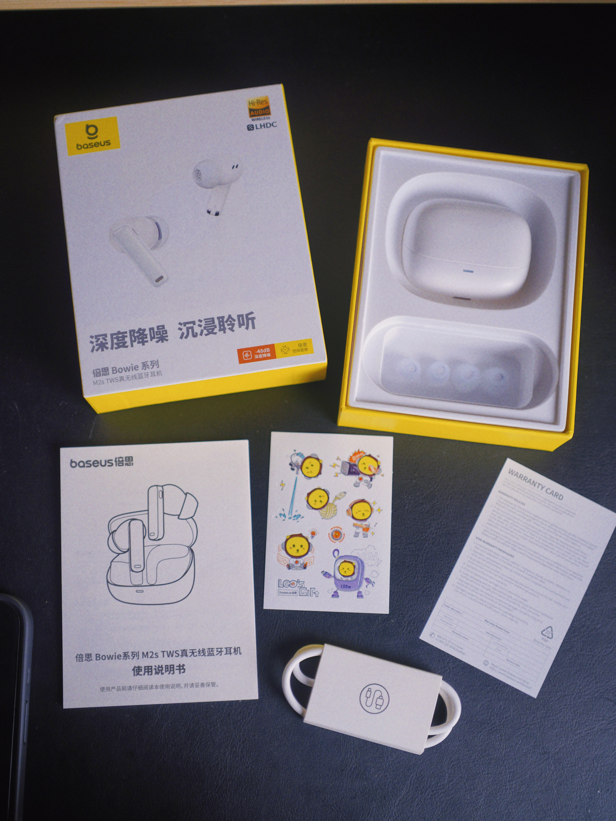 本篇笔记关联了Baseus/倍思 M2S 入耳式 蓝牙 耳机 真无线 深度降噪 超长续航 主动降噪 高音质 低延迟 ANC 抗风噪 空间音效 皓月白等商品,为用户提供真实的使用体验和购买参考。