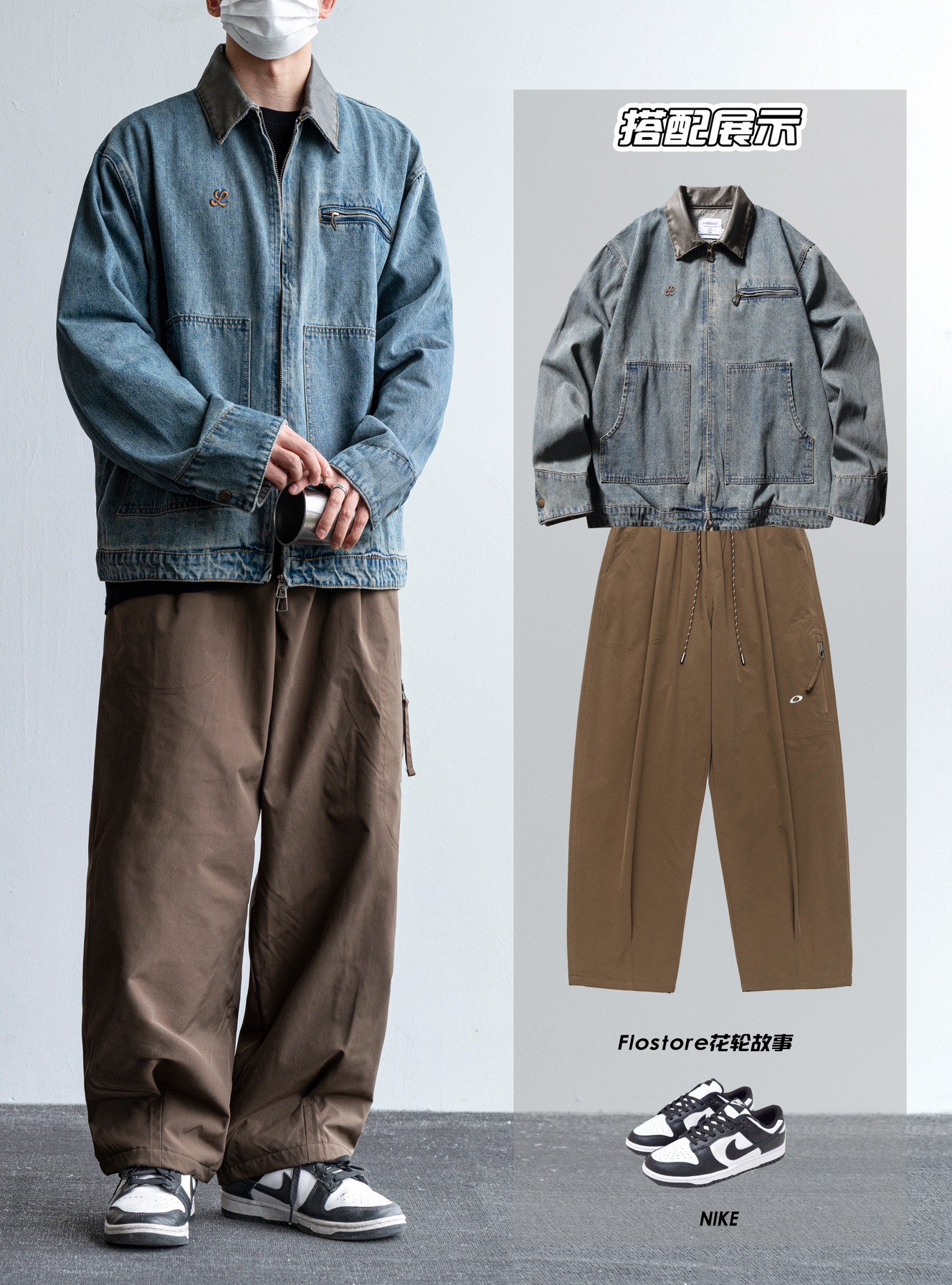 牛仔外套能出不一样的效果 里面夹克的面料手感要轻柔很多 微宽松的牛仔夹克上身不会淹没身材而看起来臃肿❕ 实穿的场合也很多,上学通勤都🉑 ▪下身宽松休闲裤的搭配,很好的将舒服发挥到极致 无论是做工还是版型都NICE〰 设计点也是我的爱✨ - 模特:身高172CM | 体重62.5KG | 穿L码(参考)