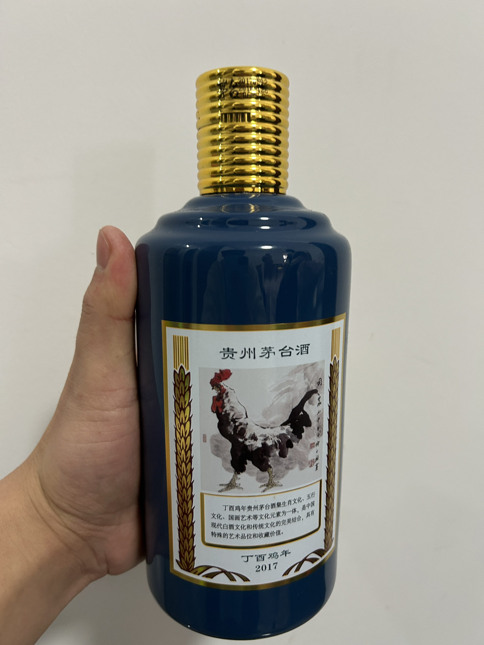 鸡年茅台,尊美孔雀蓝陶瓷瓶身,雅致非凡。金色纹路瓶盖,篆体“鸡”字熠熠生辉,尽显尊贵。国画大师陈永锵绘《司晨》图,寓意鸿运当头,青云直上。酒体微黄透明,酱香浓郁,口感细腻幽雅,绵柔而不辛辣,空杯留香持久。品牌故事源远流长,2017年贵州茅台酒股份有限公司匠心打造,限量发行,承载着对家庭、事业的美好祝愿。每一滴都是匠心独运,每一口都是文化传承。鸡年茅台,不仅仅是一款酒,更是一段值得品味的历史与文化。