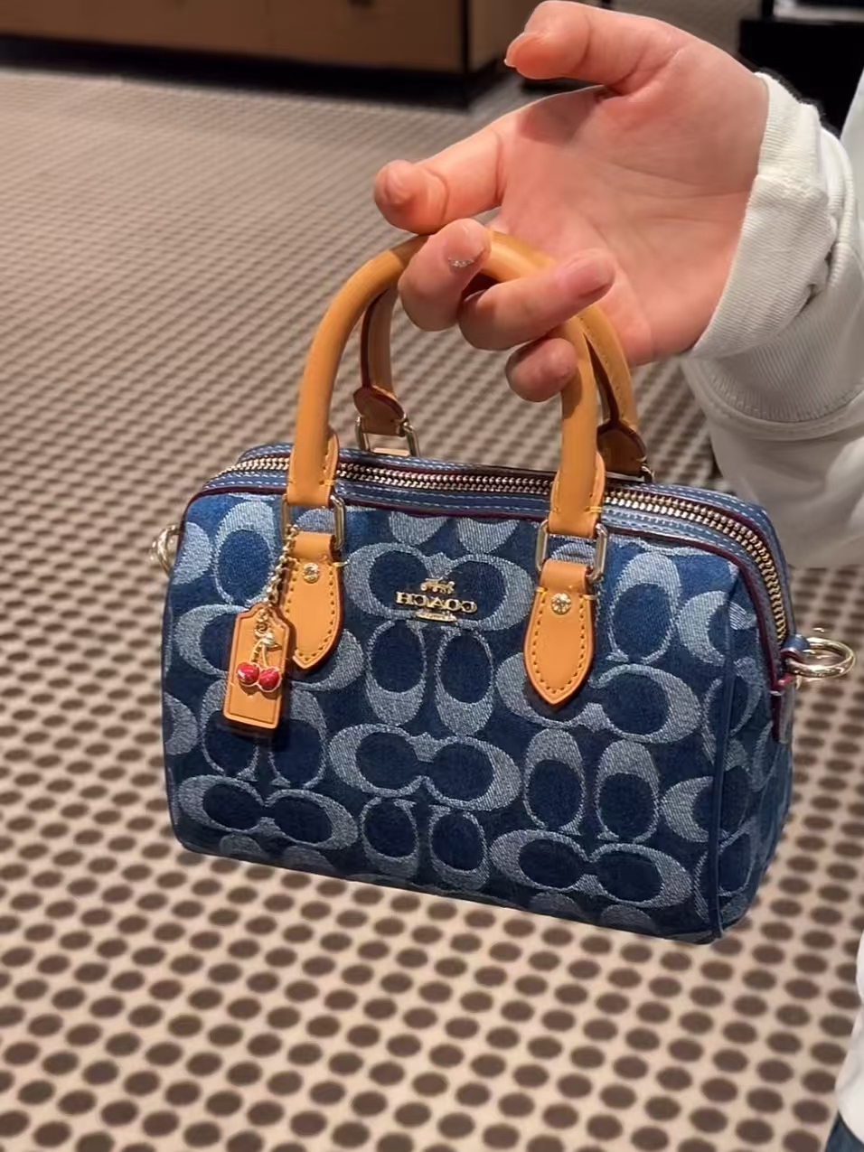 本篇笔记关联了Coach ROWAN 新品奥莱老花丹宁布牛仔波士顿斜挎包手提包 丹宁蓝色/天然色等商品,为用户提供真实的使用体验和购买参考。