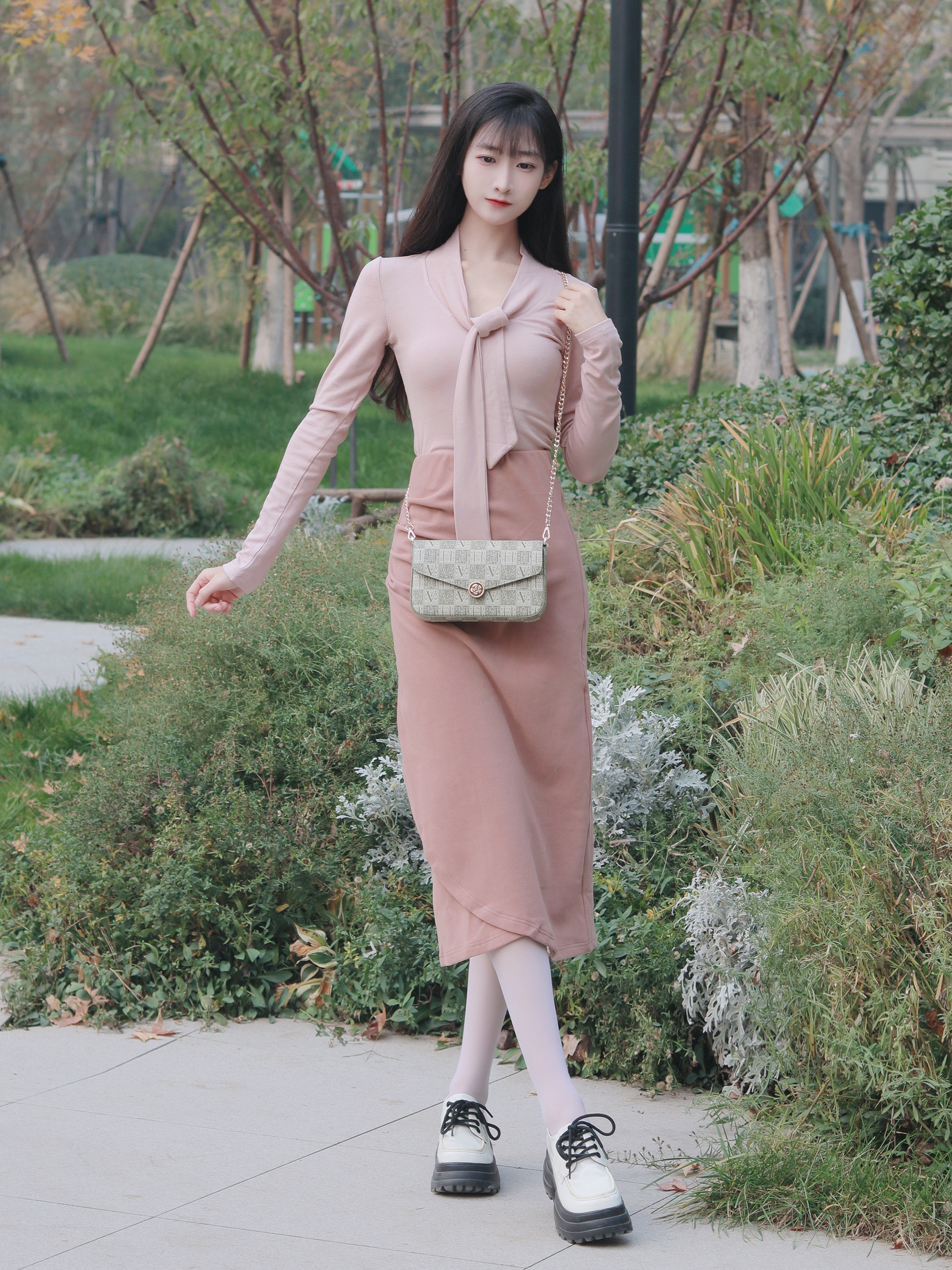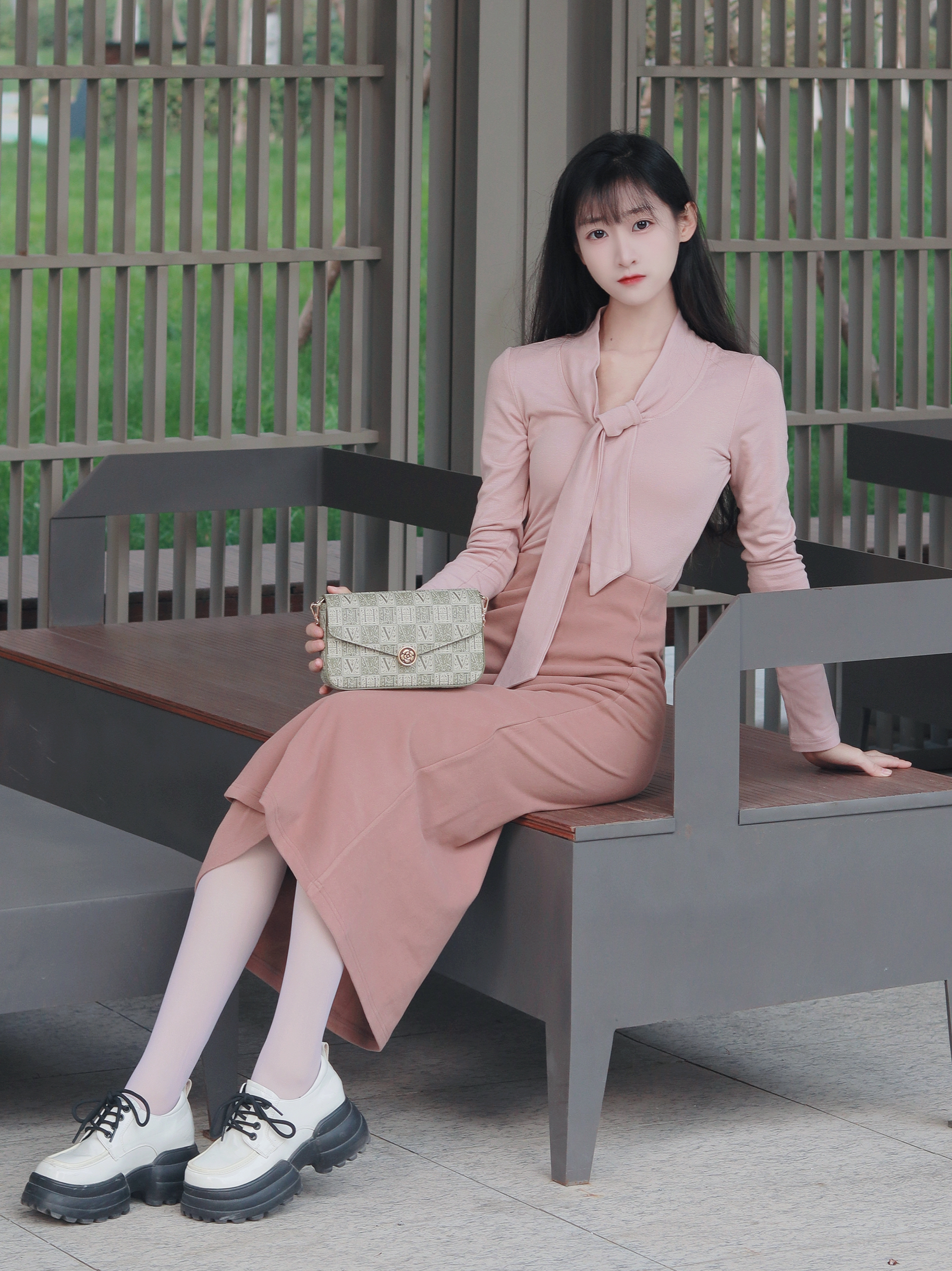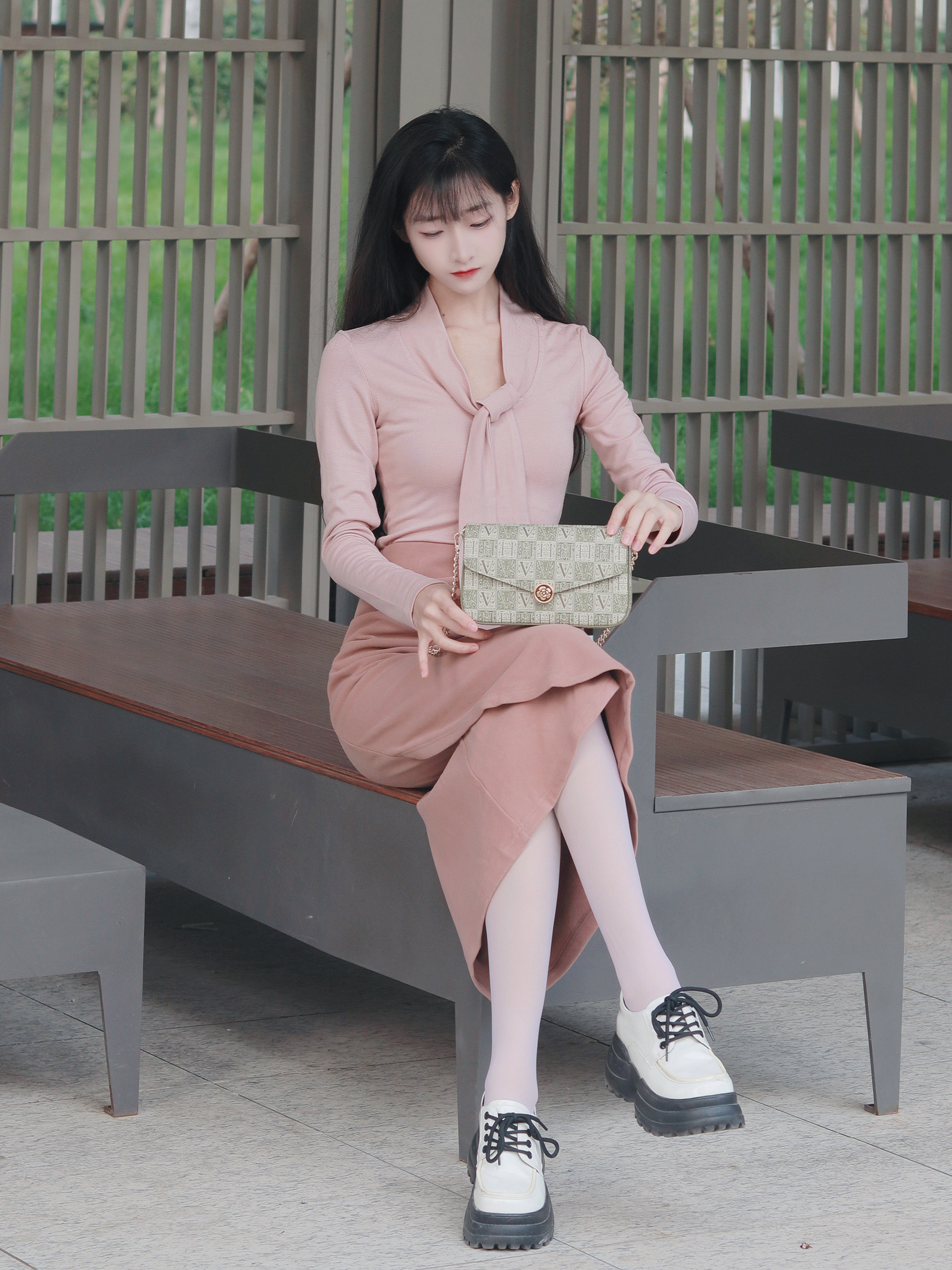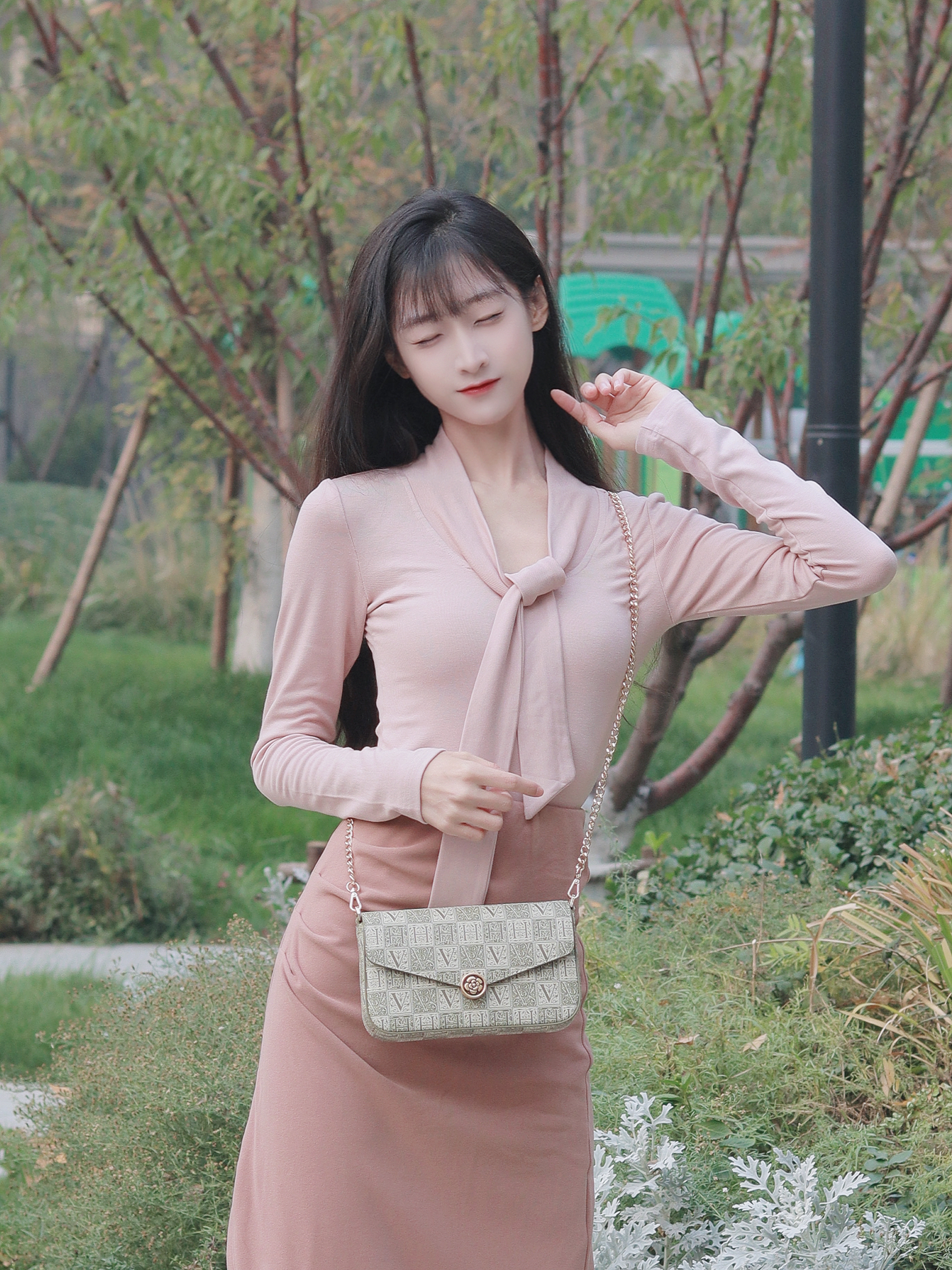 粉色套装👗简约大方 搭配的包包👜设计感十足 轻松拿捏优雅感~