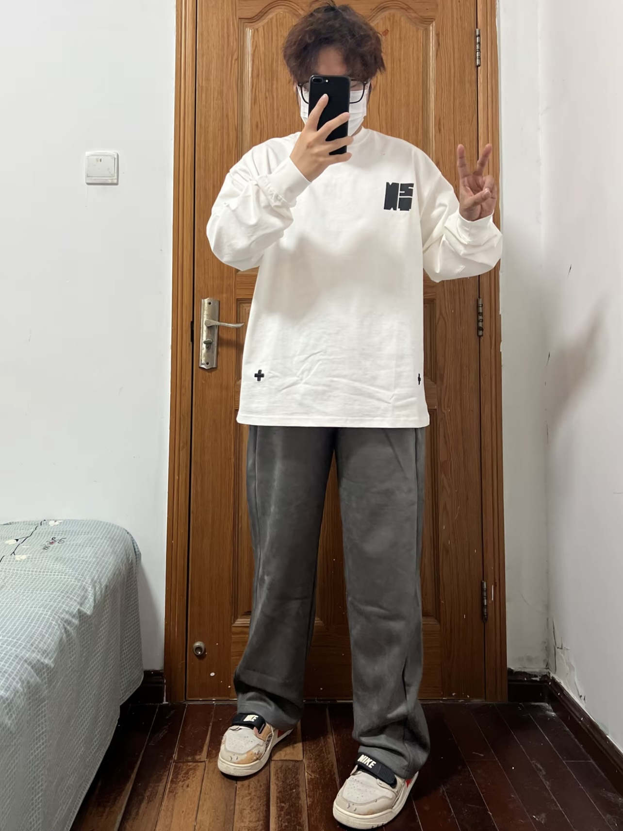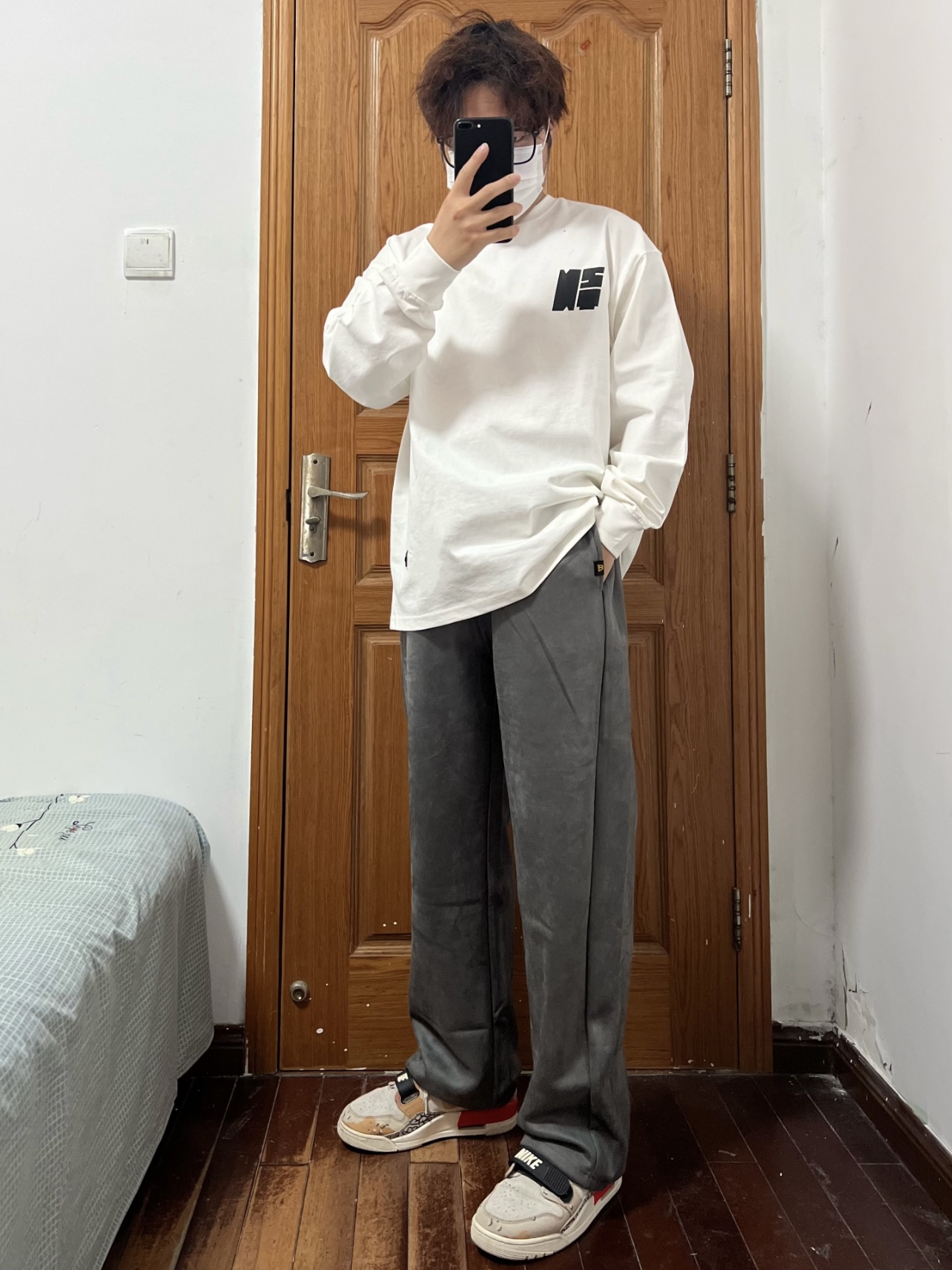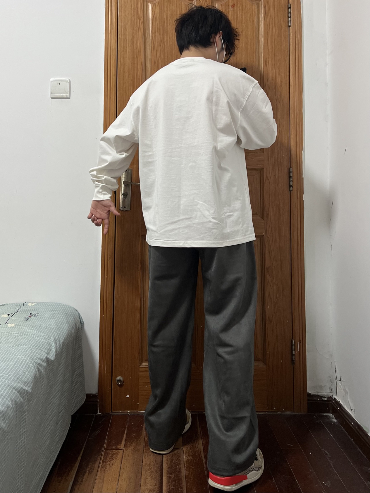 穿过太多的牛仔和工装直筒裤换一种风格 雪花绒面料摸起来就很舒服🉑️ 直筒垂感也不错修饰腿型藏肉显瘦 深灰色对我来说就选浅色衣服搭配就好 内搭白色长袖T外穿黑色羽绒服也OK 穿搭起来真的没有烦恼哦👌